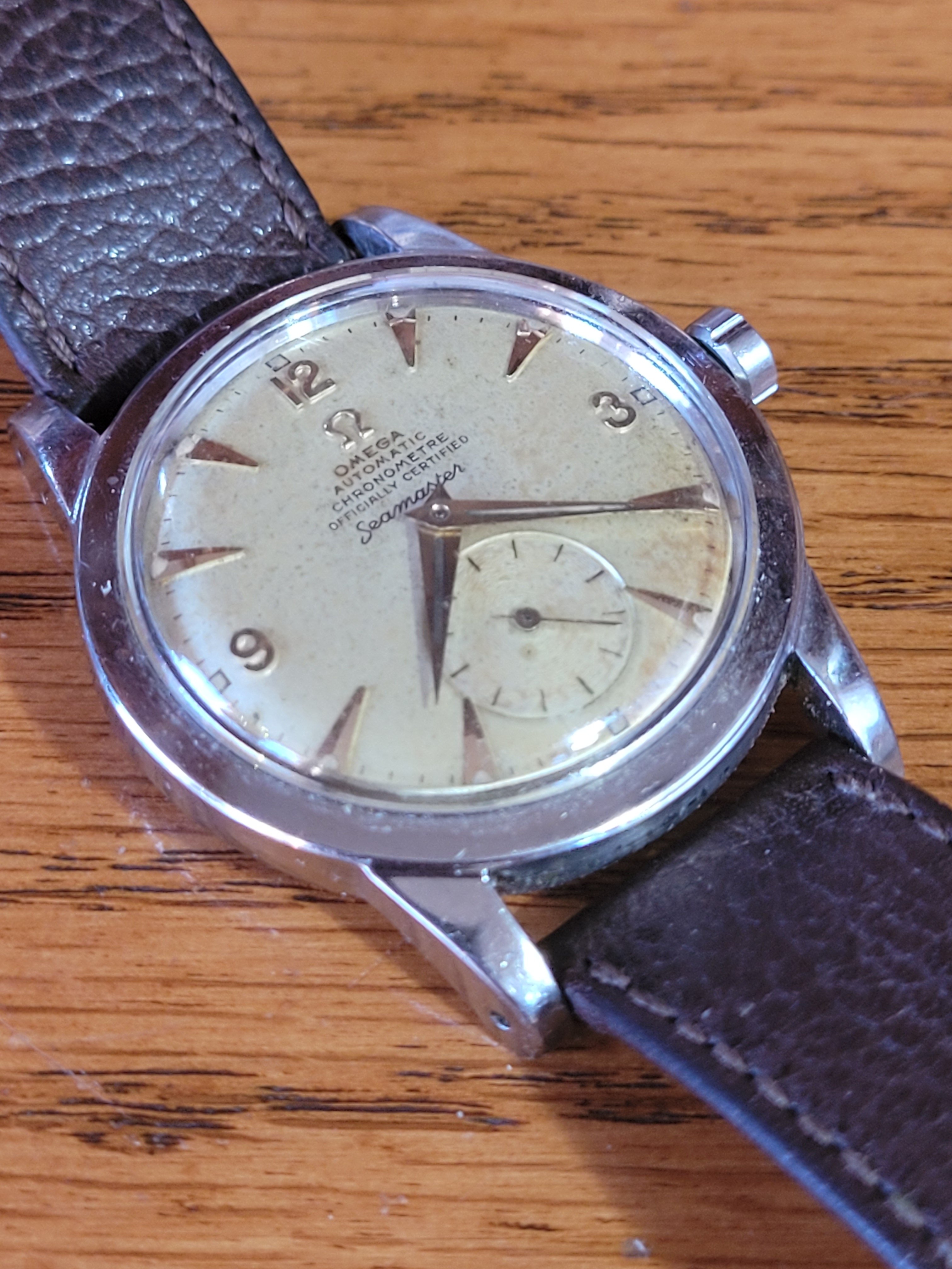 First comment, it’s not what is normally known as a pre-Seamaster. That model and its 2577 brother were introduced in 1948 as the original Seamaster, the waterproof models that came immediately before in the mid '40s are therefore known as the pre-SM. The 2576/7 didn't have SM text on the dial until about a year after launch so late 1949. A few years after they got text on the rear too but these were plain. Your watch serial dates it at maybe late '48 early '49 by the way so it is early but not one of the very first which I think had serials around 11.3m or so AFAIK. The hour/min hands have deffo been replaced and likely have superluminova, otherwise it is a little tired but seemingly straight, the patina is quite noticeable but also quite pleasant. The small second looks OK to me. The movement looks very clean which is a good sign. I'd personally be happy to own that, but at the right money. What is the asking price?