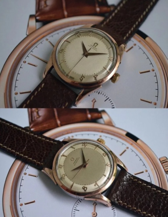 I have to say I have never found this particular kind of dial in any vintage Omega, where only the 12, 3, 6, and 9 are not showing. At first I was very skeptical but the more I look it, the more original it seems to me. I have also never seen rose gold capped vintage Omegas before.