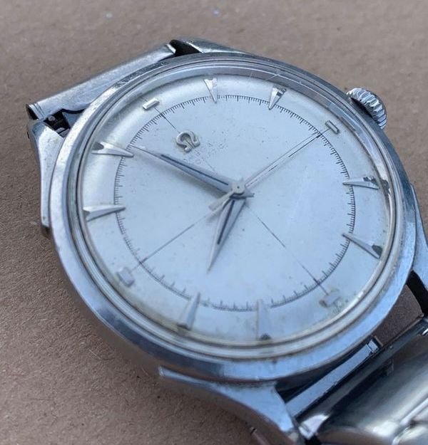 To give a bit of context, I'd like to try my hands at giving a second beauty to vintage watches as a hobby and would love to start with an Omega. My beginner researches lead me to think this is from the 50s-60s, my clues being the absence of logo at the back as well as collection name, and (more importantly?) the crosshair dial, but of course there are strong chances I am completely wrong. I did not manage to find any other model with the same hour markers though.