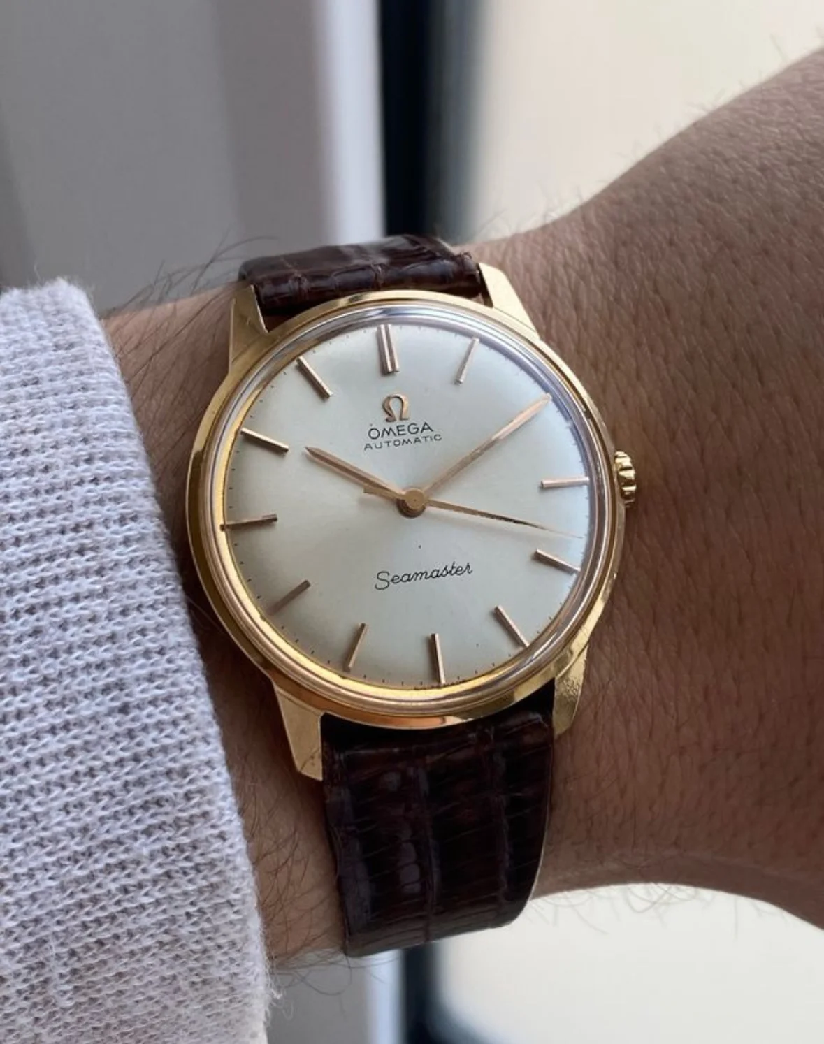 Looks like nice original 18K Seamaster- case looks reasonable for 18K, this ref has no bezel if you look at side views, movement looks clean with proper movement- if you like the reference looks like clean original example to me- and 1500 not unreasonable given gold value. If they can provide proof of service and some kind of warranty even better, fair to ask if it is being sold as recently serviced.