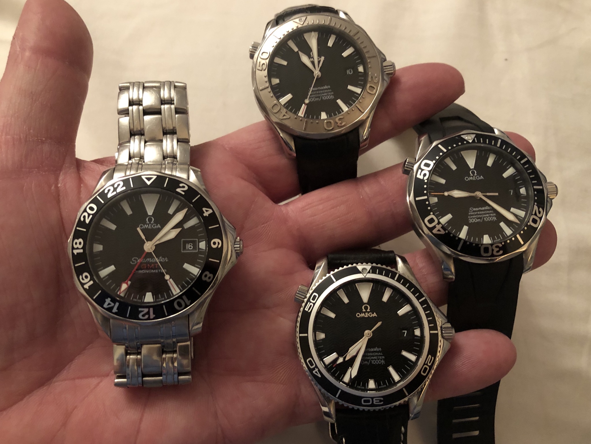 The Seamaster 50th anniversary looks great with the all-black 24 hour bezel insert. I've been thinking about doing that mod as I've never liked the OEM black/steel contrasting bezel insert. This photo more than confirms my thinking. I presume the all-black bezel is aftermarket as I don't think Omega ever made an all-black bezel insert for that watch. If I may ask, where did you pick it up? Thanks in advance.