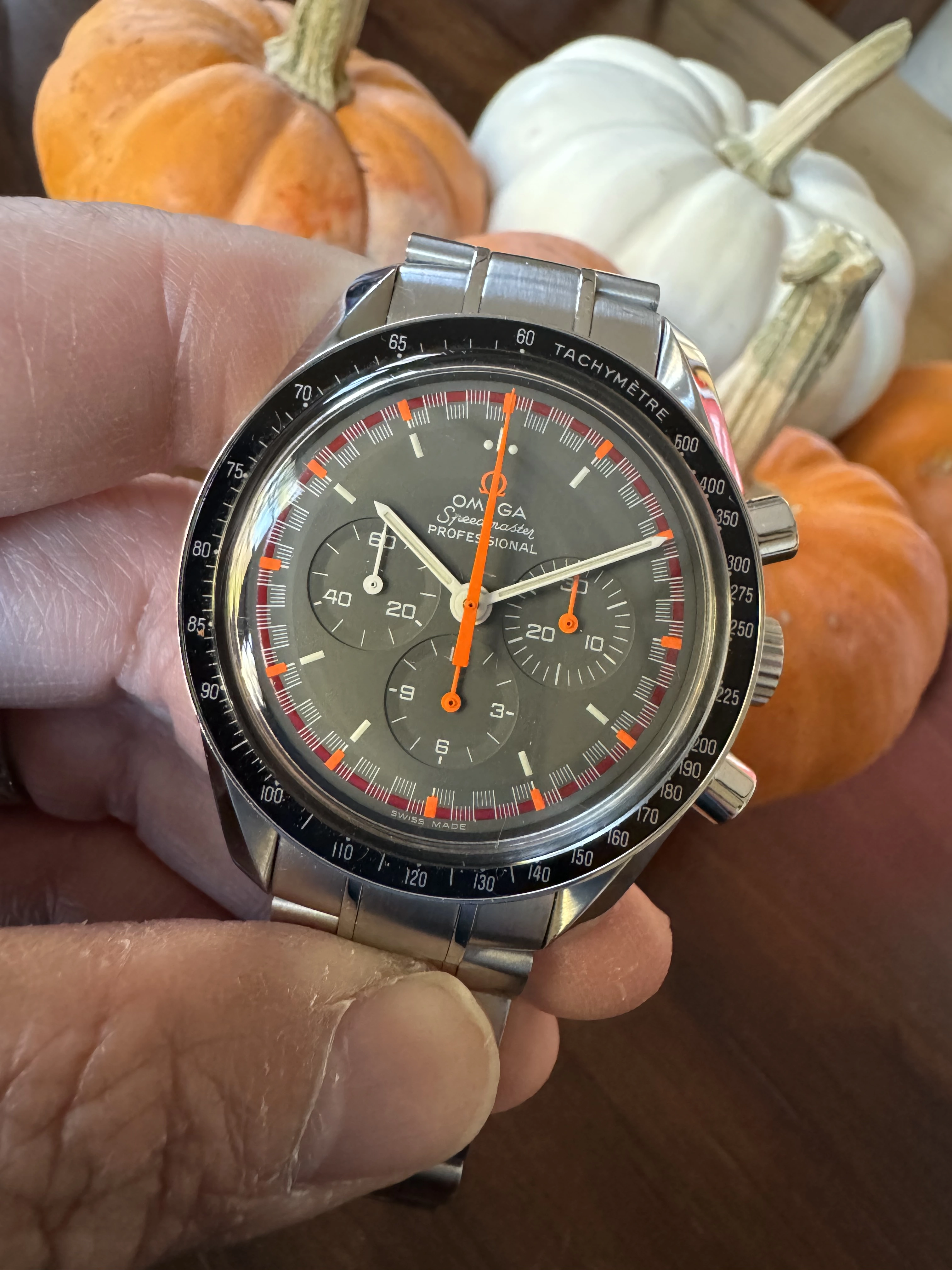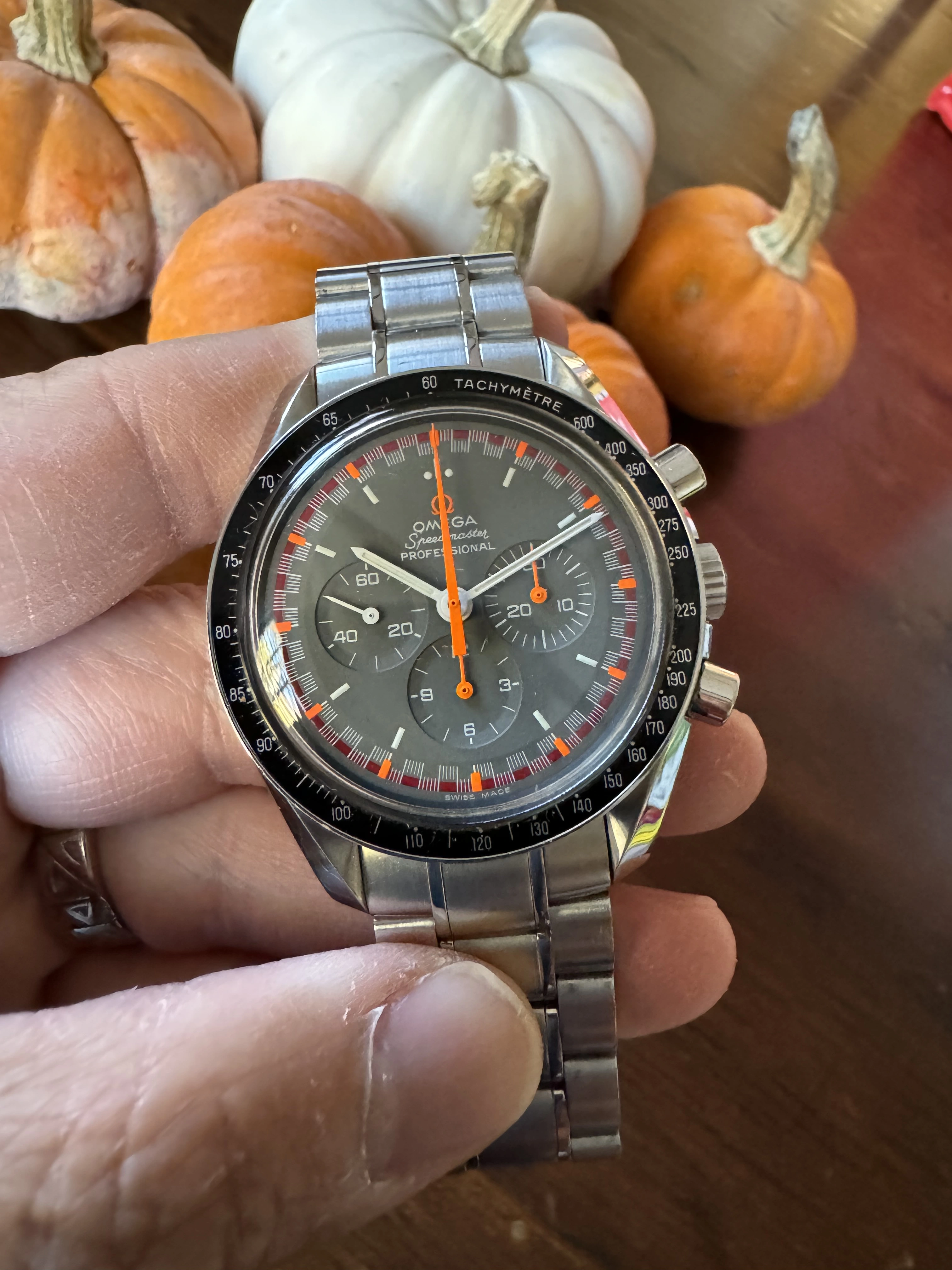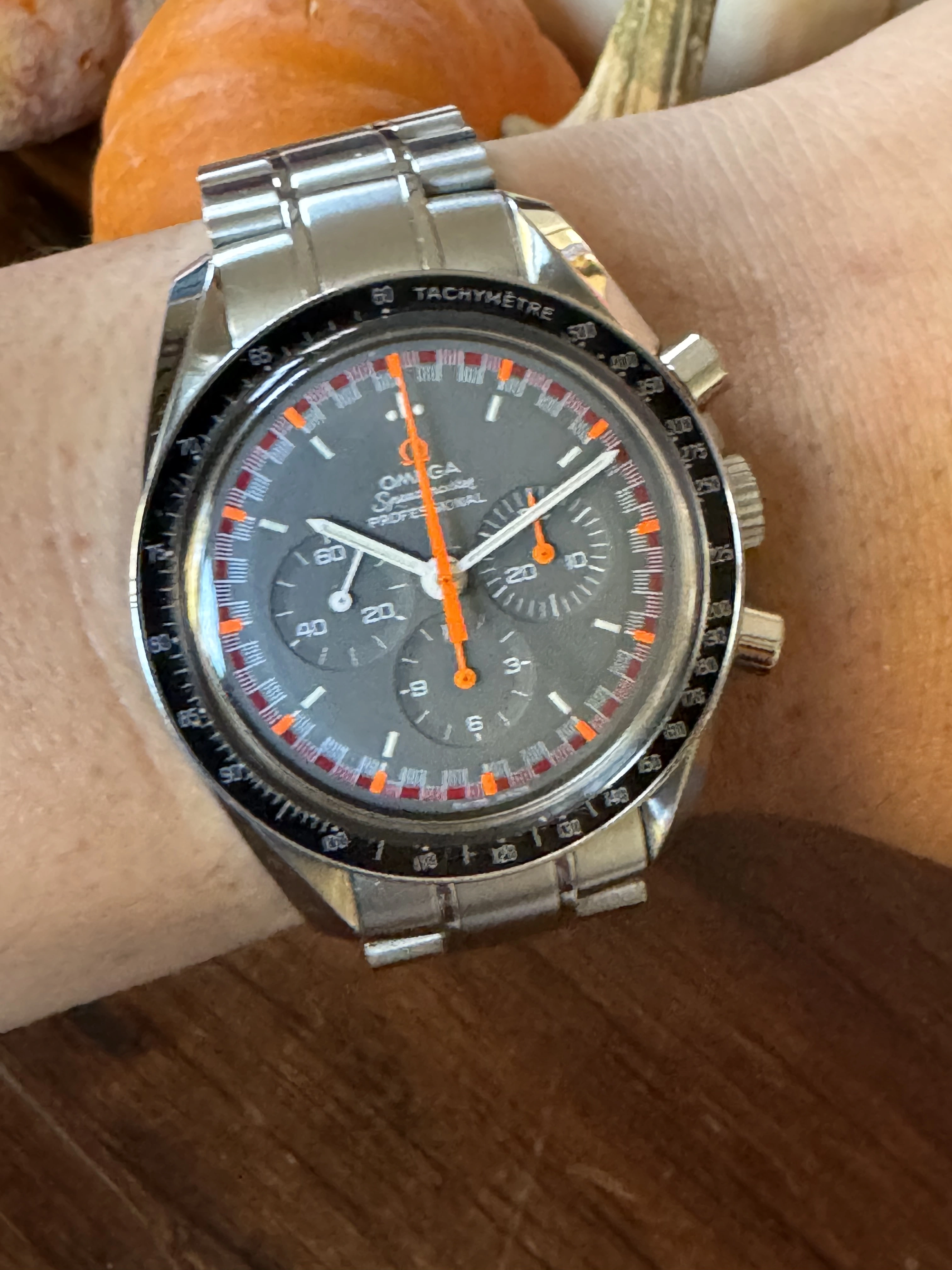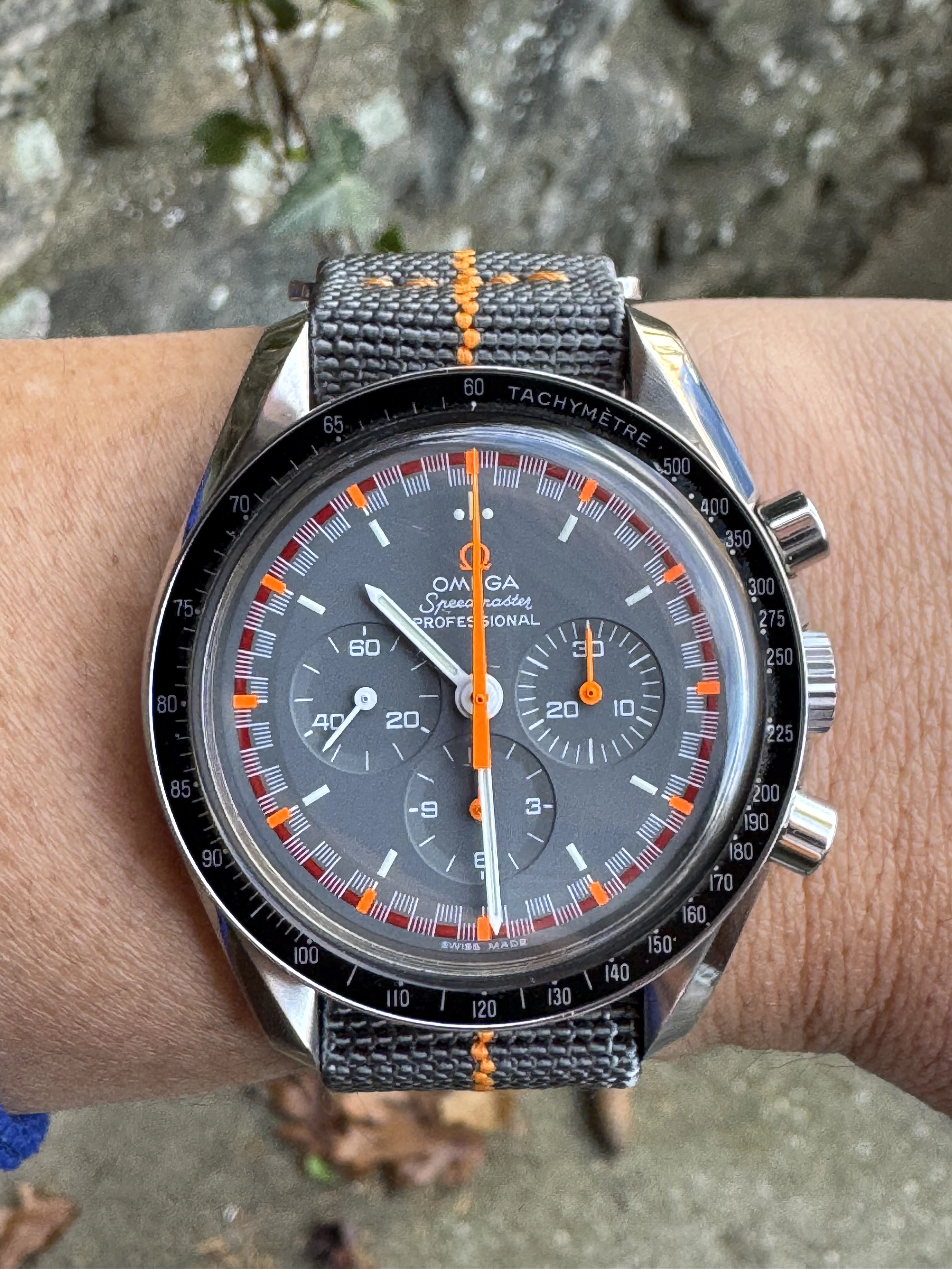 It is a reissue of the absurdly rare orange and gray racing dial from the early 1970’s. According to Moonwatch Only, 15 examples of the originals have been observed. Eric Wind has one of these currently listed on his site at the heady price of $79,500!