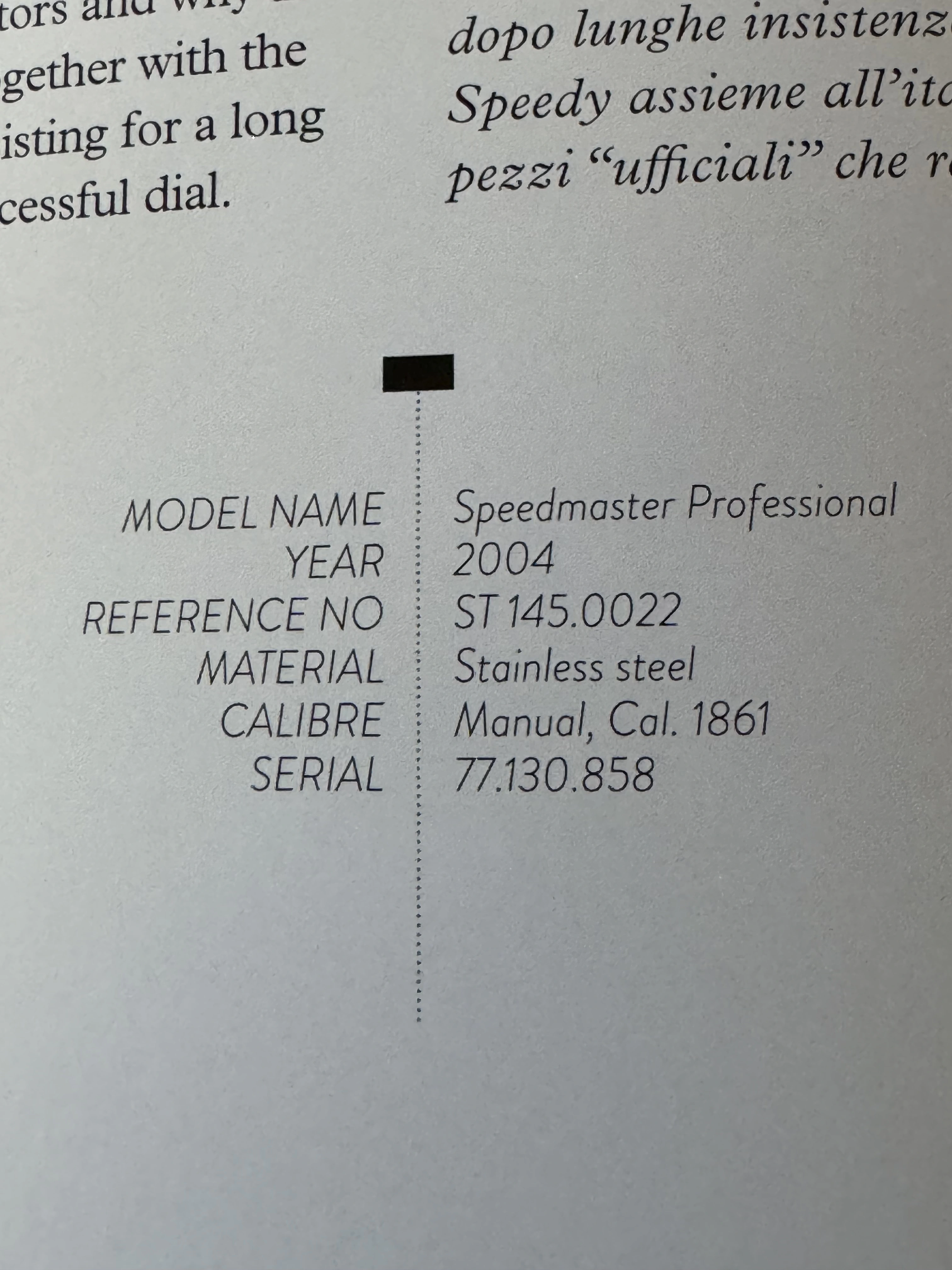 The problem with these Japan Racing Speedys is that the dials were formerly available as an OEM aftermarket part so it’s hard to verify whether it is original or a mod, especially with the archives closed at the current time. I am providing a print out from the Omega database with the matching serial number on the back of the lugs. I had opened the caseback with my watchmaker at that time and verified the serial number on the caliber but I don’t have a picture of it (it’s hard to get that photo anyway).