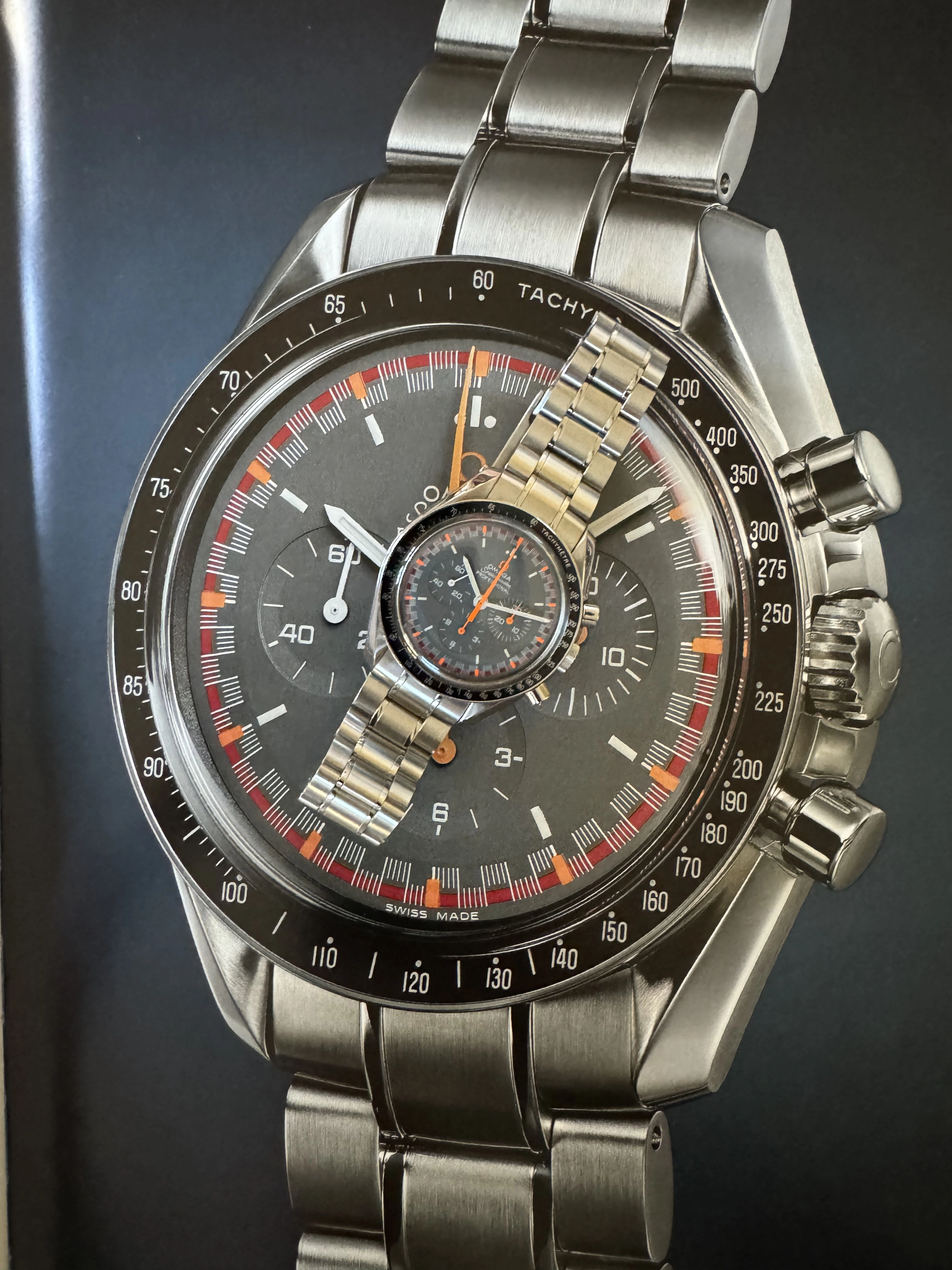 I have a very special piece here. It is an original Omega Speedmaster “Japan Racing” limited edition from 2004. 2004 is also the number of pieces made.