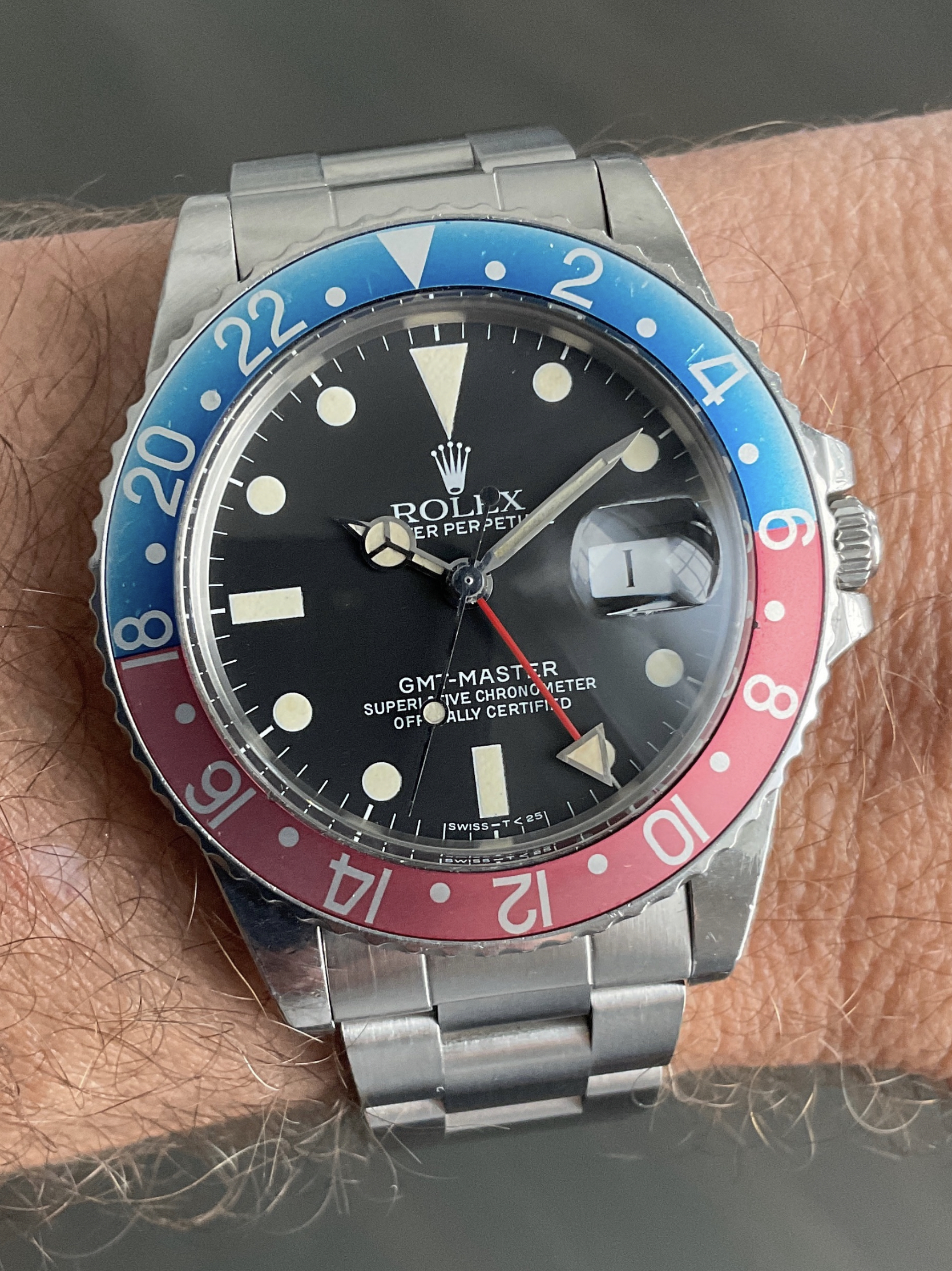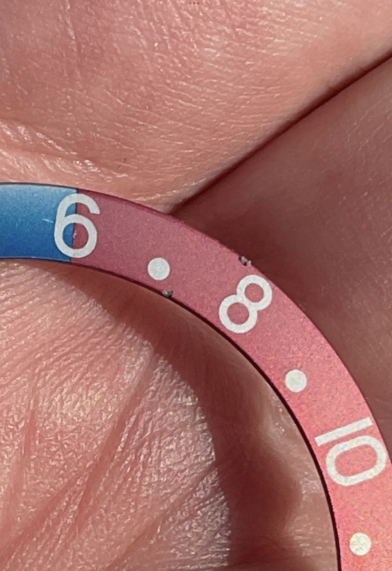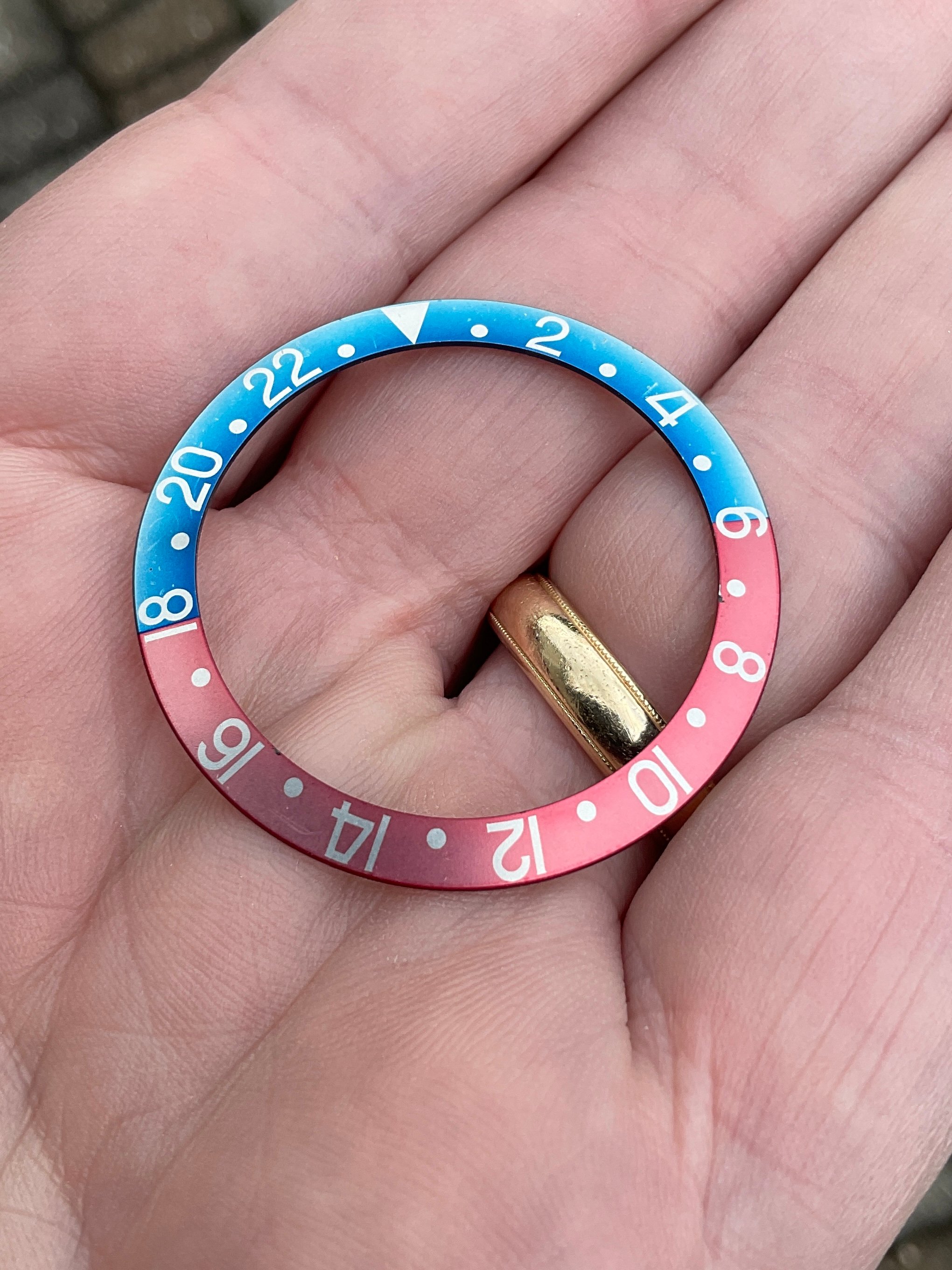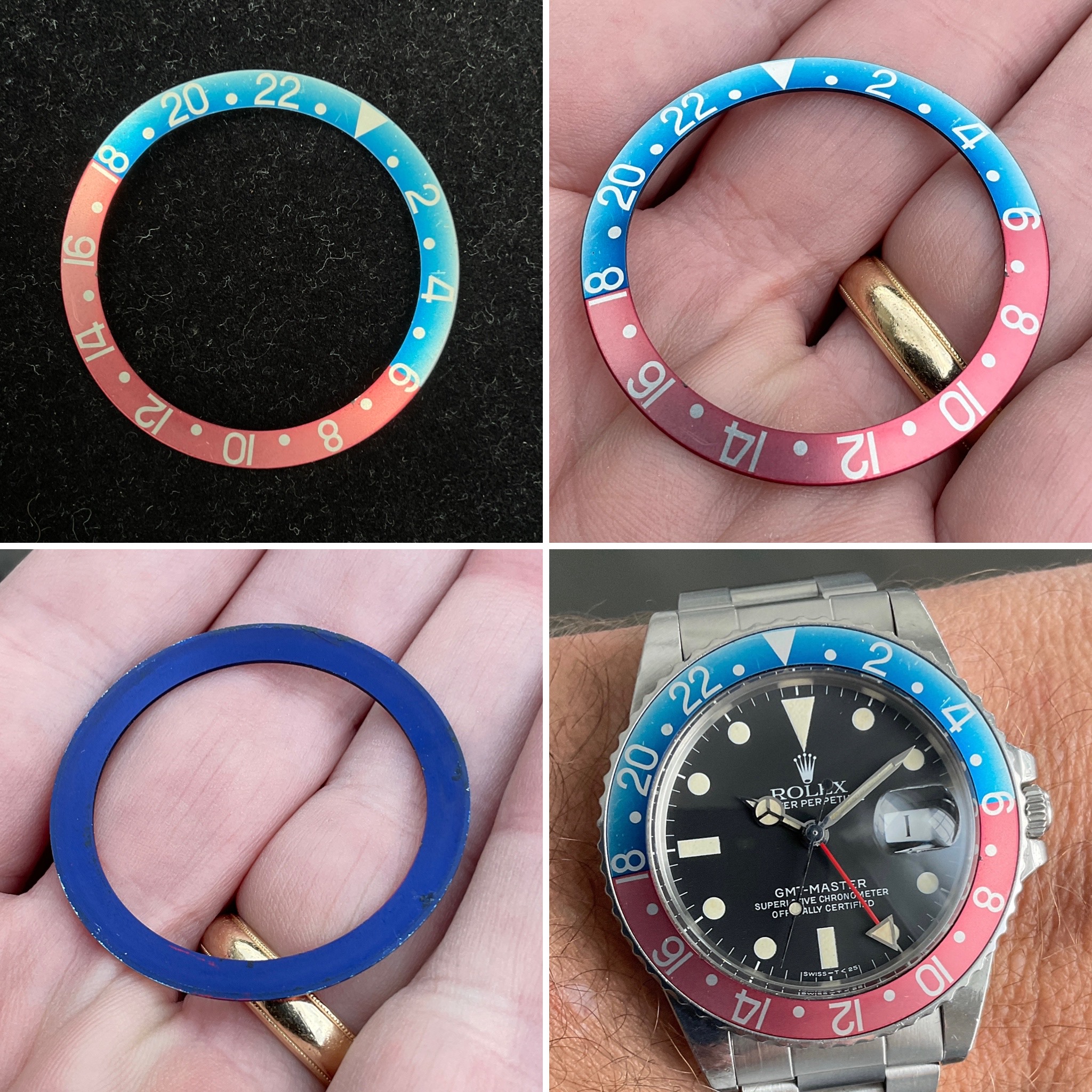 ·Beautiful and original blue back Rolex insert for GMT Master 1675 and 16750. Photos have not been adjusted/filtered at all. Insert is in great condition with only a couple of very small scratches and nicks as shown, including the macro shot near the edges around “8” - hardly noticeable when on the wrist. Watch shown in last photo shows how great it looks in real life (and watch itself obviously is not included).