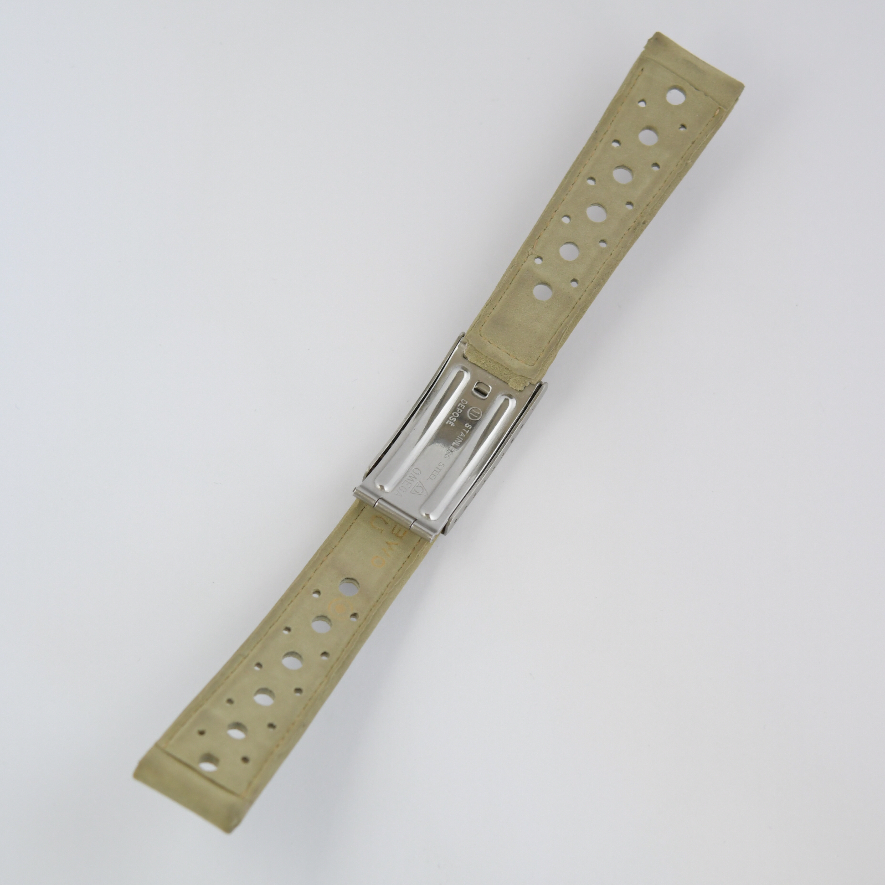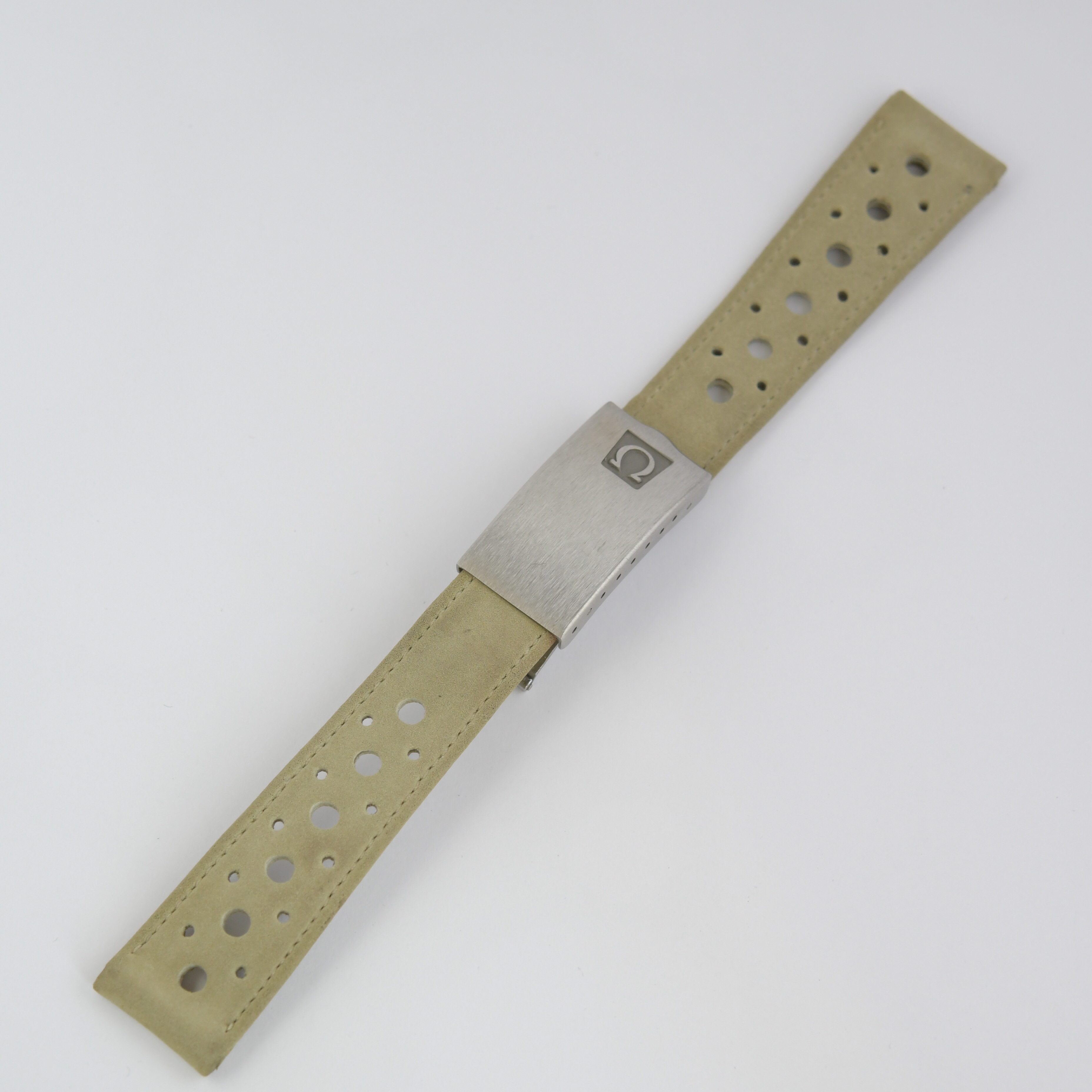 here for sale an original Omega racing strap. The color of the strap is light sand. It is 18mm wide and can fit wrists up to 17 cm. The strap is unused and come from a NOS Omega Genève. I am more a bracelet guy so that is why I sell.