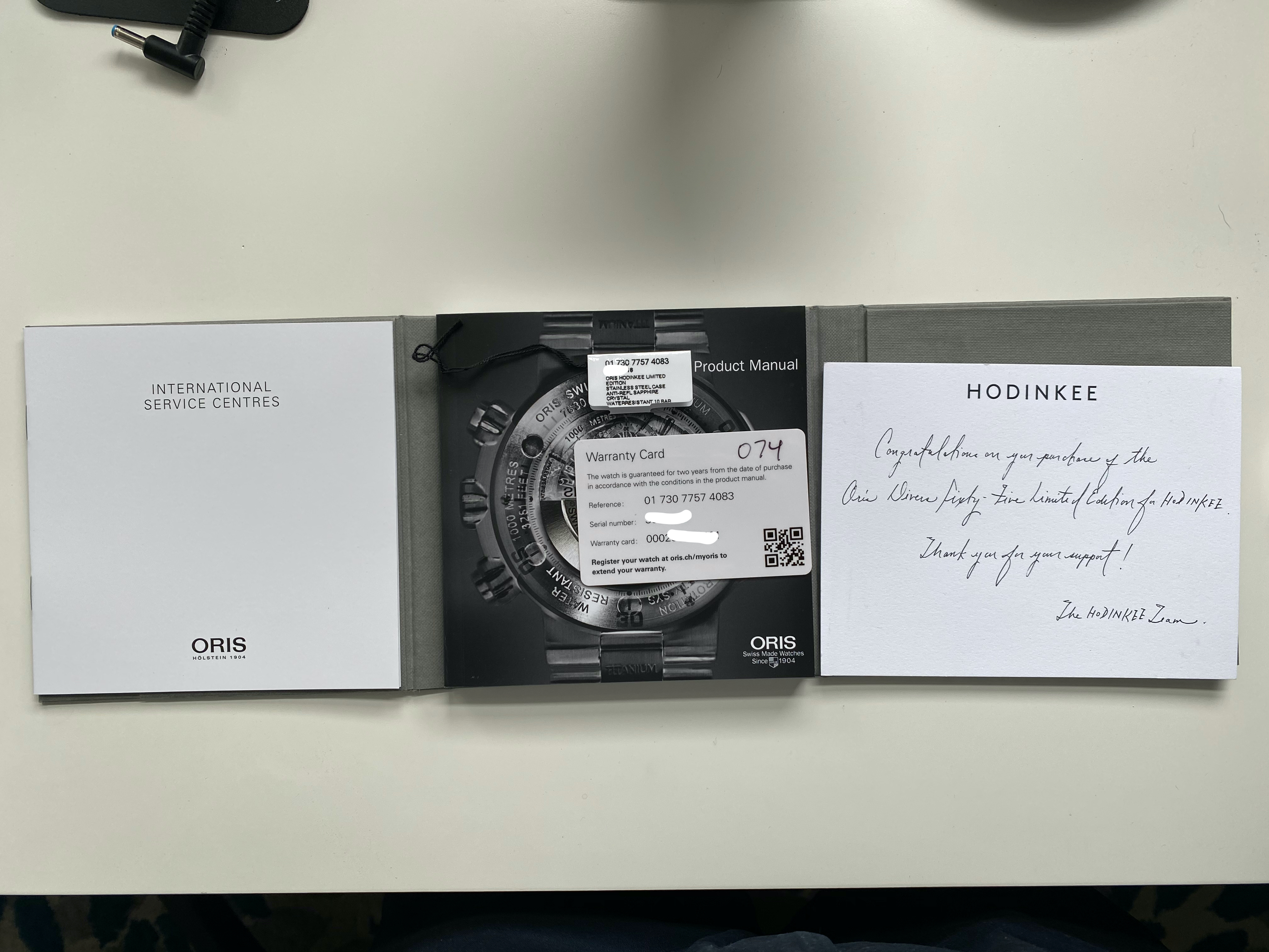 - thank you letter from Hodinkee (