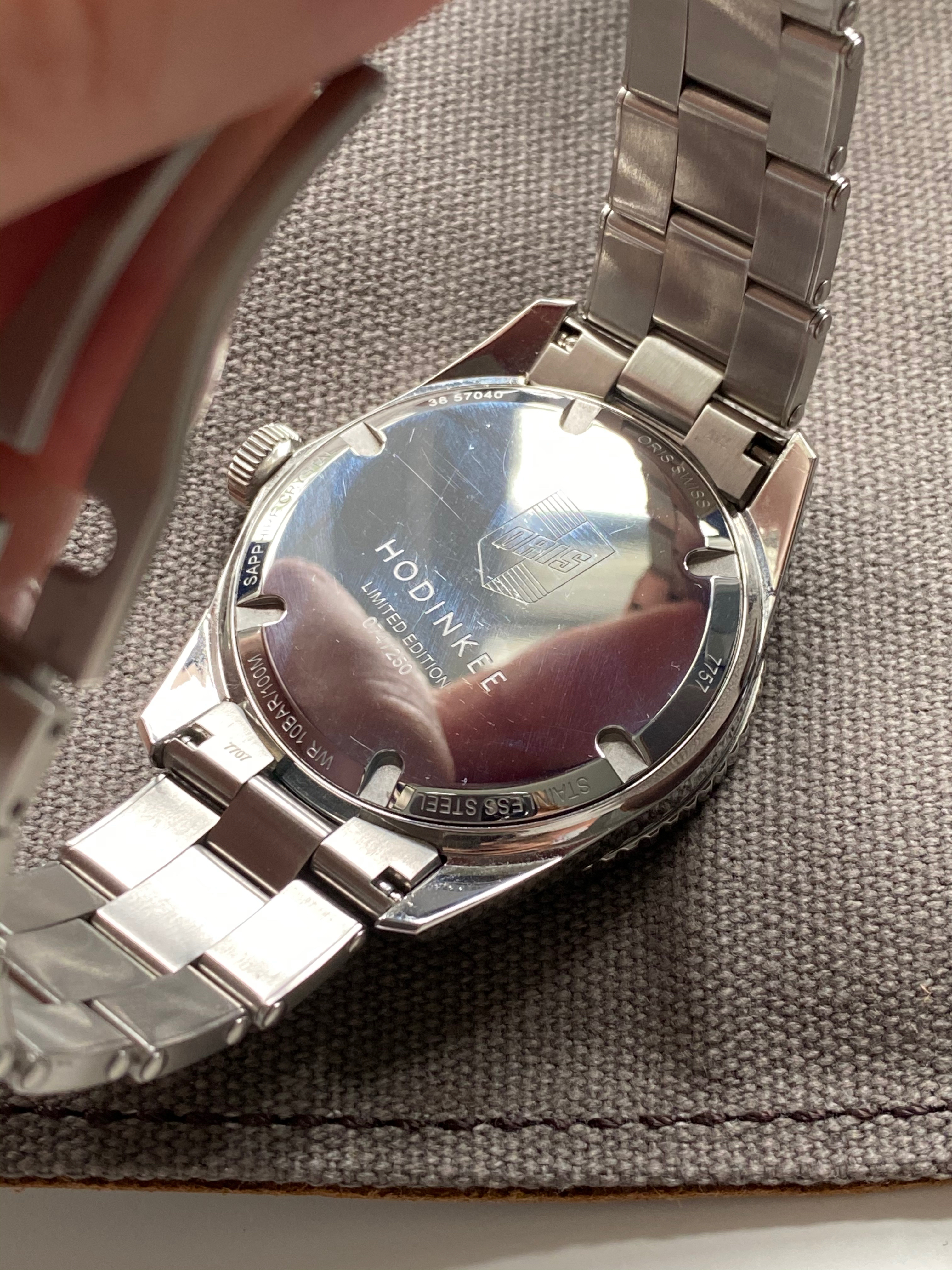 - Caseback: Closed steel back with special “HODINKEE” and “XXX/250” engravings