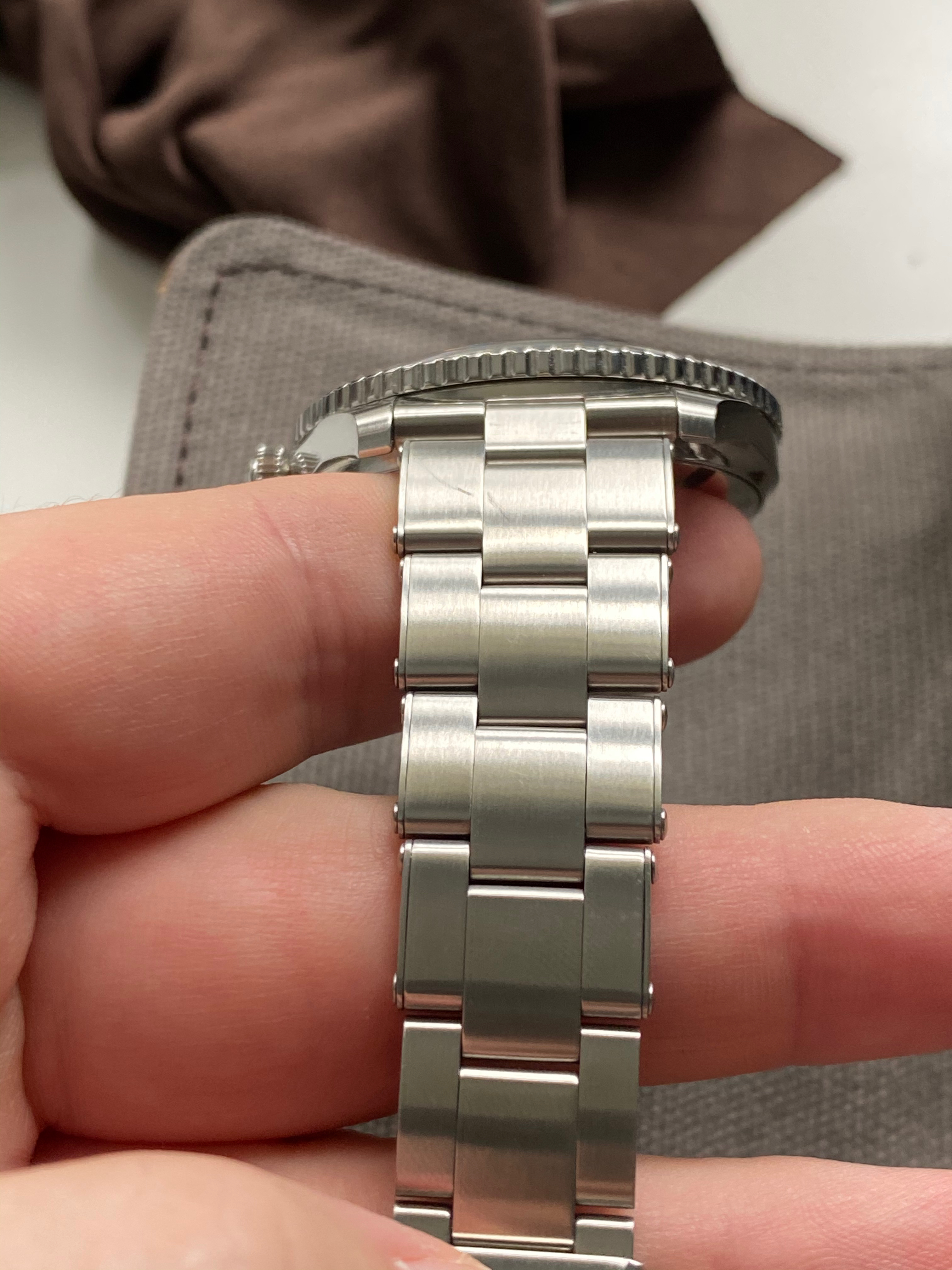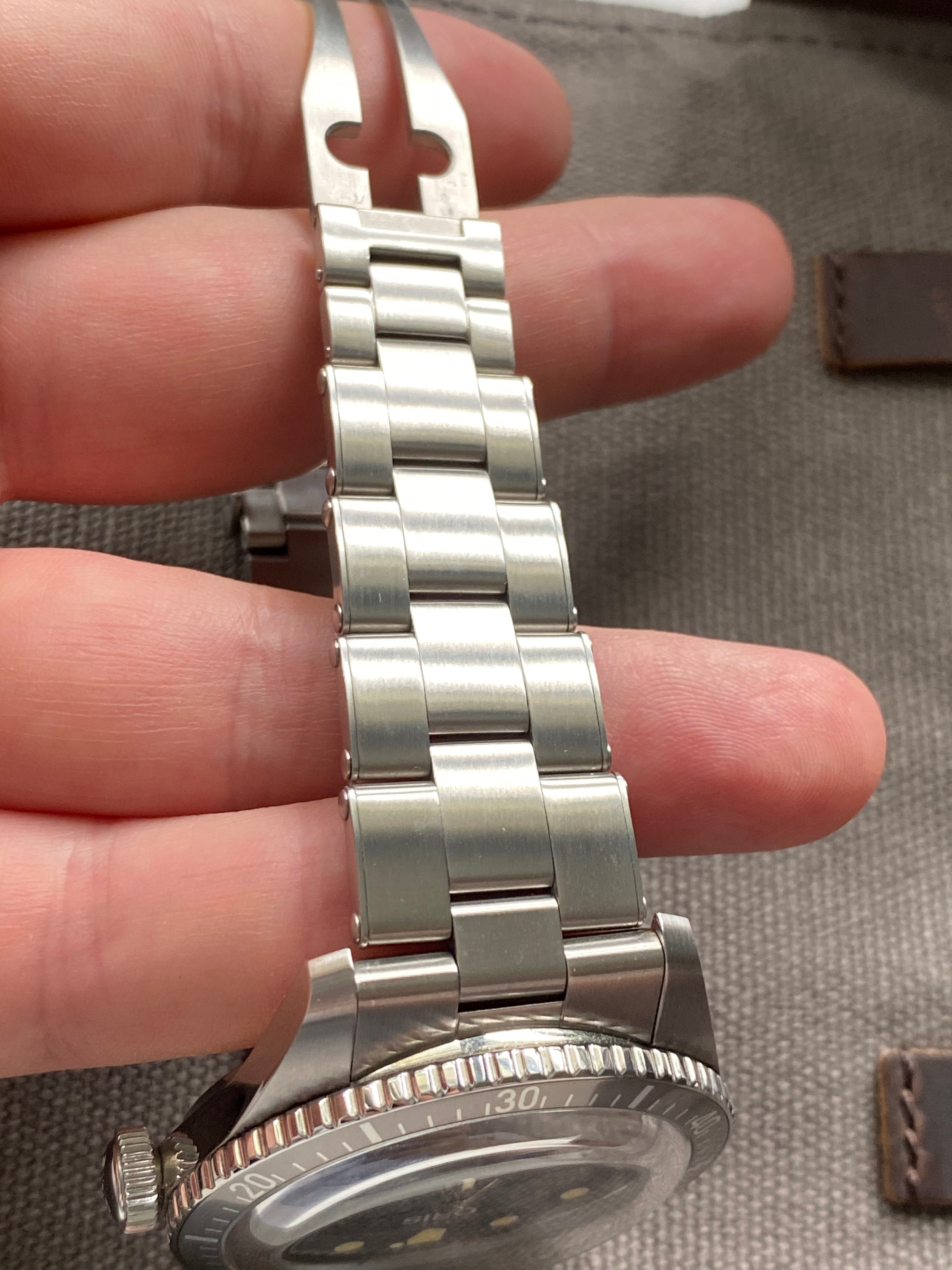 The watch is in very good condition, only visible signs of wear are on the mirror case back which catches scratches from basically anything + back side of the lugs from changing the bracelet.