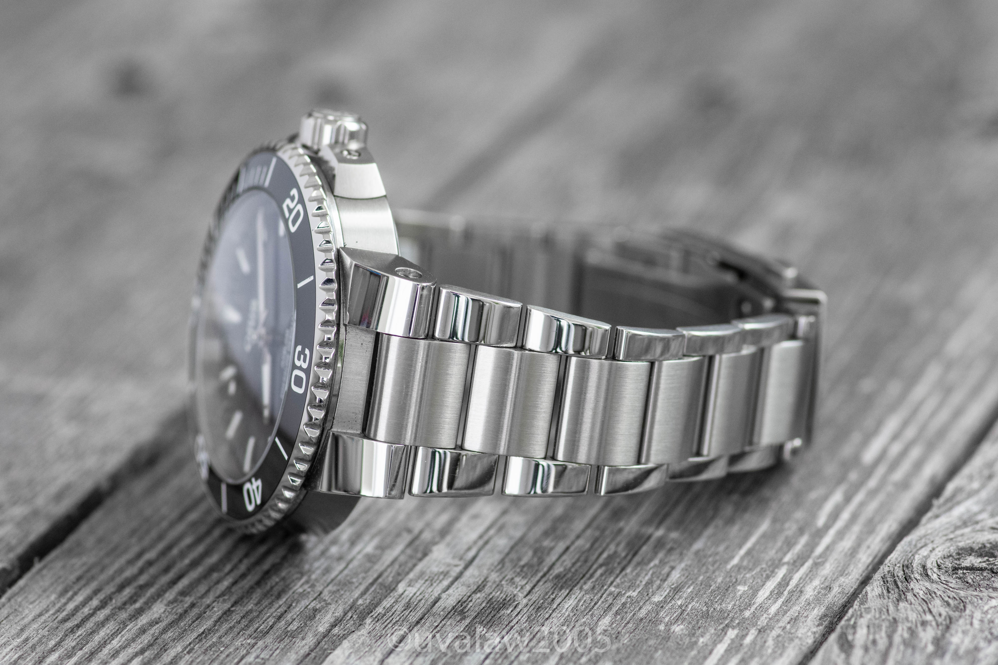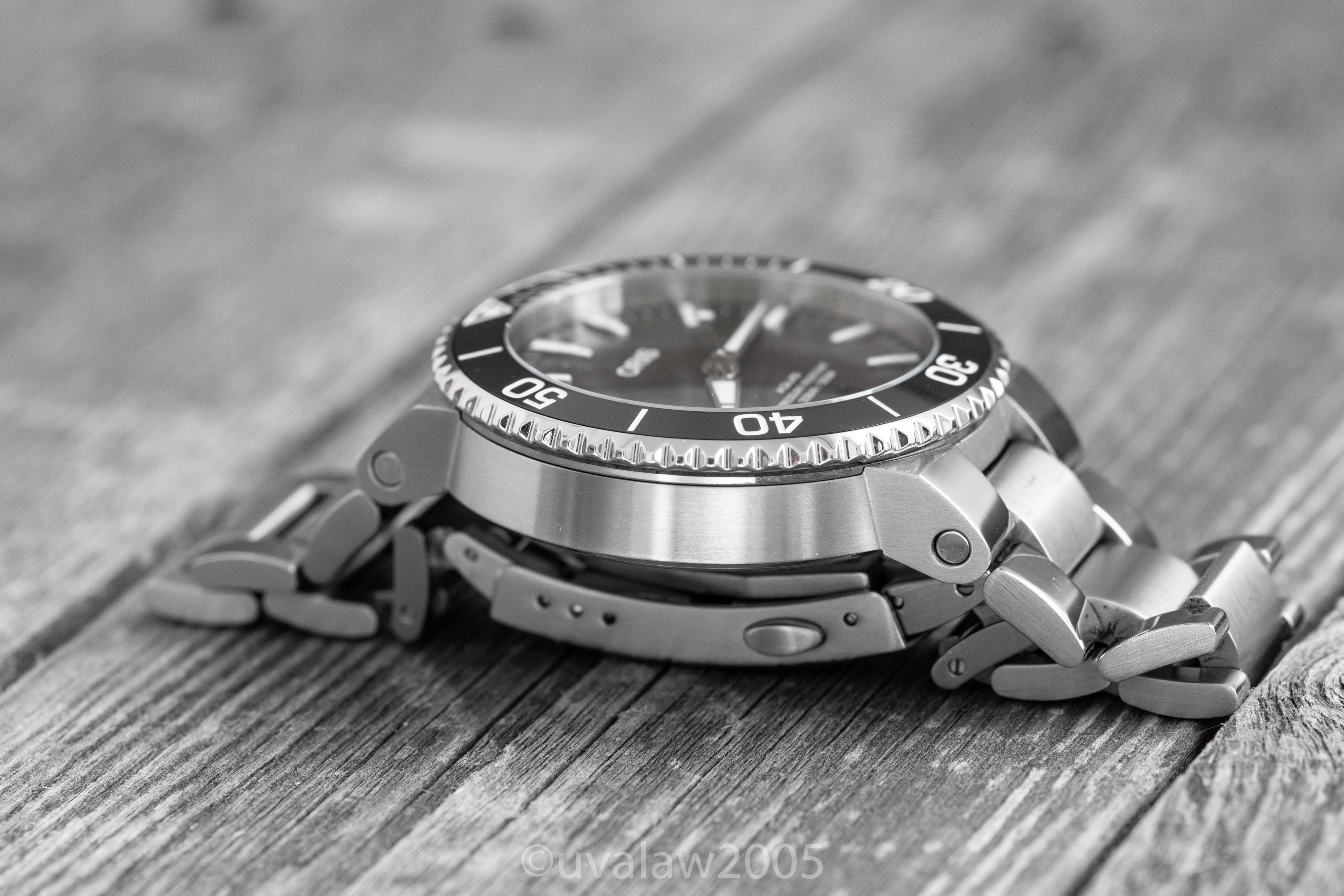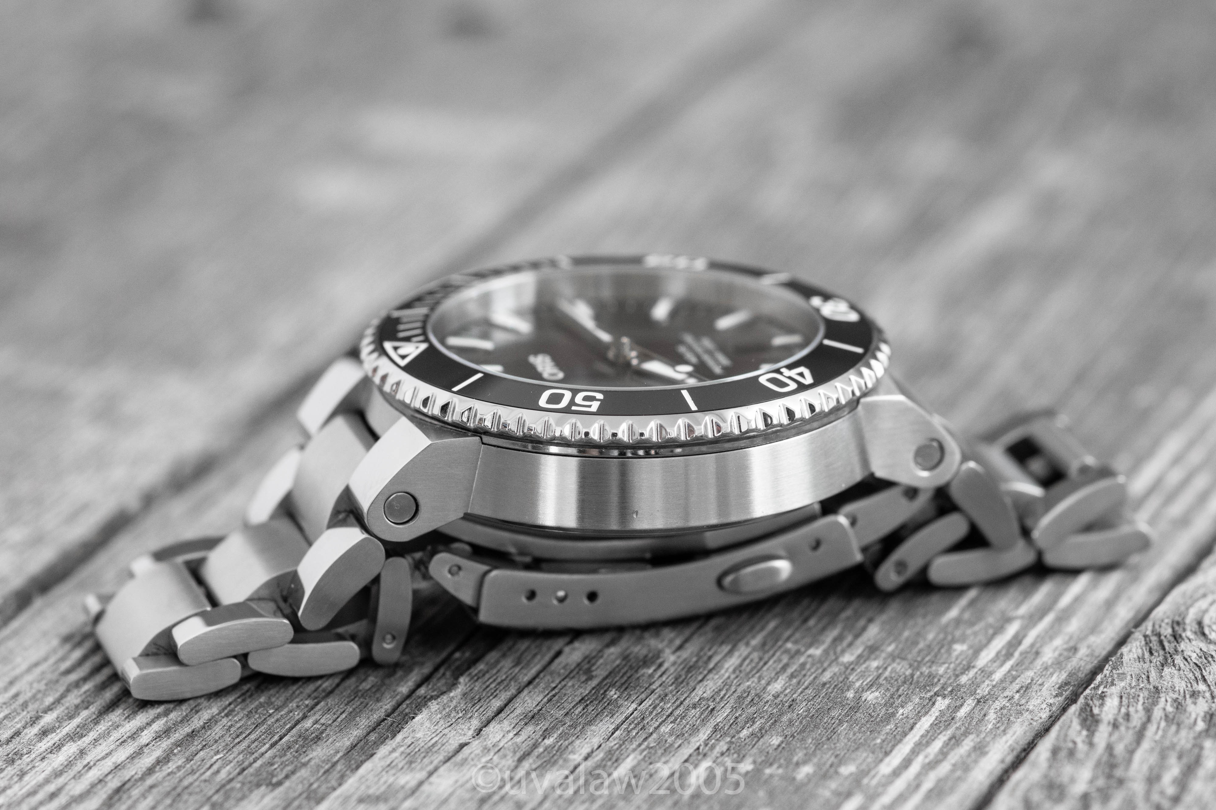 Watch is in excellent condition, with a pinpoint ding to the non-crown side the only sign of wear beyond ordinary desk-diving hairlines. Crystal and bezel are perfect and bezel is well-aligned.