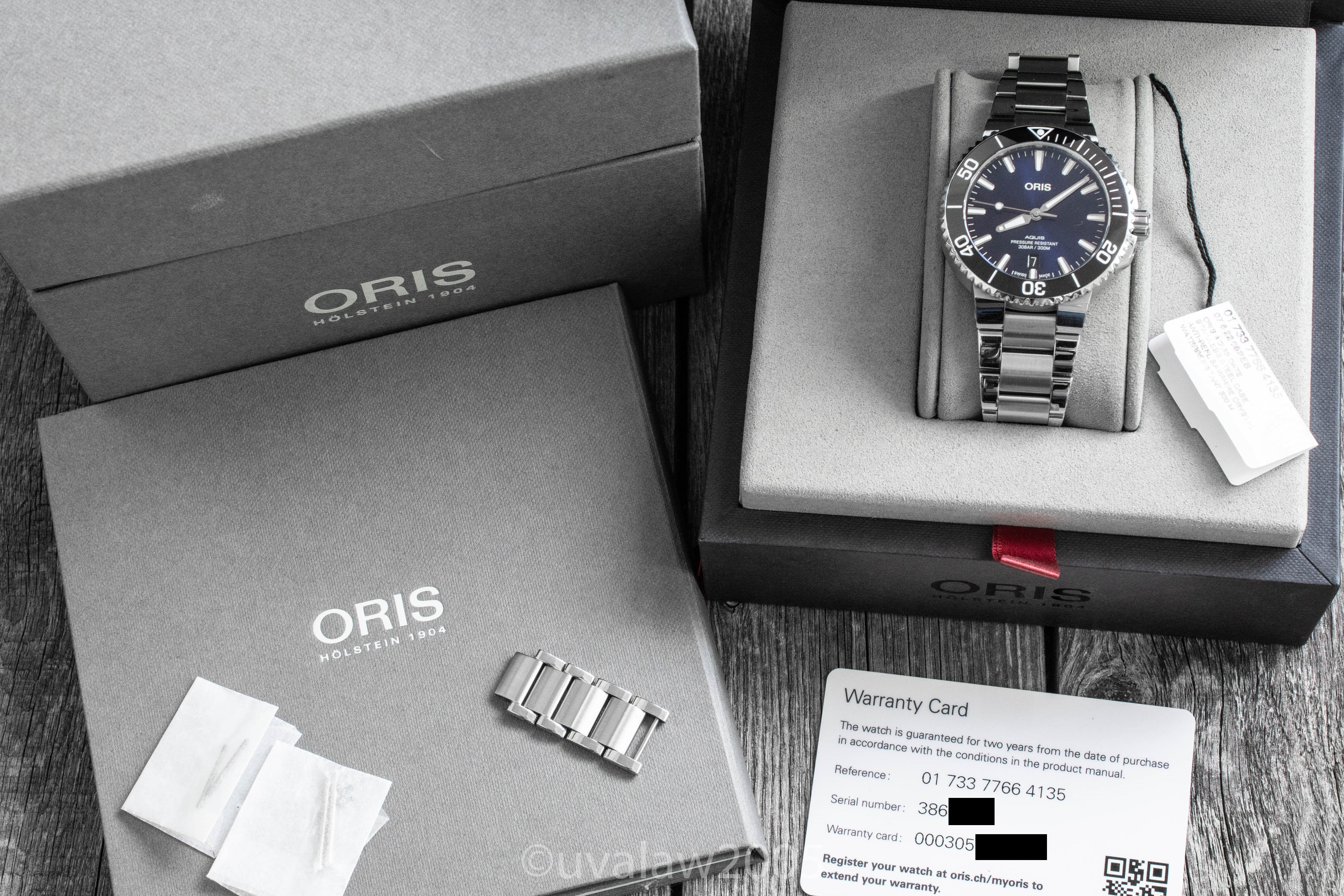 ·For sale is my blue dial, black ceramic bezel Oris Aquis 41.5mm automatic dive watch on OEM bracelet, ref. 01 733 7766 4135-07 8 22 05PEB. Purchased from an Oris A.D. last May and promptly registered, so the Oris warranty runs through May 2023.