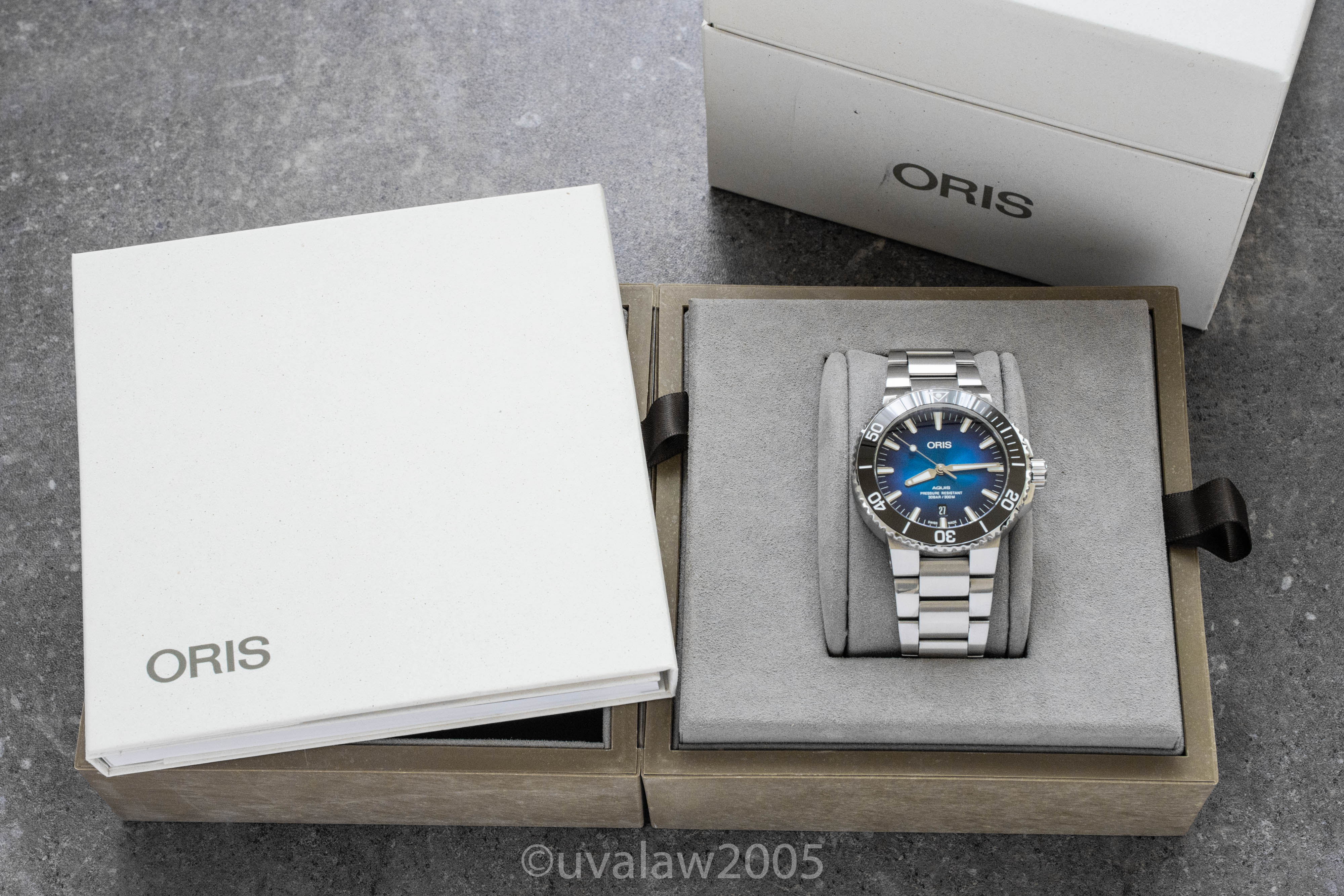 ·For sale is my Oris Aquis Clipperton (ref. 01 733 7730 4185-Set MB). The Clipperton was a limited edition release of the new 43.5mm version of the Aquis, with a sleeker and lighter design than the previous generation. The bracelet has been fully brushed, which I find much more befitting this tool dive watch. Watch was purchased from an Oris AD in January 2019 and is under warranty through January 2021.