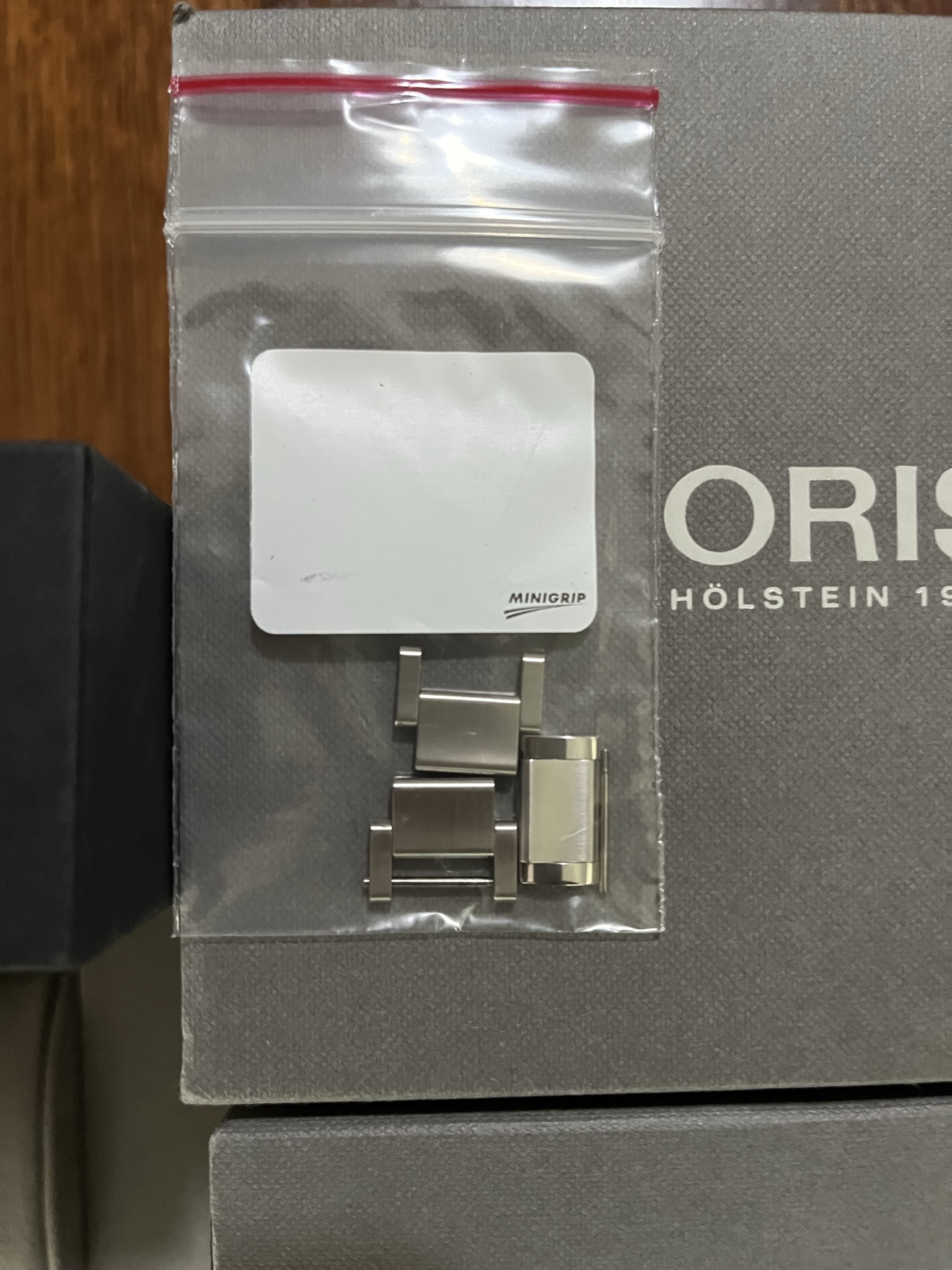 Bracelet is sized for 7.25” wrist. Three links are included.