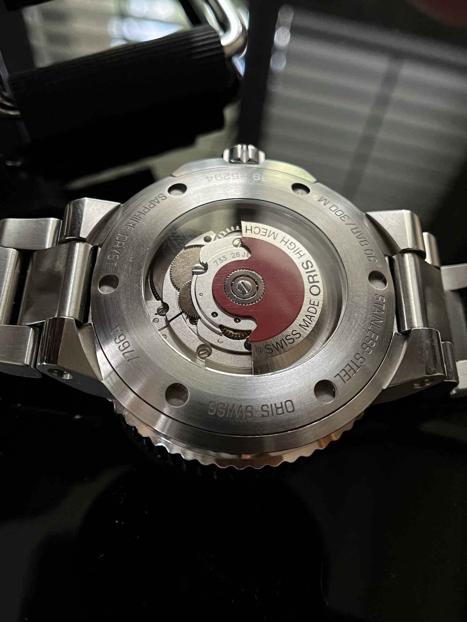 The movement is Oris’ 733 automatic and is based on a Sellita SW200-1.