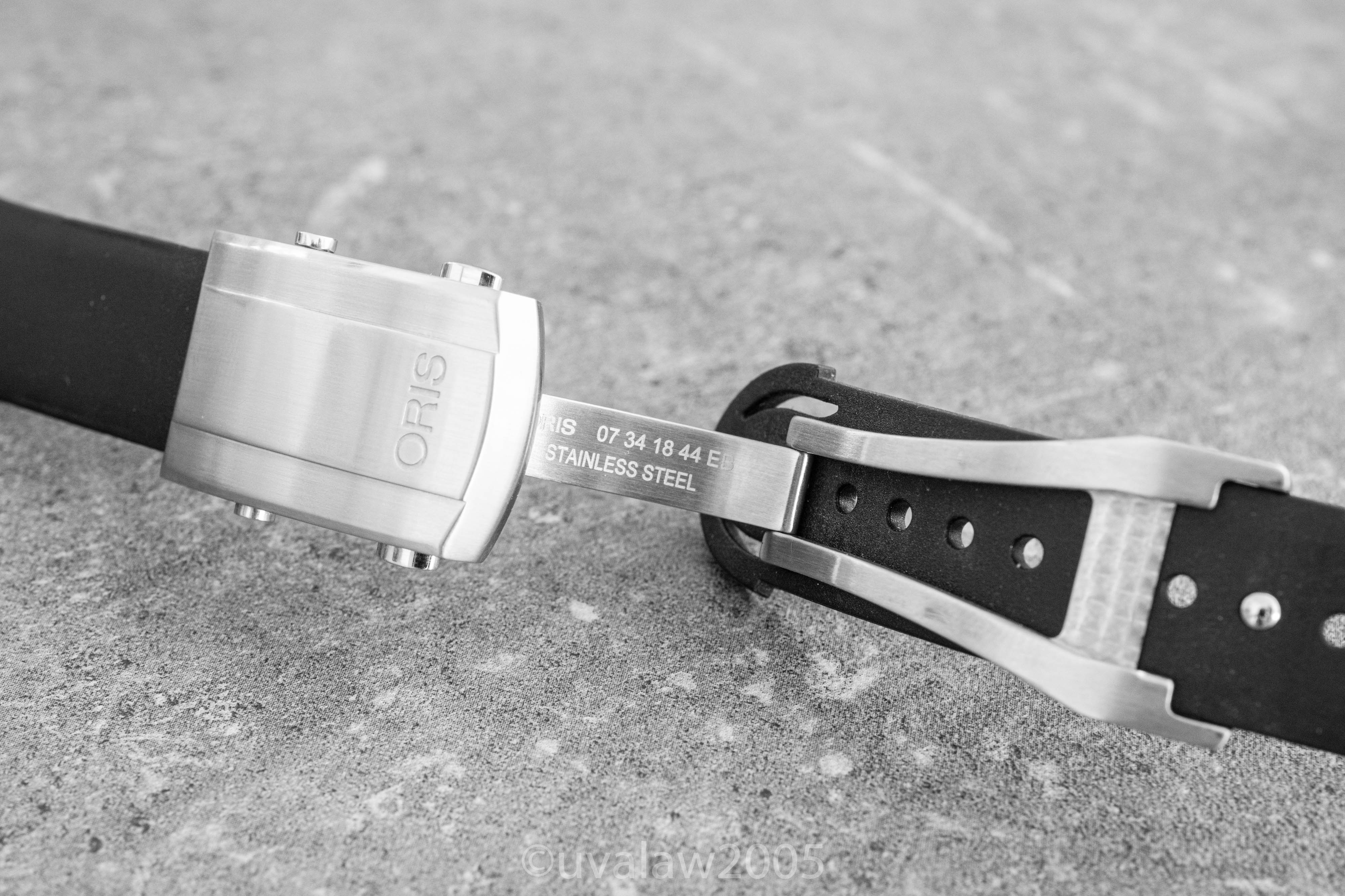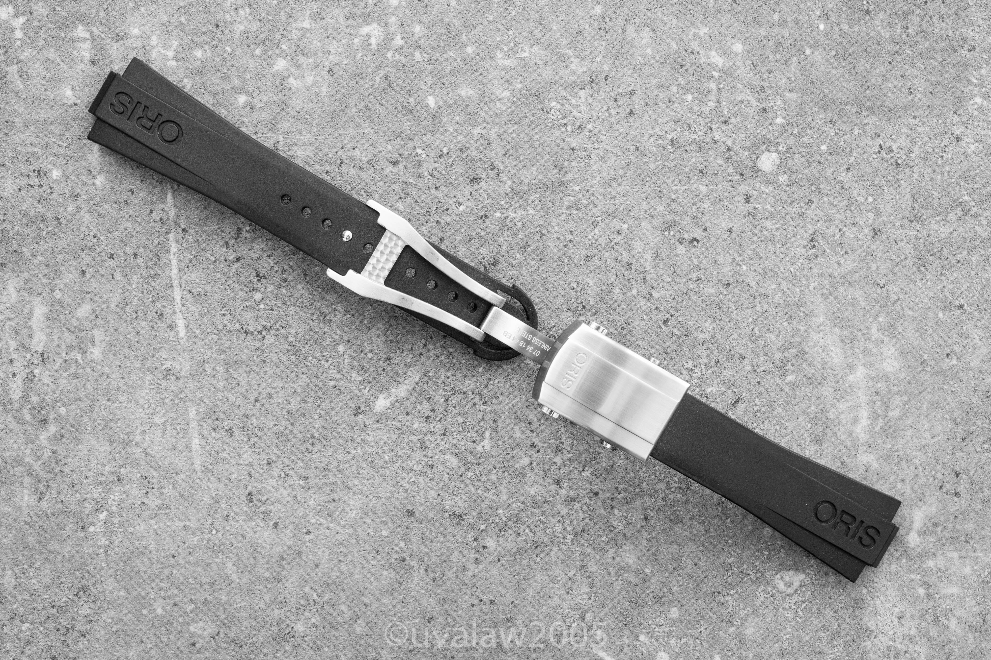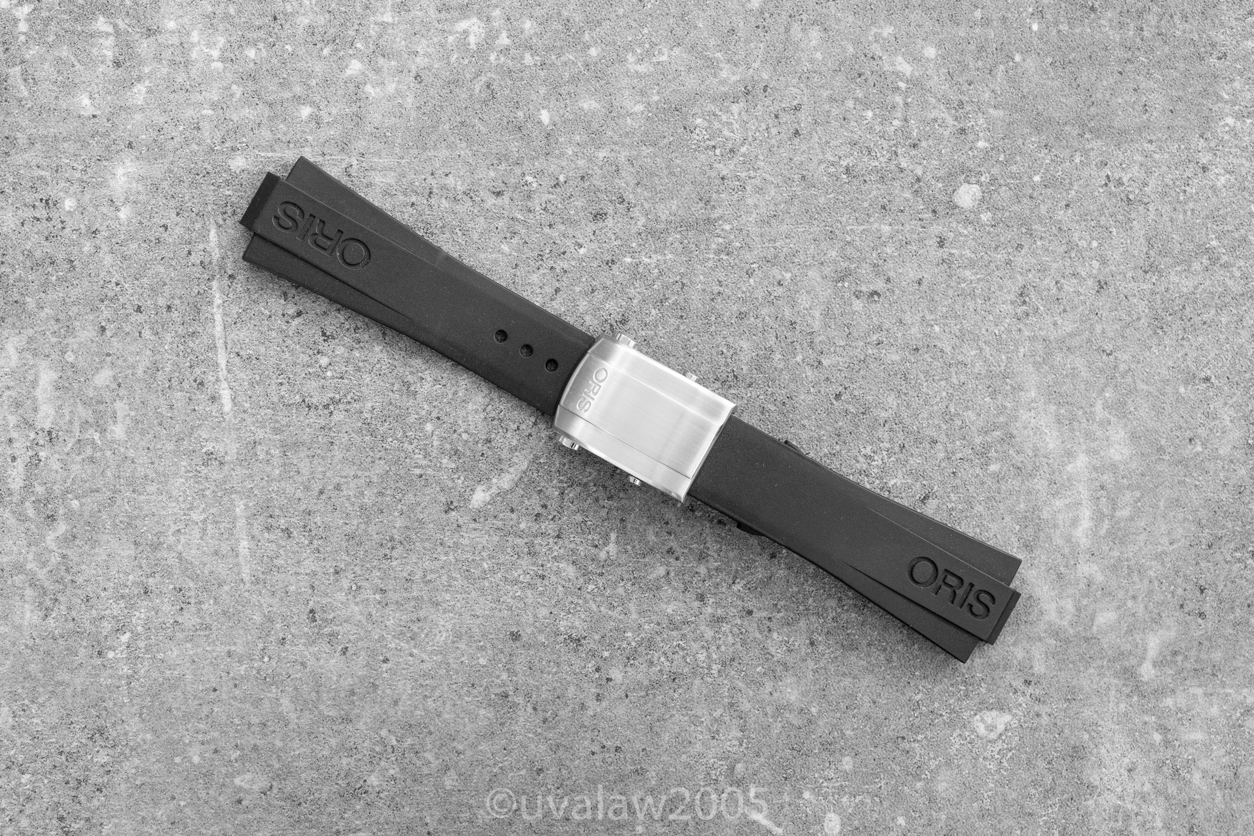 ·For sale is an excellent condition Oris OEM black rubber strap (ref. 07 4 24 64NB) with OEM deployant clasp with on-the-fly micro adjustments (ref. 07 34 18 44 EB). Clasp has been fully brushed so it will show less wear. This is for the 2017-present 43.5mm Aquis versions, with case no. 7730. I can also include an after-market tri-wing screwdriver at no additional charge.