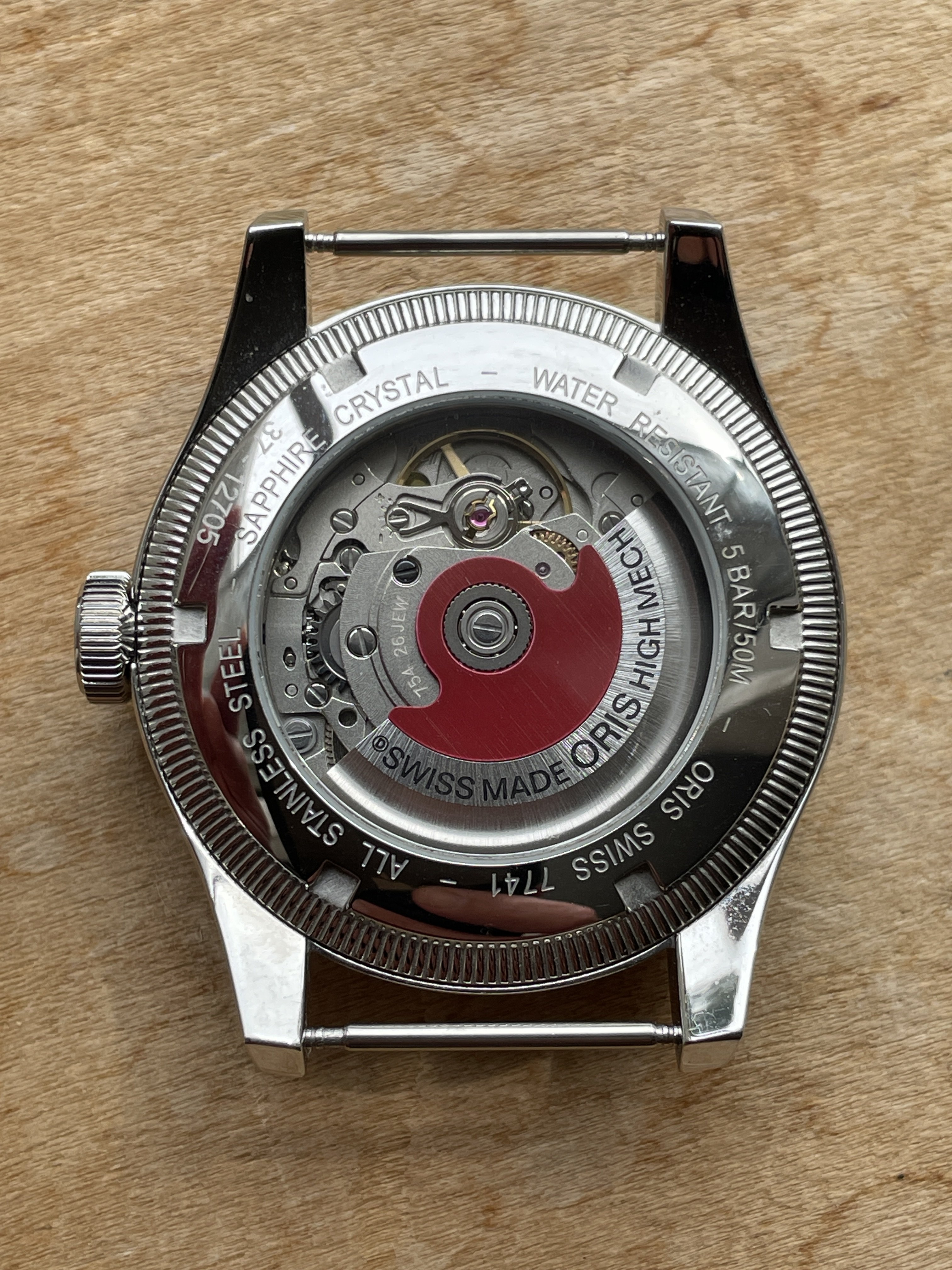 • Movement: It is powered by an automatic movement, likely the Oris Calibre 754, based on the Sellita SW 200-1. This movement has a 38-42 hour power reserve.