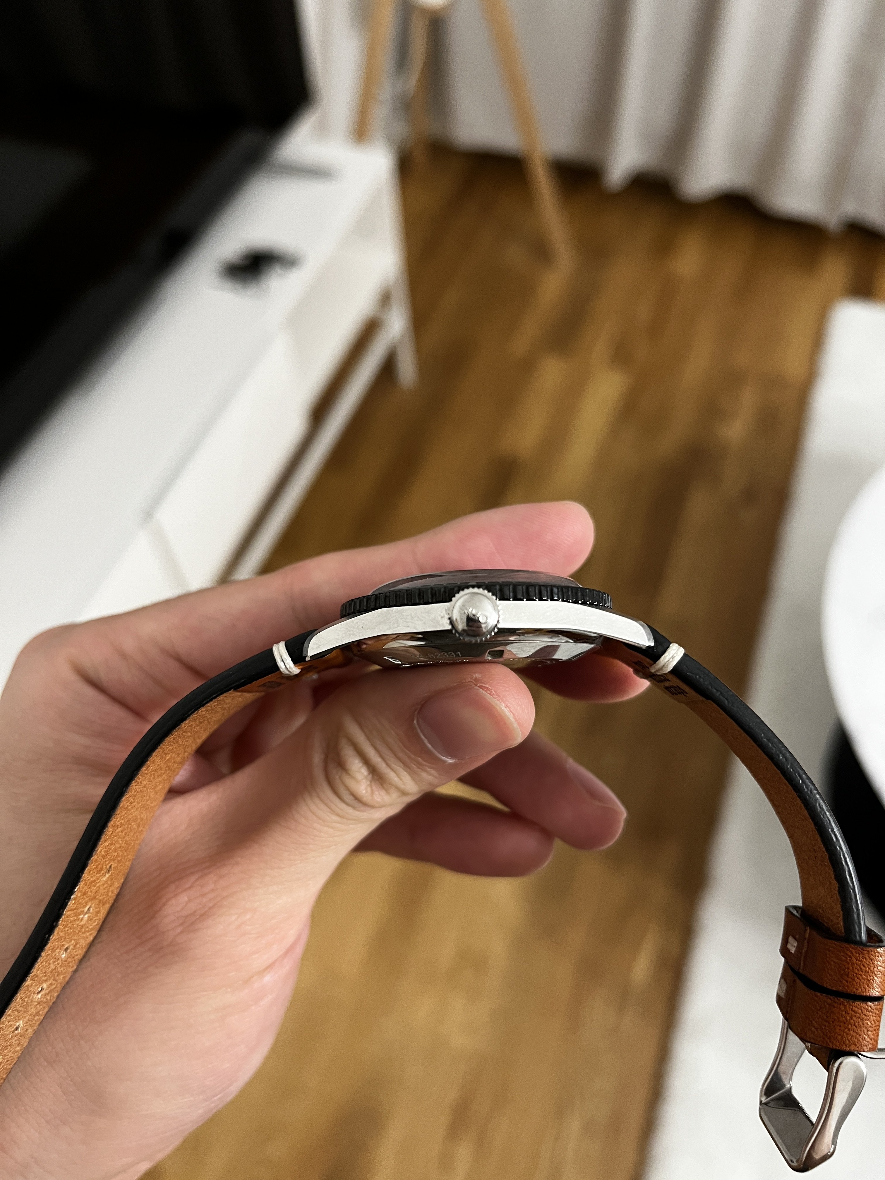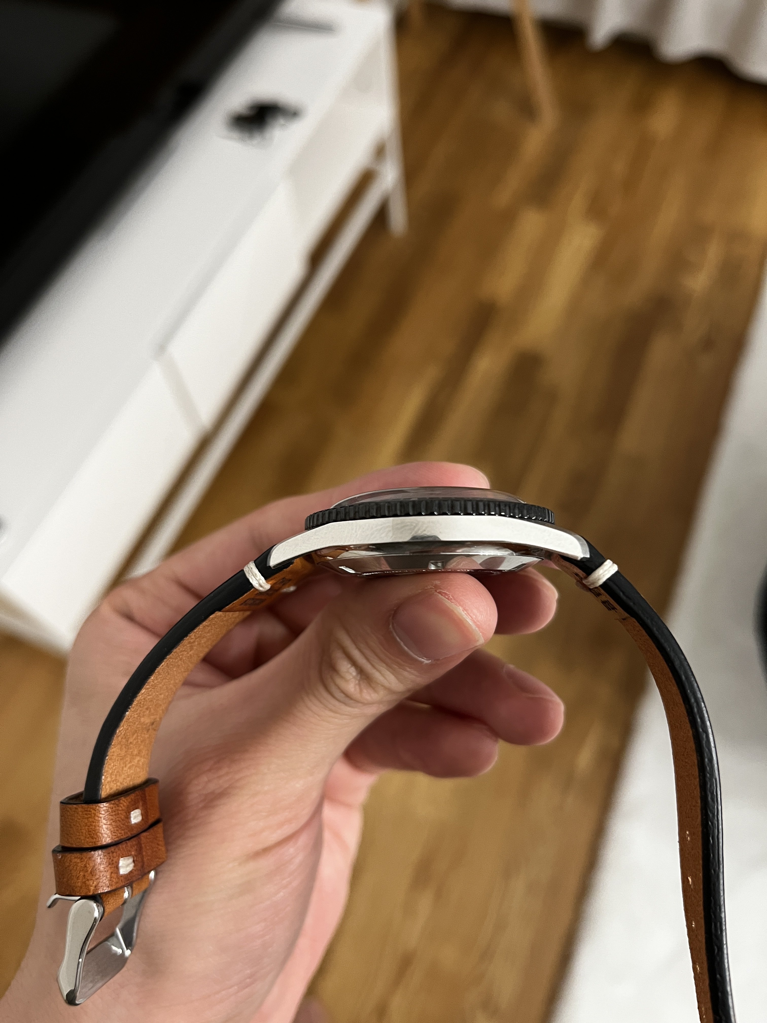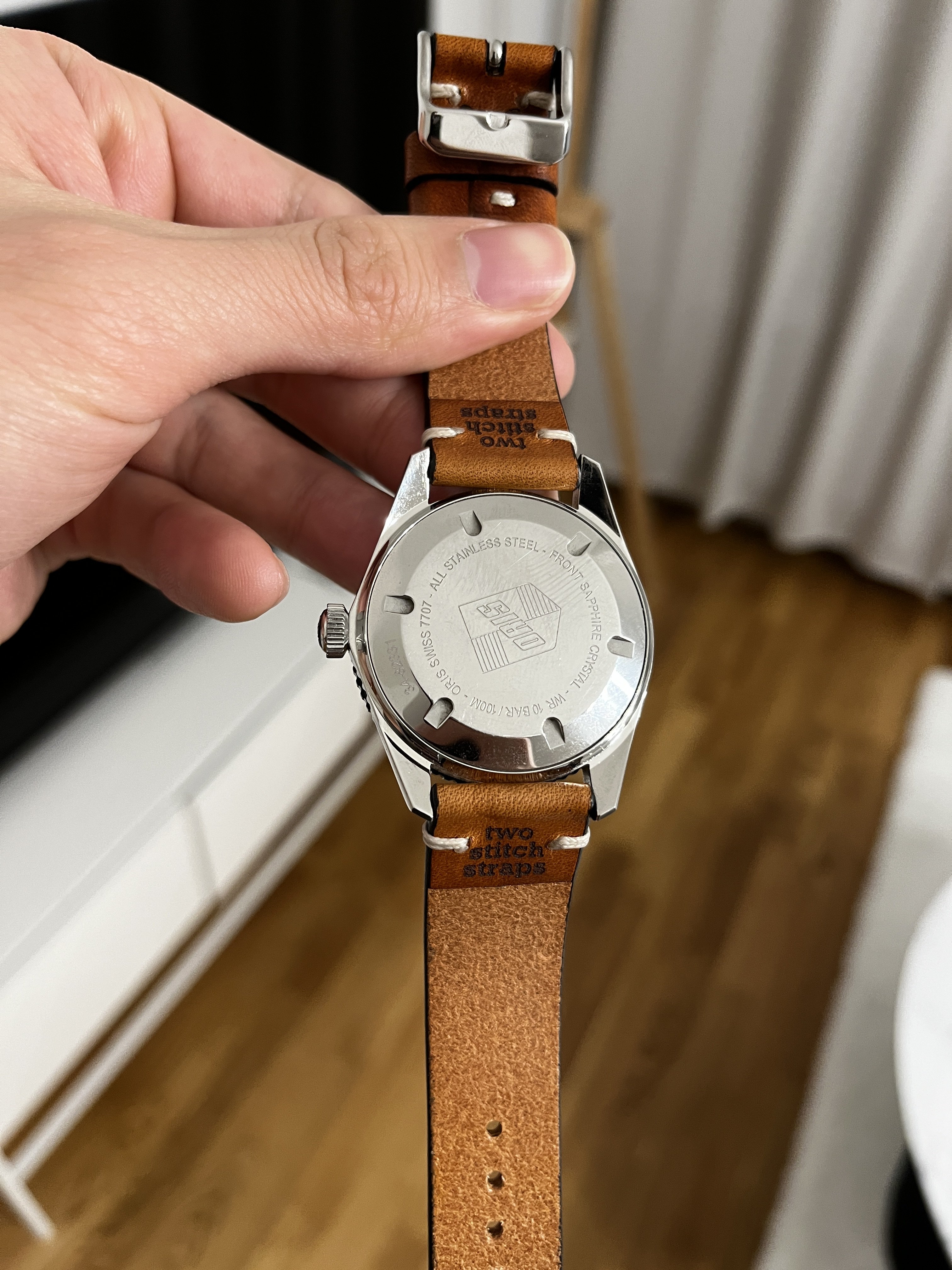 Bought back in October 2019 and have barely been used since. The bezel and the sides of the case have no/barely visible traces of use. The "invisible" parts of the watch, i.e. the back cover and the back of the lugs have visible hairlines and small scratches. It comes with fullset and on a original textile strap from Oris.