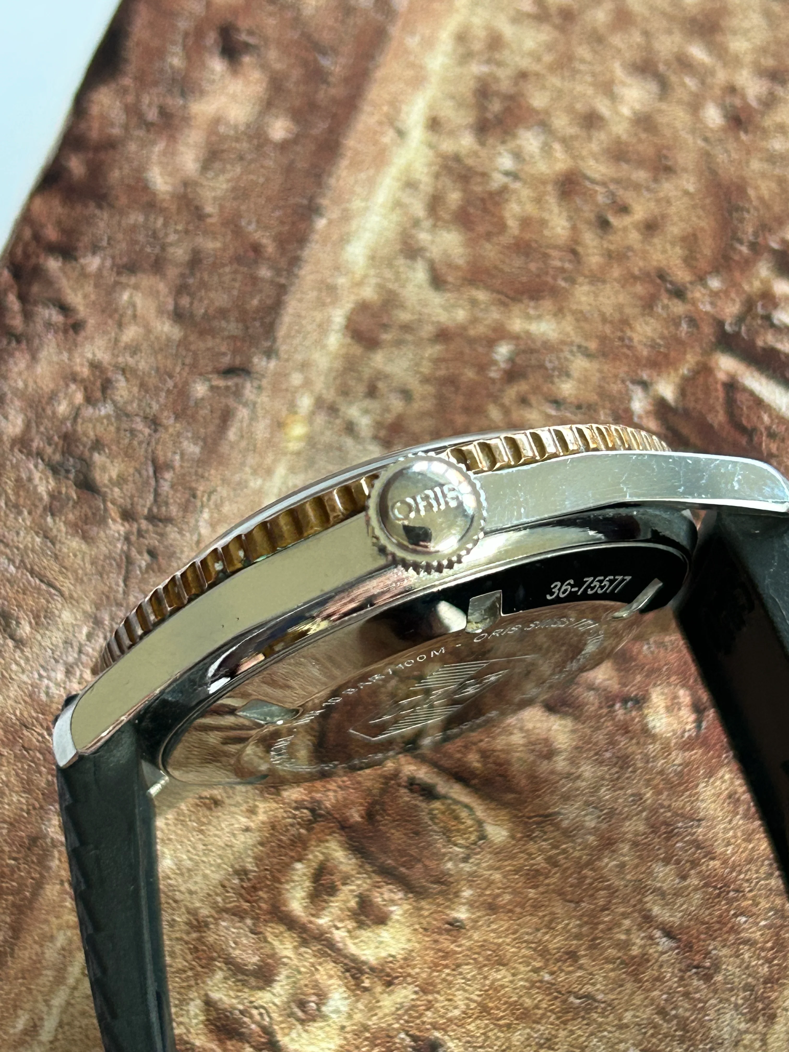 40mm case, 48mm lug-to-lug, 13mm thick. Movement is Oris Cal 733 (Sellita SW 200-1).
