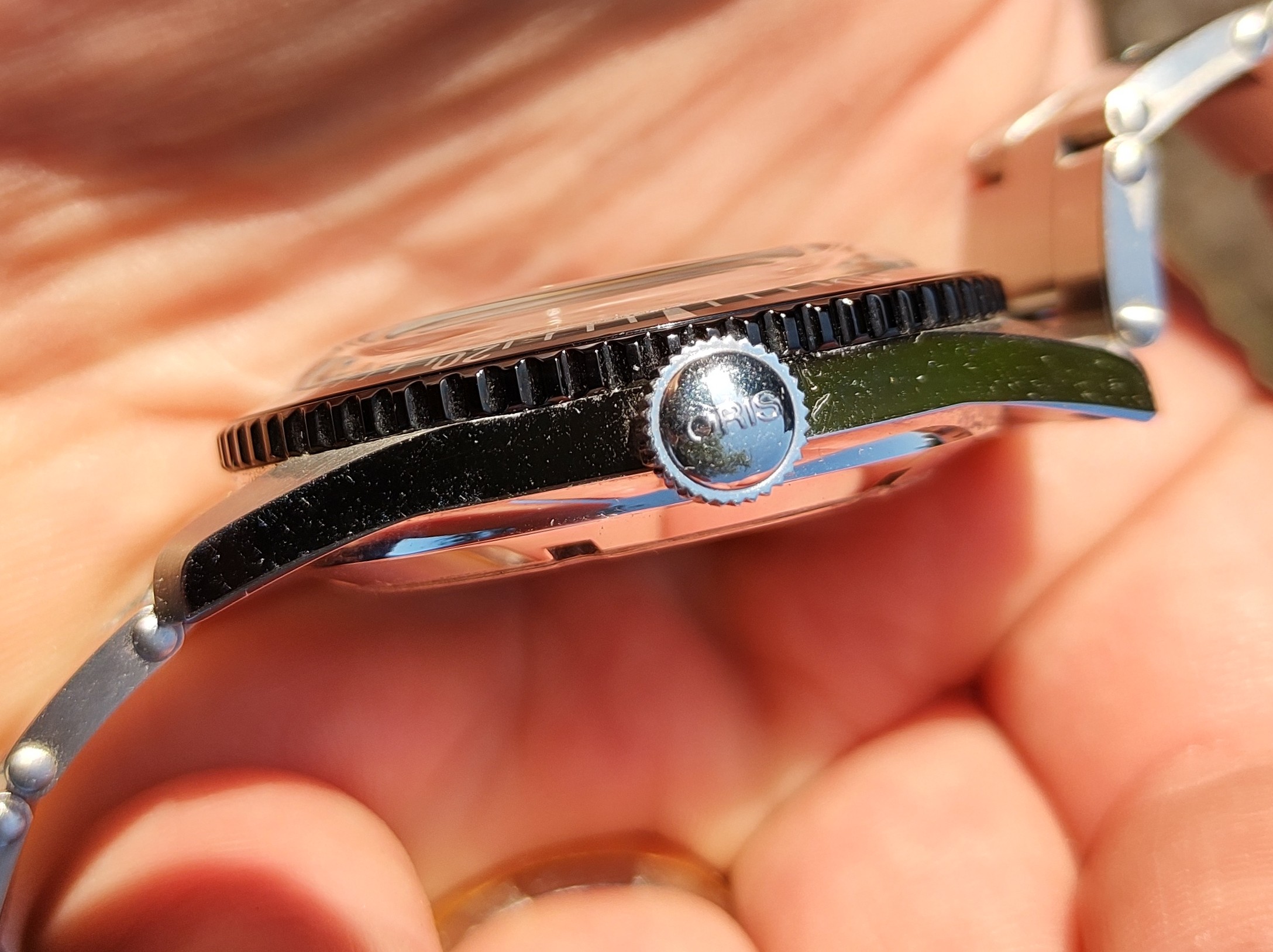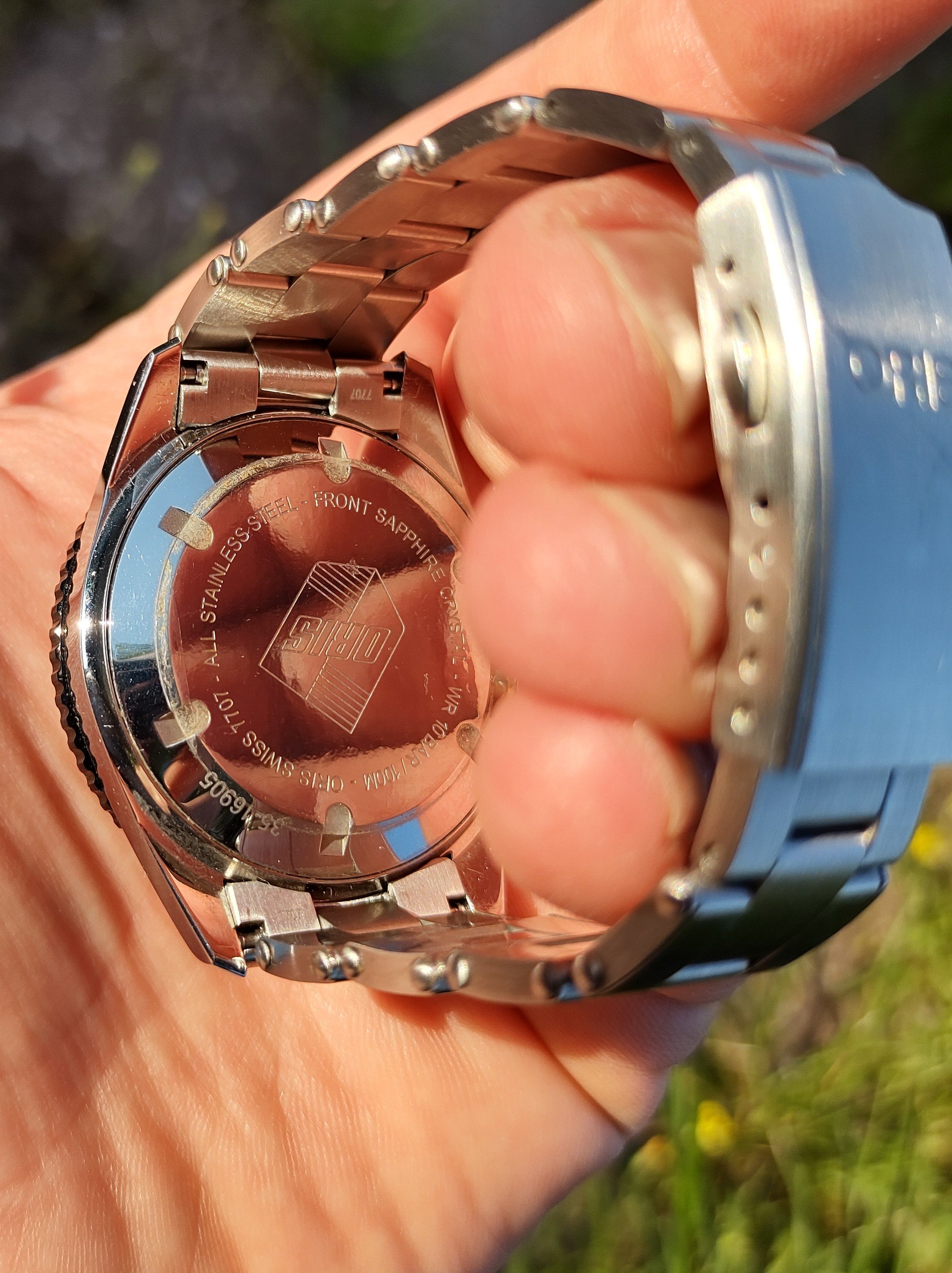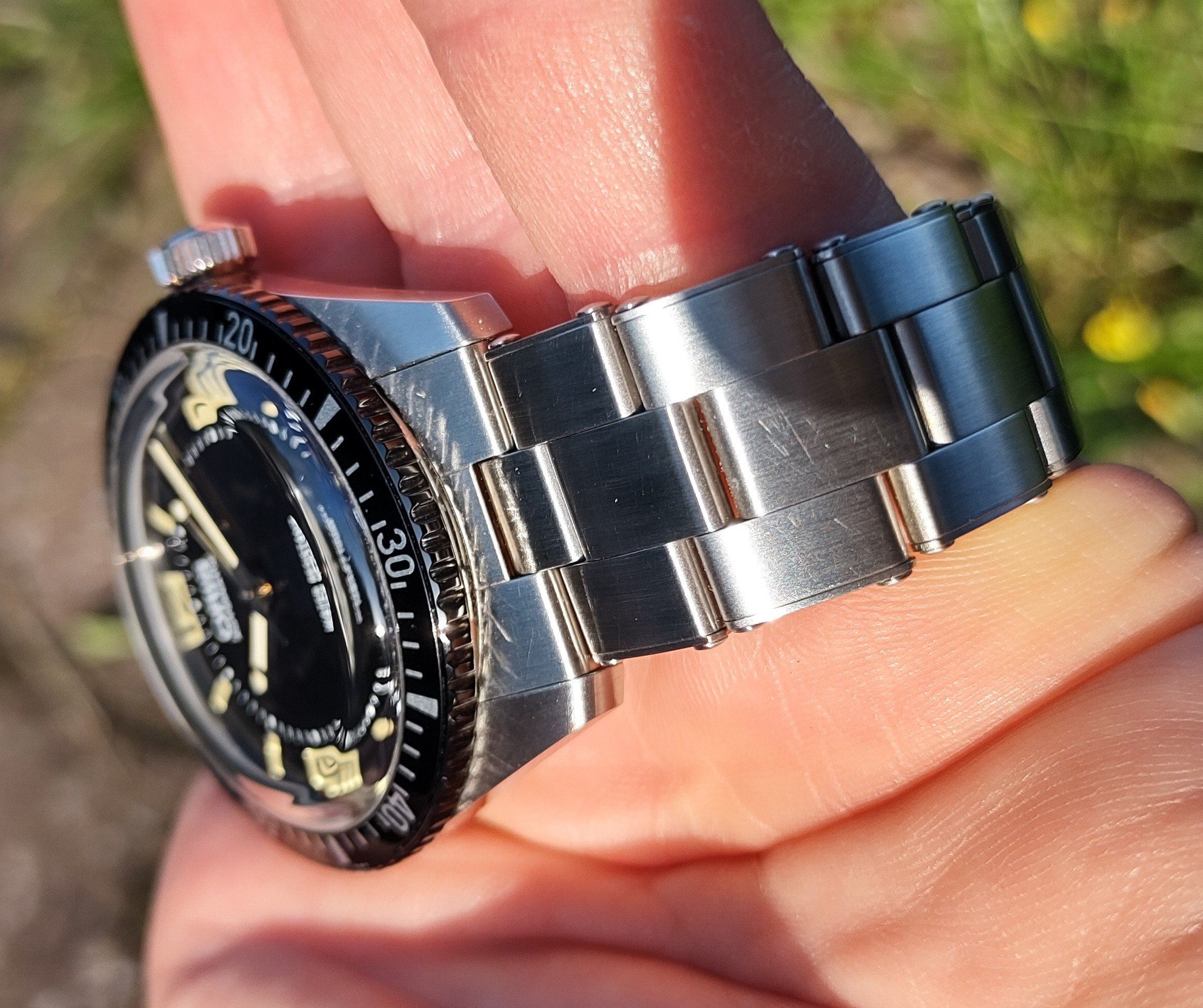 To quote the previous owner, "There are some light marks on the side of the bezel at 9 o'clock. If I hadn't looked at these photos twice and with scrutiny, I would have missed it. In the hand you would not see them (maybe with reading glasses or a loupe).". Very honestly - I can't see them either, but hey this is all about full disclosure isn't it? 😎 "The caseback has no scratches, and I can't see any on the lugs. Maybe there are some micro scratches visible on the back of the lugs when looked at under a loupe. [the previous owner] did alternate between straps/nato/bracelet in [his] years of ownership. The caseback has never been opened. The watch has never been serviced. I think it is still good for a while".