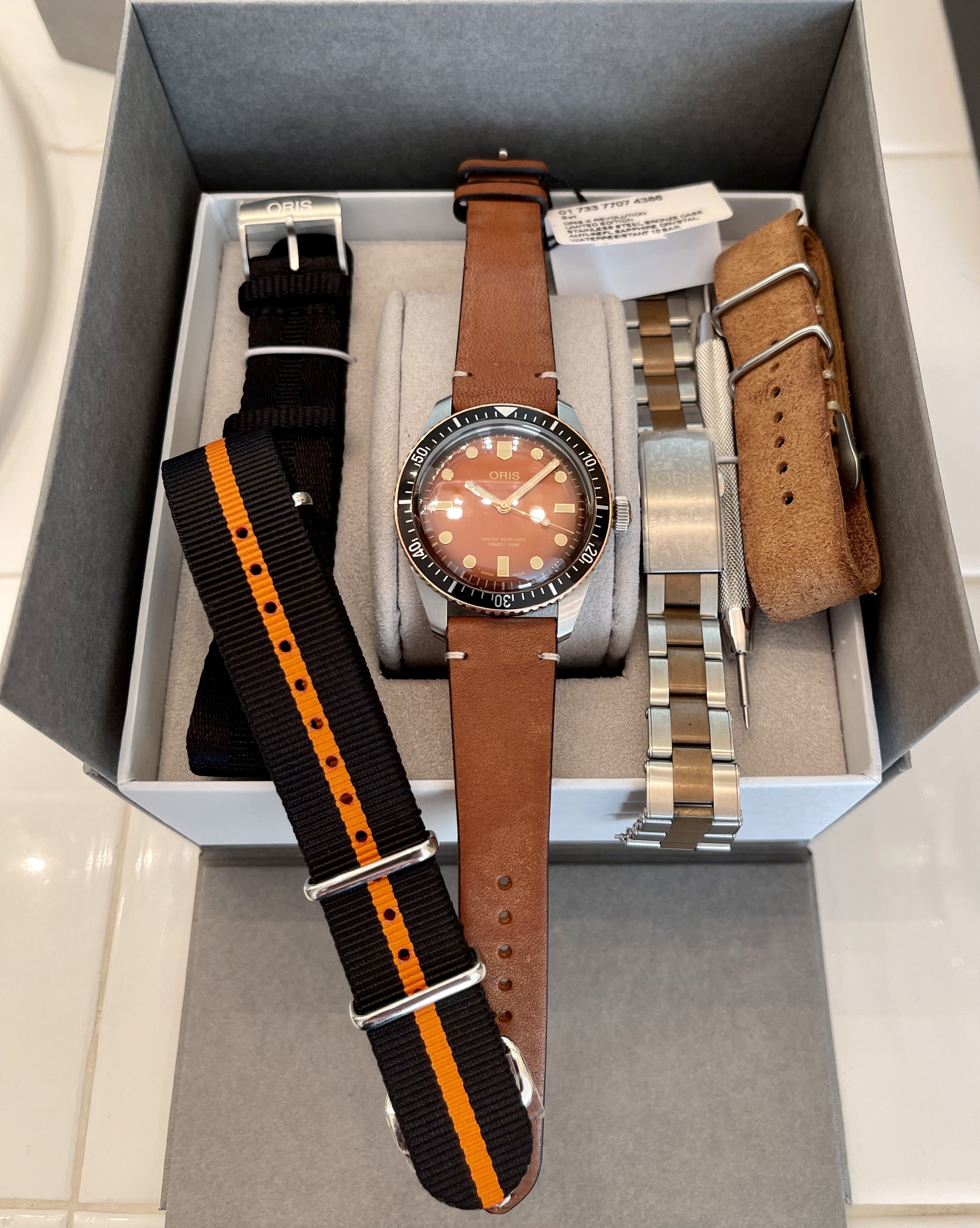 It comes with 4 straps and the Bi-Co bracelet by Oris.
