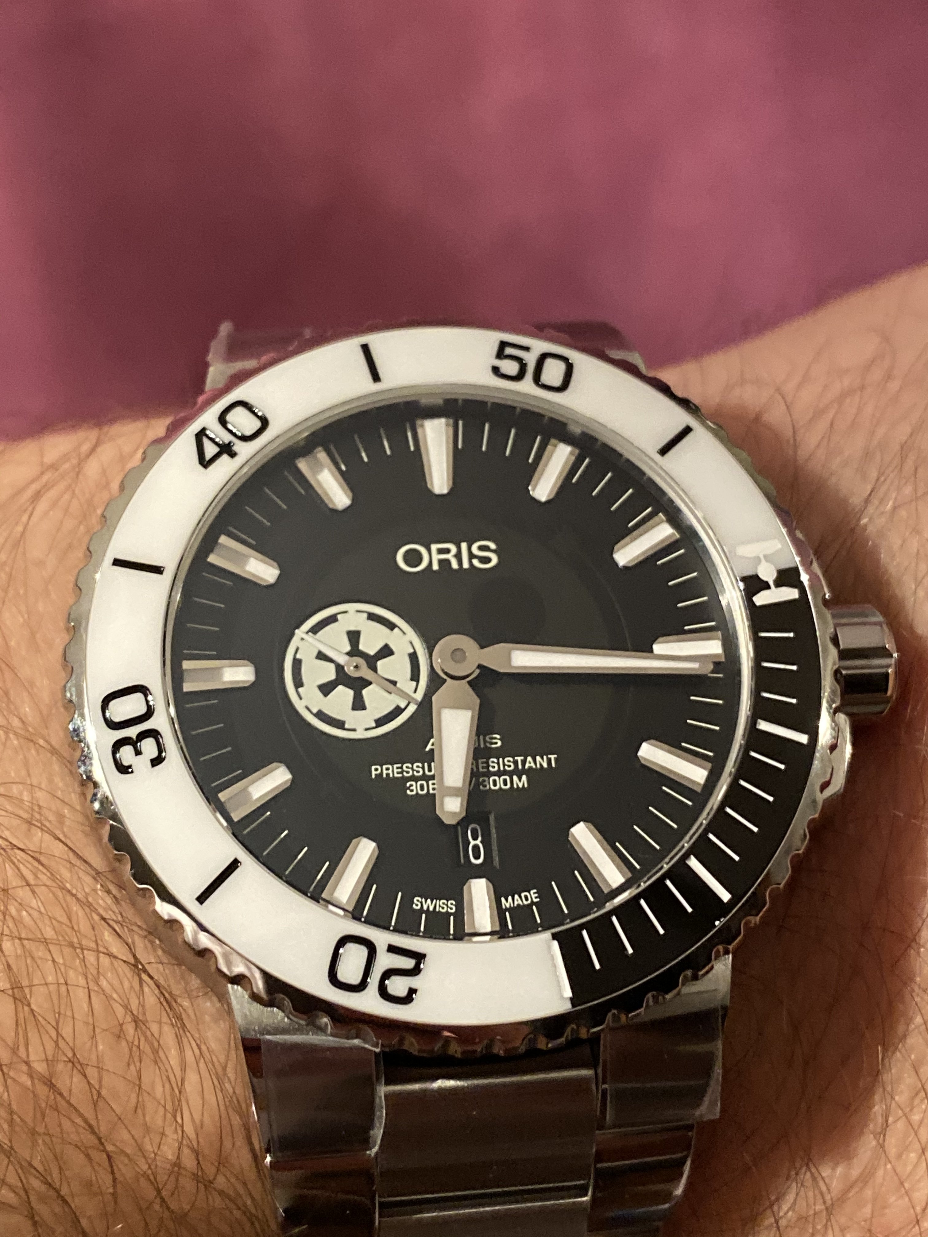 - ...and most strikingly: no date! Oris modified the Sellita SW200 to accommodate this.