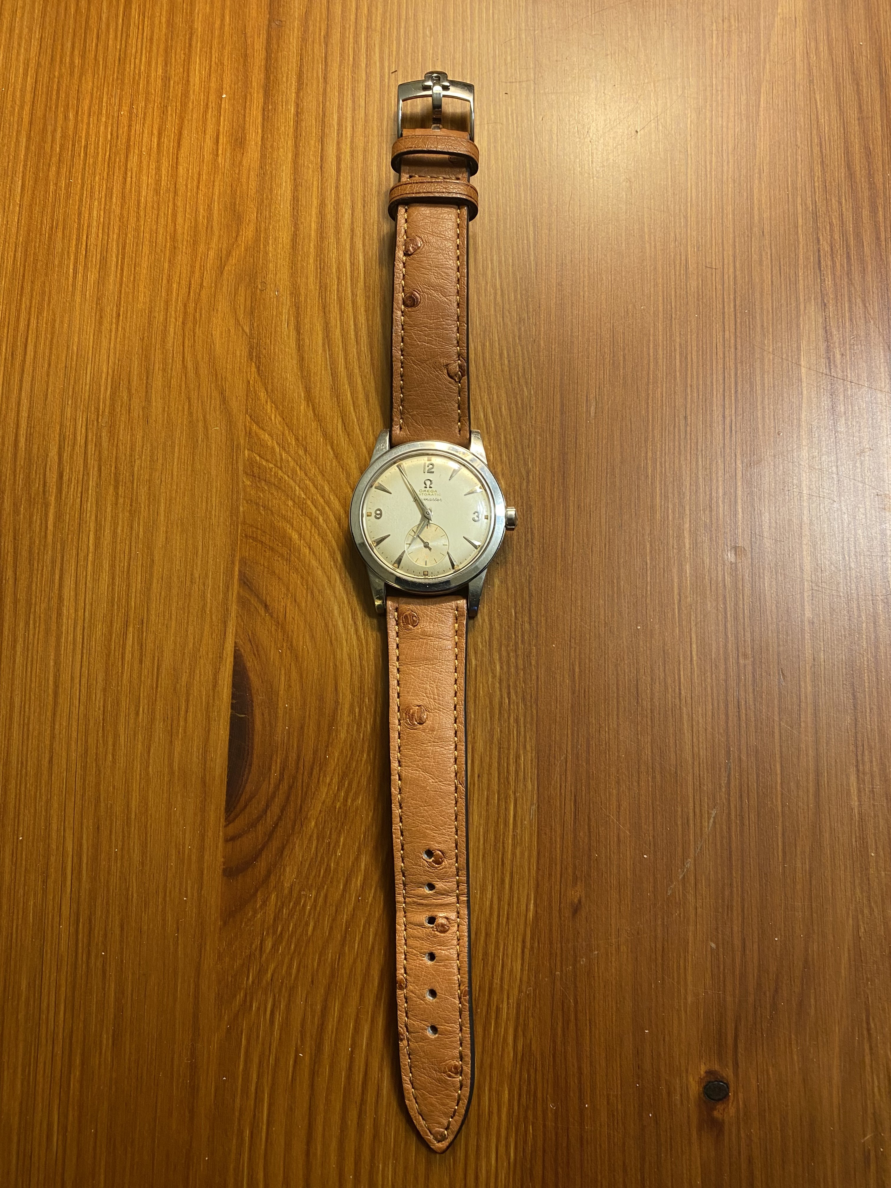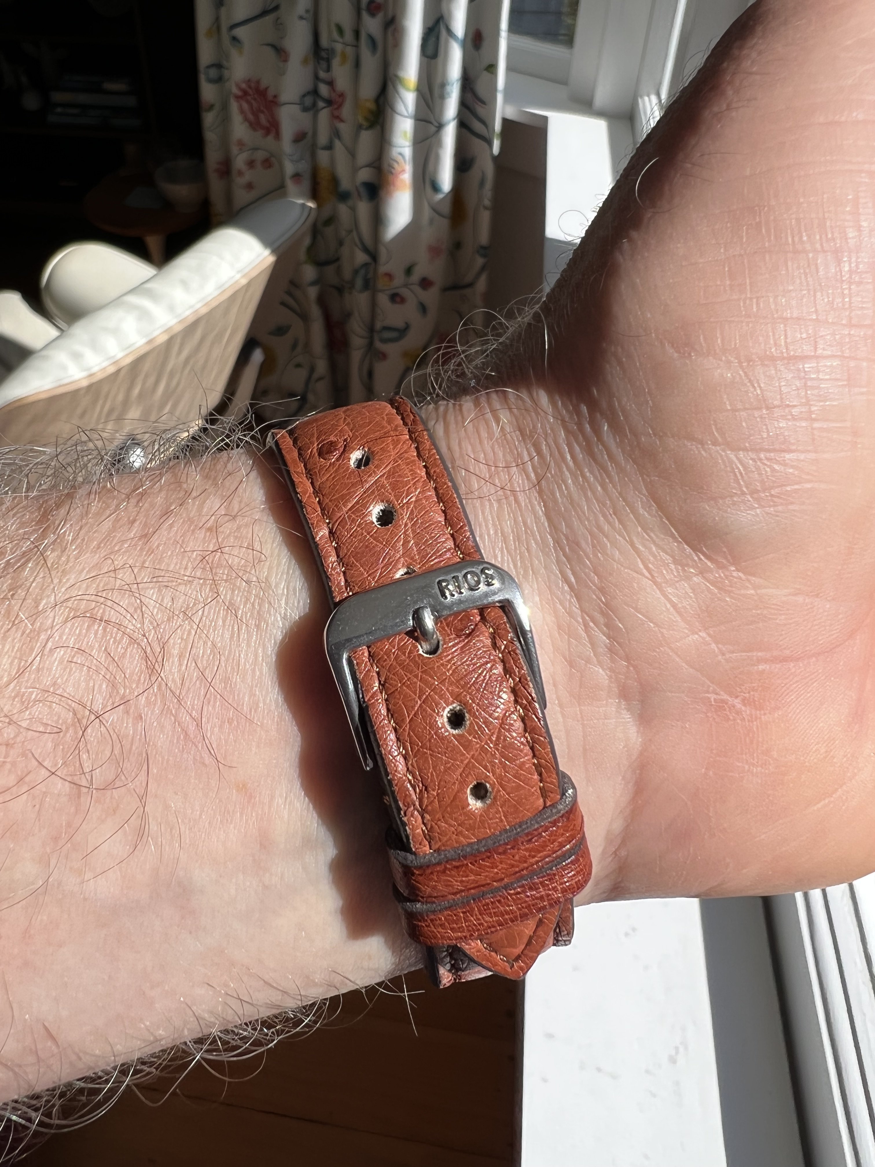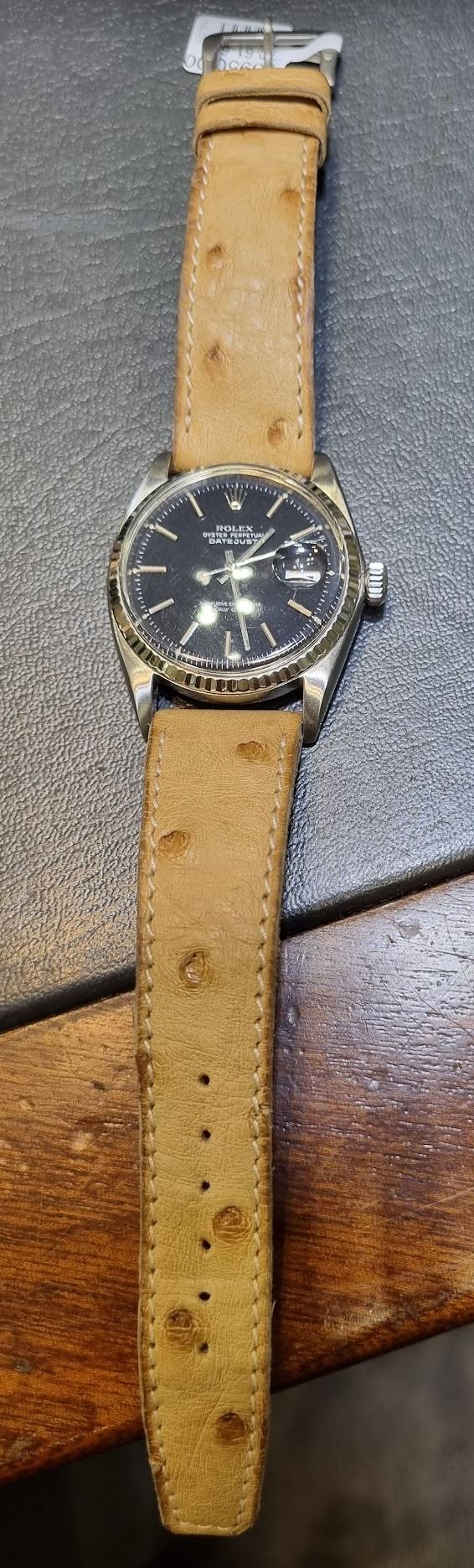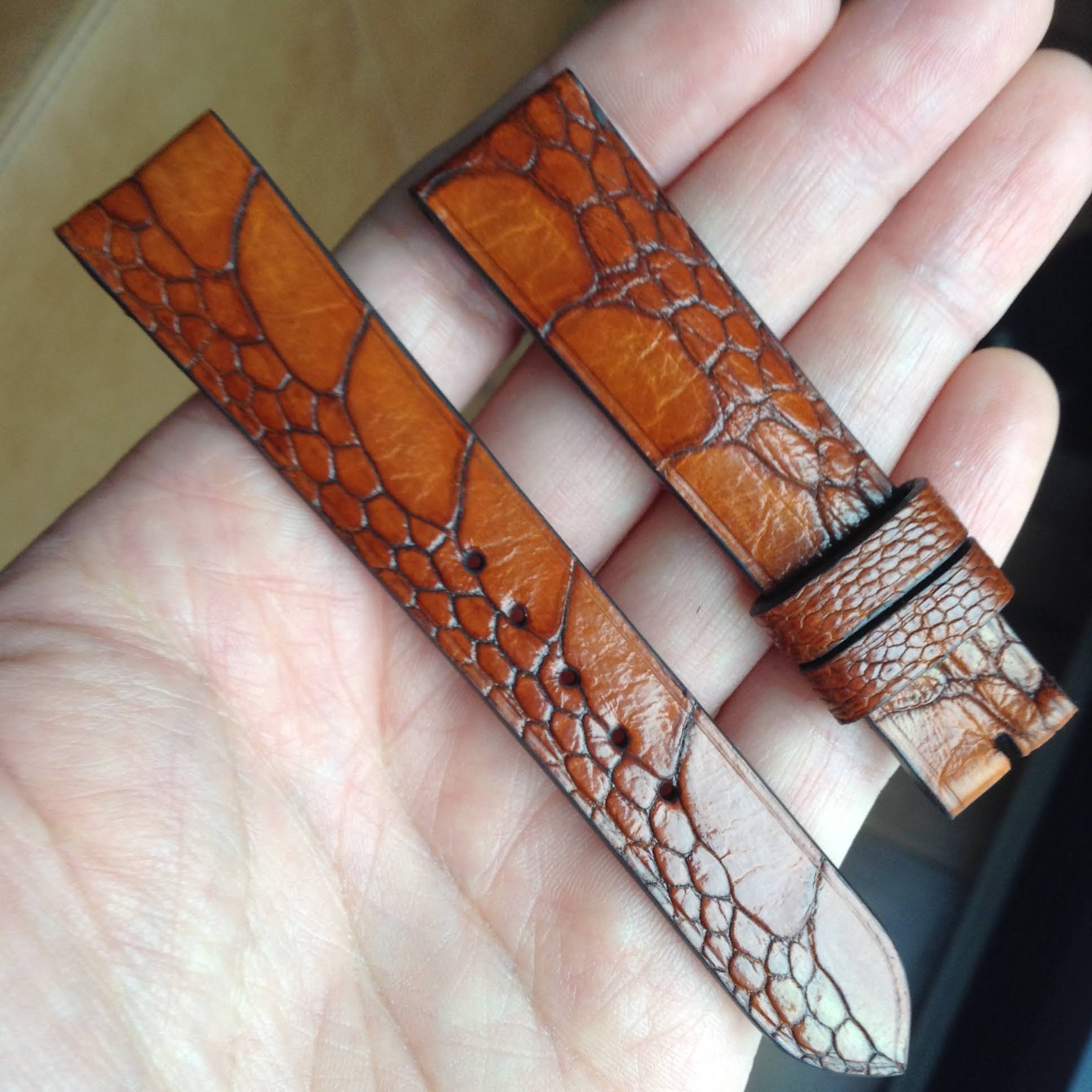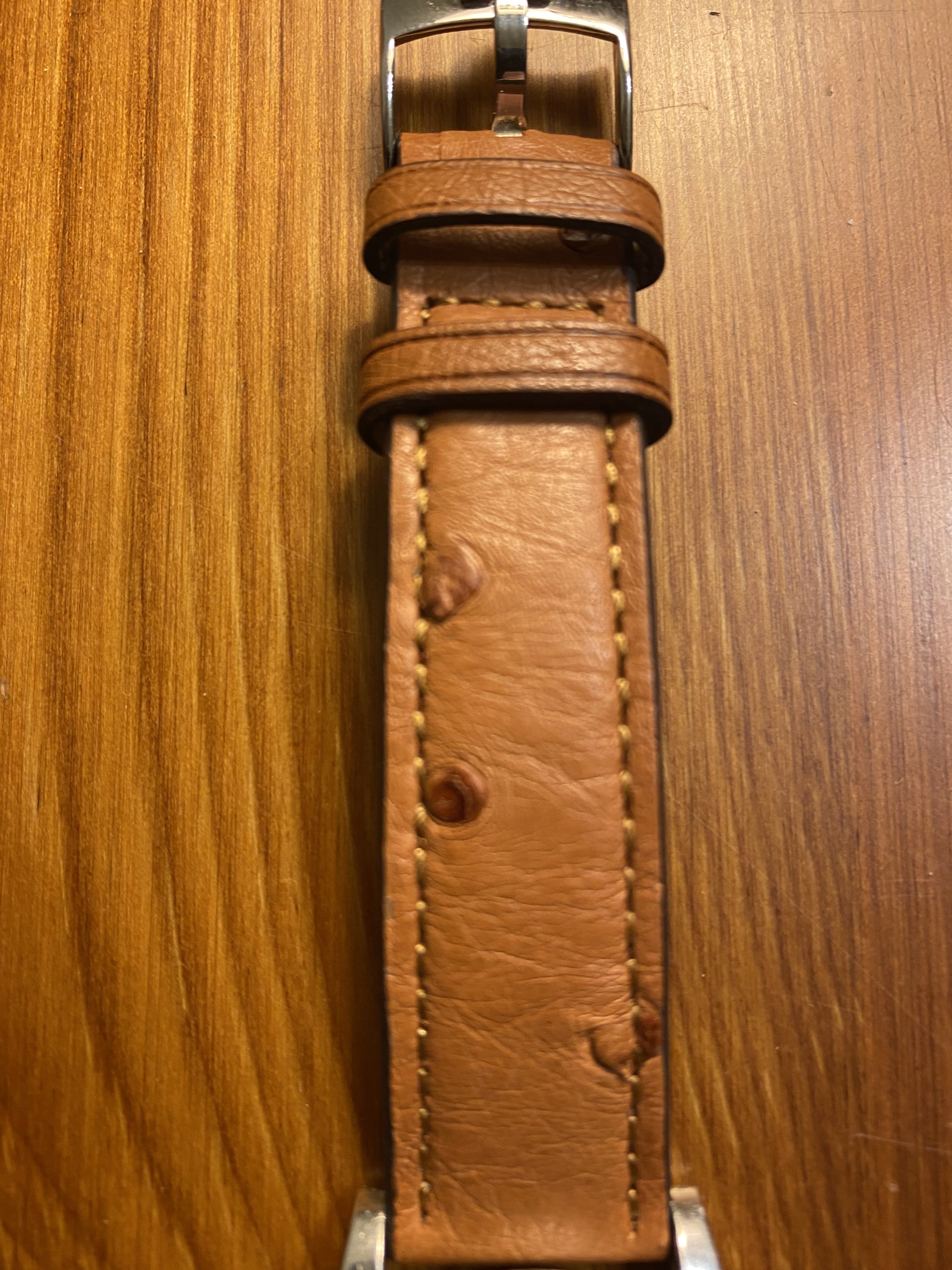 I recently saw an old 60s Datejust on a lovely looking (and feeling) ostrich strap. For the life of me, I can't find where to source this strap, or anything like it. There were no markings on the strap on inspection, and the dealer had no idea from where it came. Does anyone recognize it and/or know where i can procure one like it? I like the pale (rather than the more typical 'organgey') shade, with darker 'spots' and edges which i think make for an attractive patina. The 'squared off' end might be a helpful way of identifying.