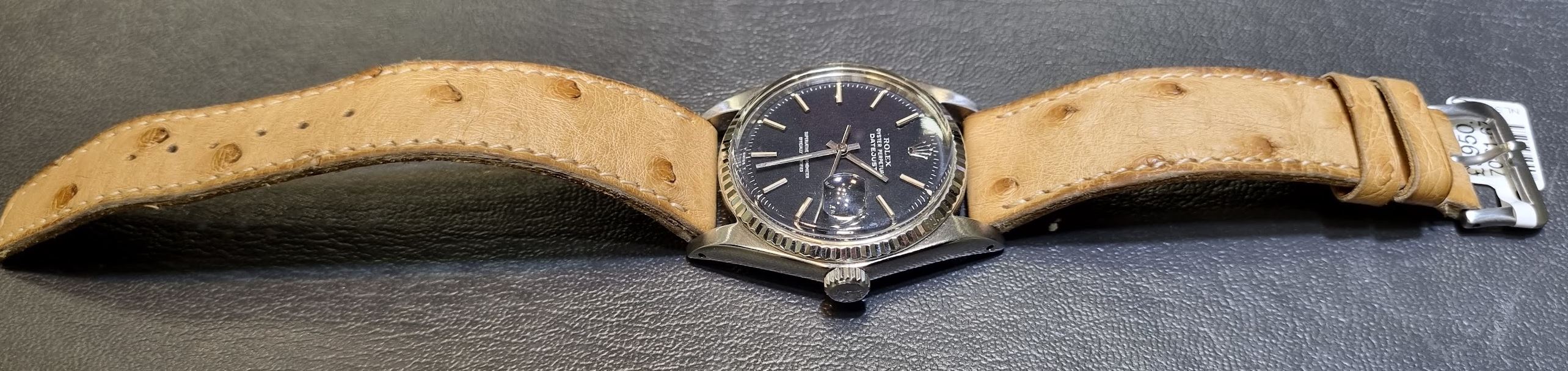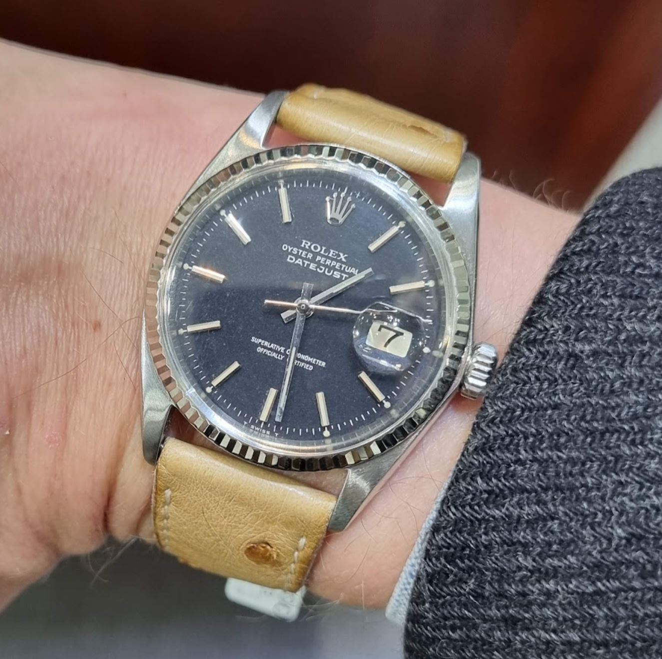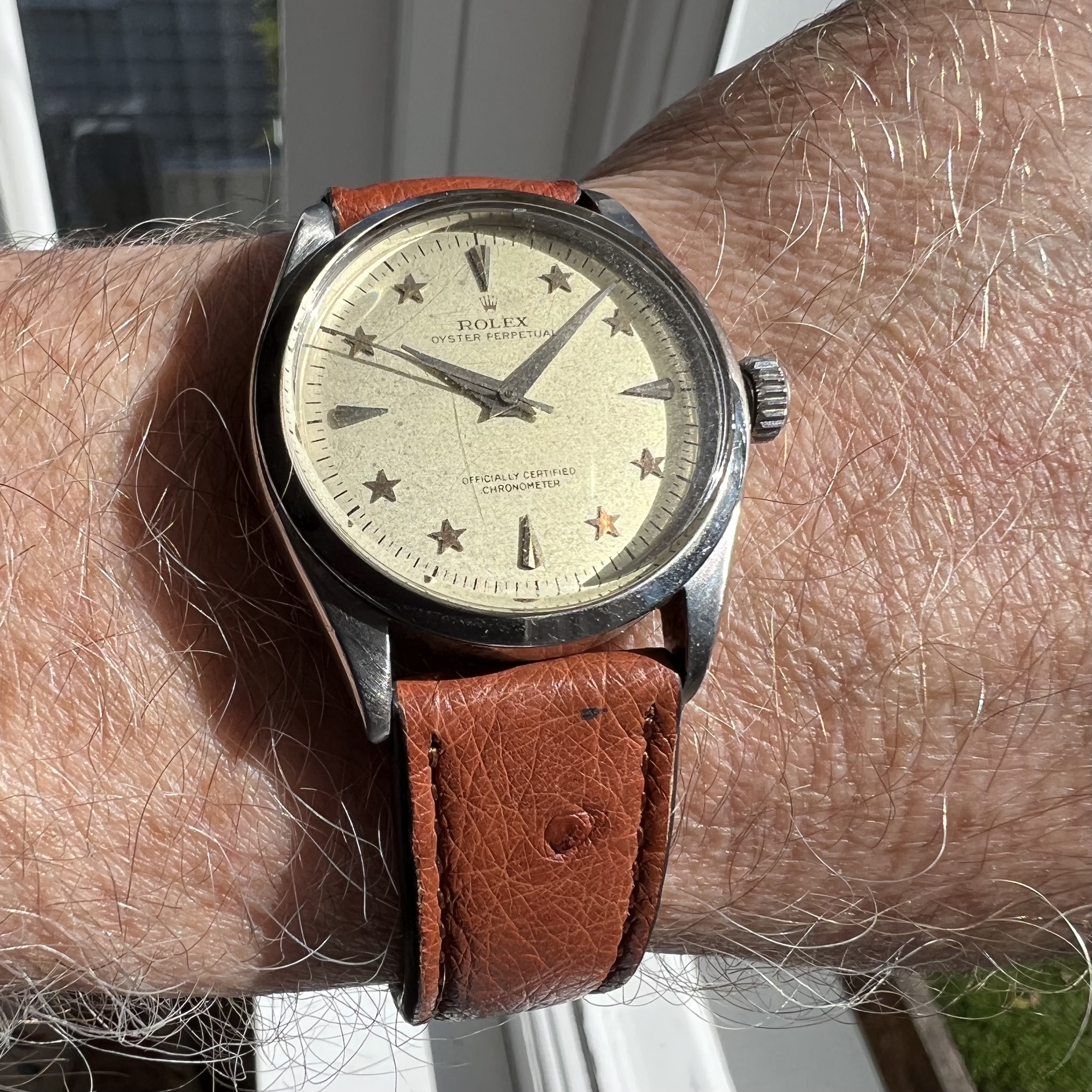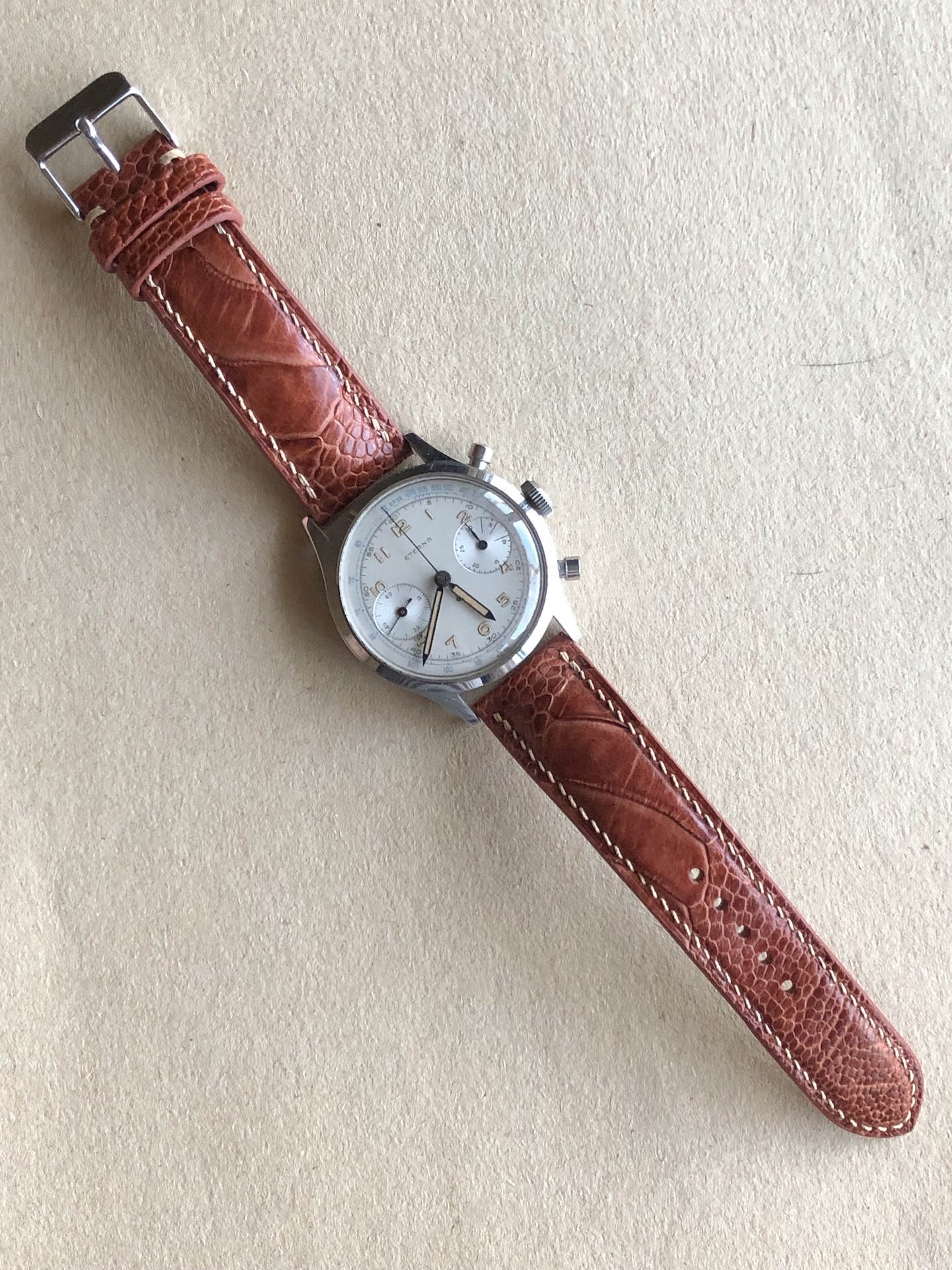 I recently saw an old 60s Datejust on a lovely looking (and feeling) ostrich strap. For the life of me, I can't find where to source this strap, or anything like it. There were no markings on the strap on inspection, and the dealer had no idea from where it came. Does anyone recognize it and/or know where i can procure one like it? I like the pale (rather than the more typical 'organgey') shade, with darker 'spots' and edges which i think make for an attractive patina. The 'squared off' end might be a helpful way of identifying.
