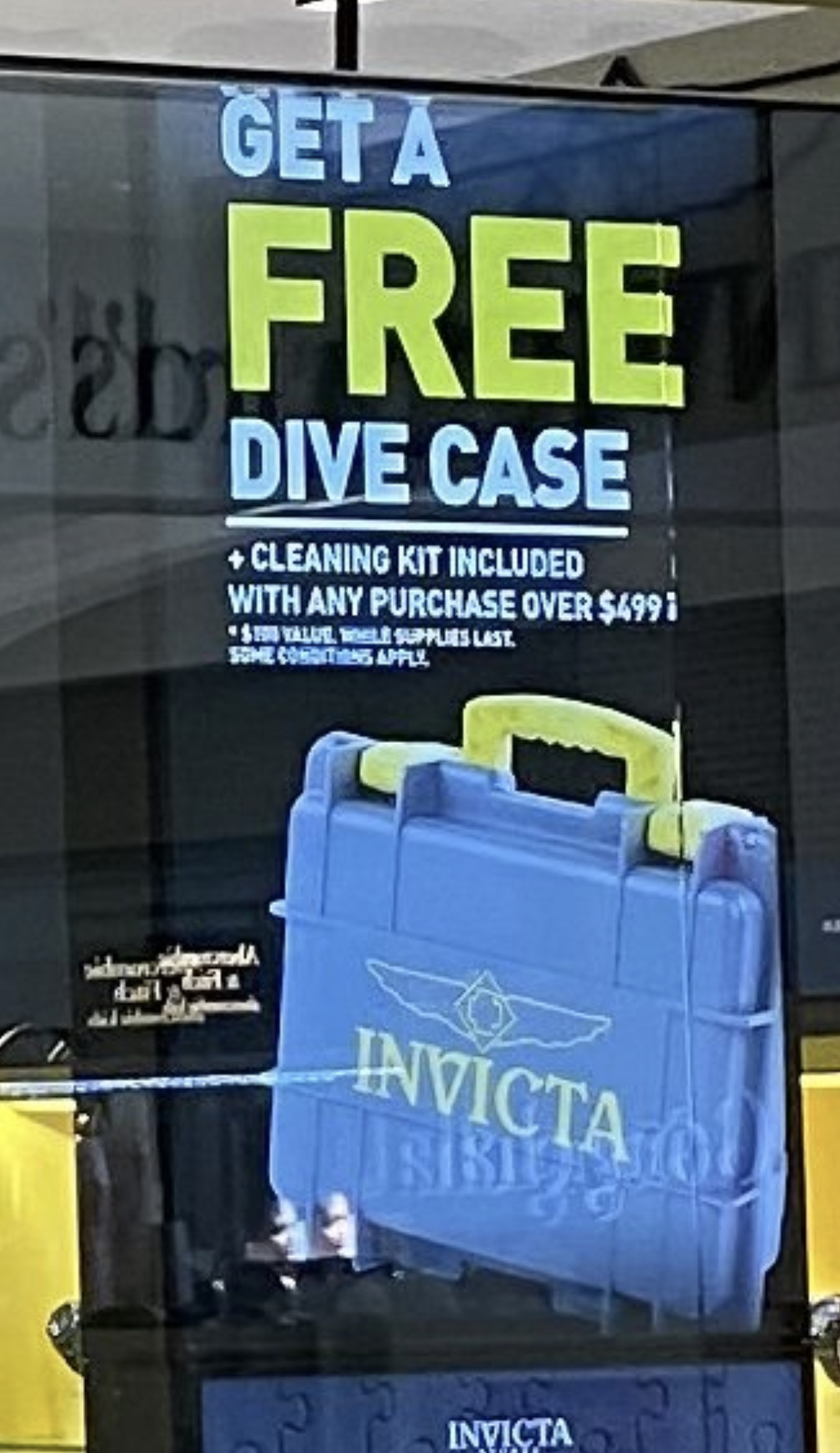 So if I’ve got this correct, if I buy two Invicta watches for $500 I get a free dive case with cleaning kit, a free puzzle, plus four extra watches for free? Even these marketing ploys can’t cover up how horrible they look.