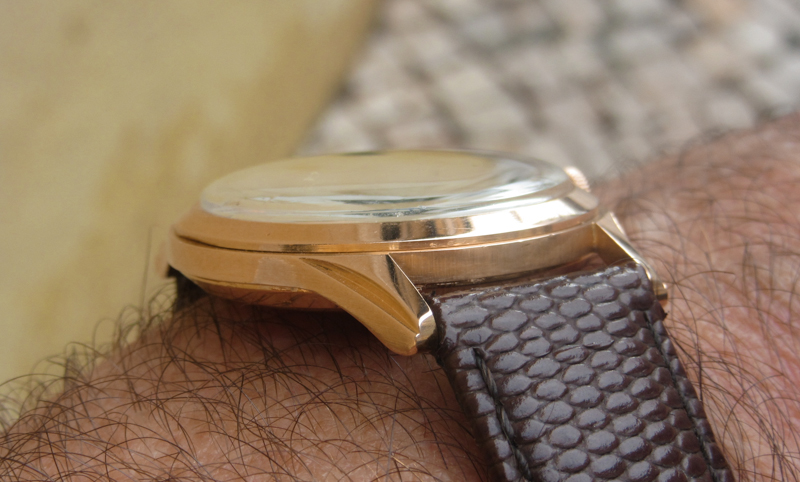 My broad view of the watch is that it is a very attractive, and exceptionally well preserved early automatic. It is clearly a very uncommon reference, and, as mentioned, I have never before seen this type of case. It wears a bit larger than 34mm in my view, but take into account when viewing the photos below that my wrists are small. While it is a bit of a cliché, I guarantee that the watch will look even better in person!"