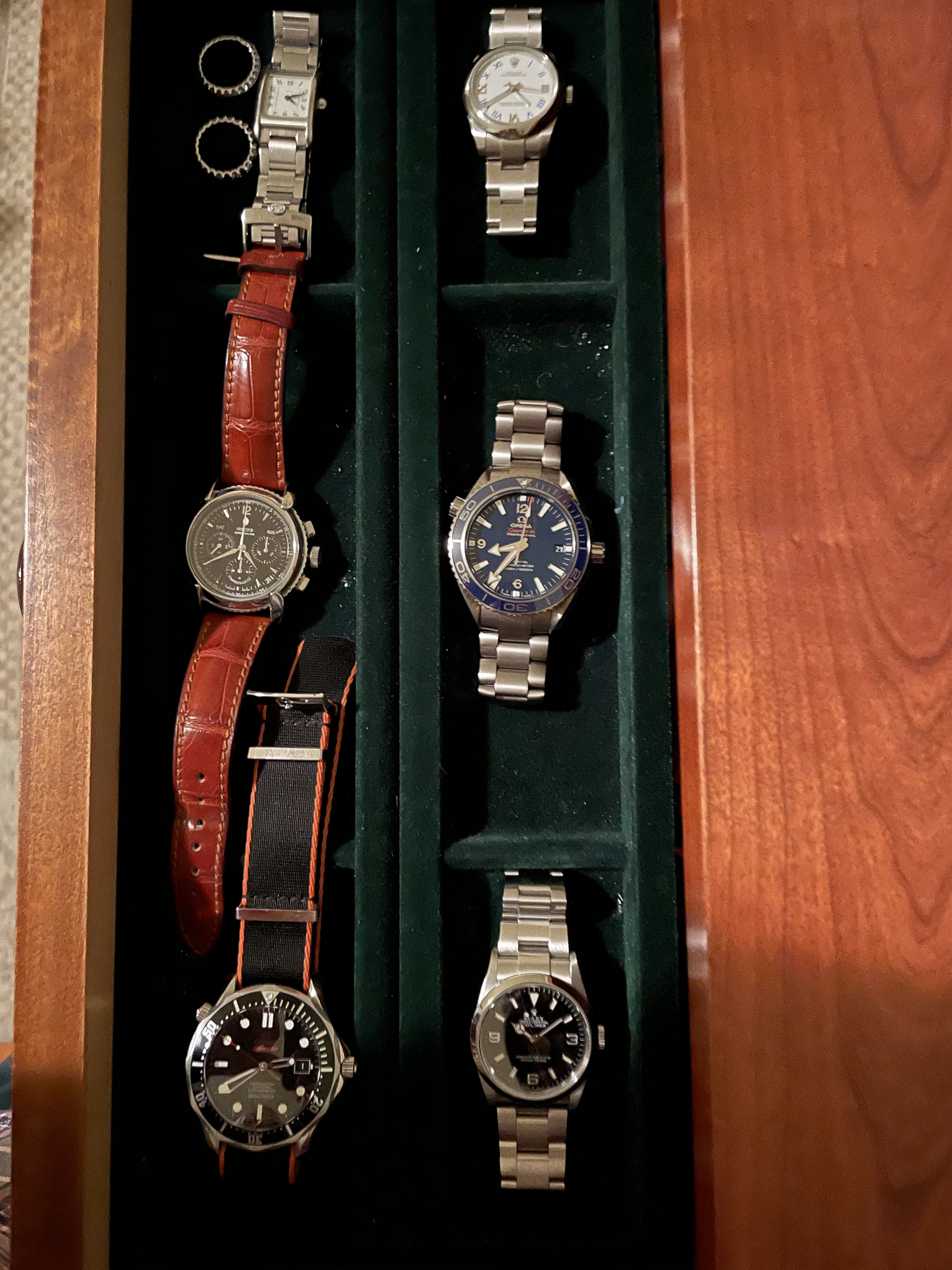 ·My dresser has a felt lined drawer that works well for my wife’s and my watches. Only my good watches make it into this drawer. You can purchase a square of felt and easily line a box or surface. I wear an Apple Watch while sleeping because it’s easy to read, acts as a flashlight, and tracks my sleep.
