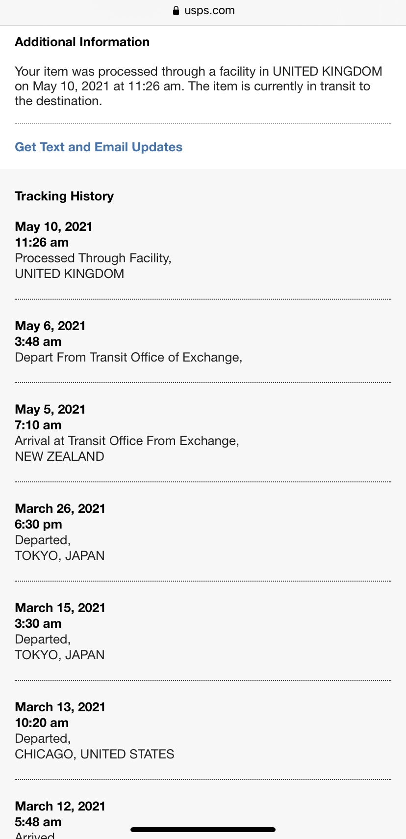 But really glad it's in the UK now! Hopefully this one gets resolved positively... I had one like this where the package disappeared, I got a refund and it turned up 6 months later!