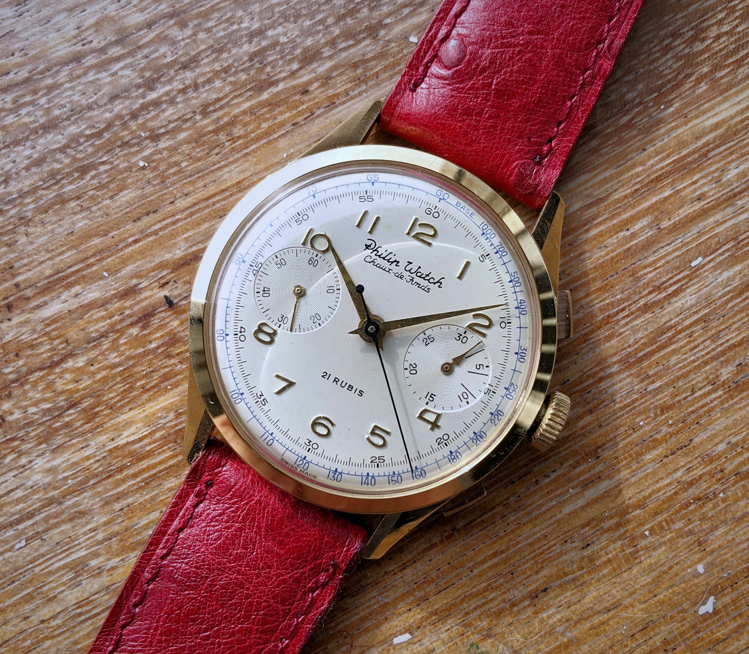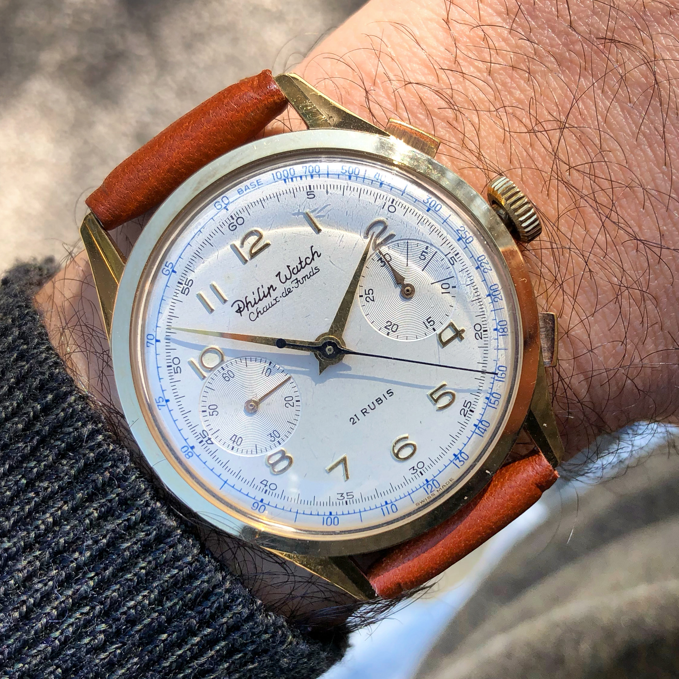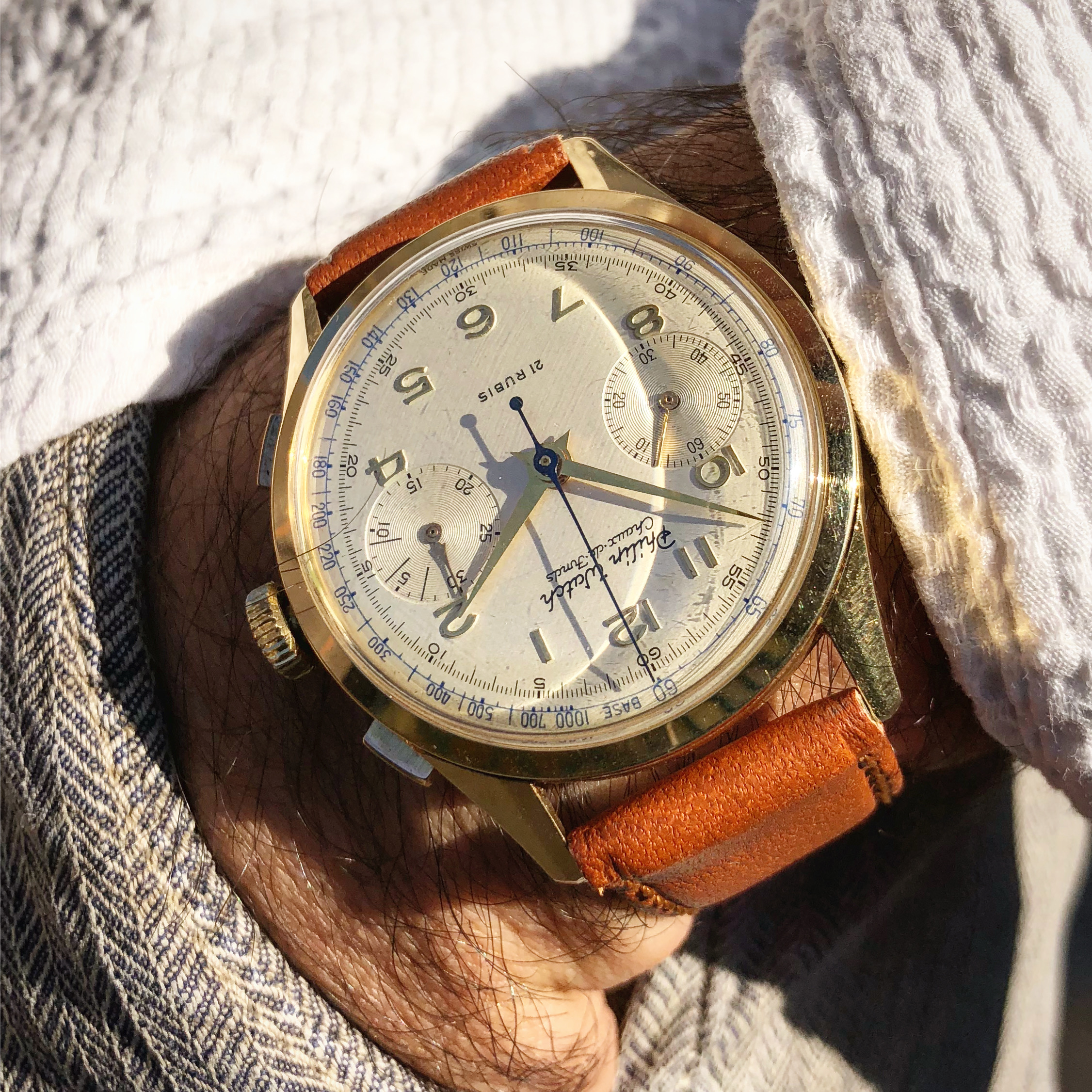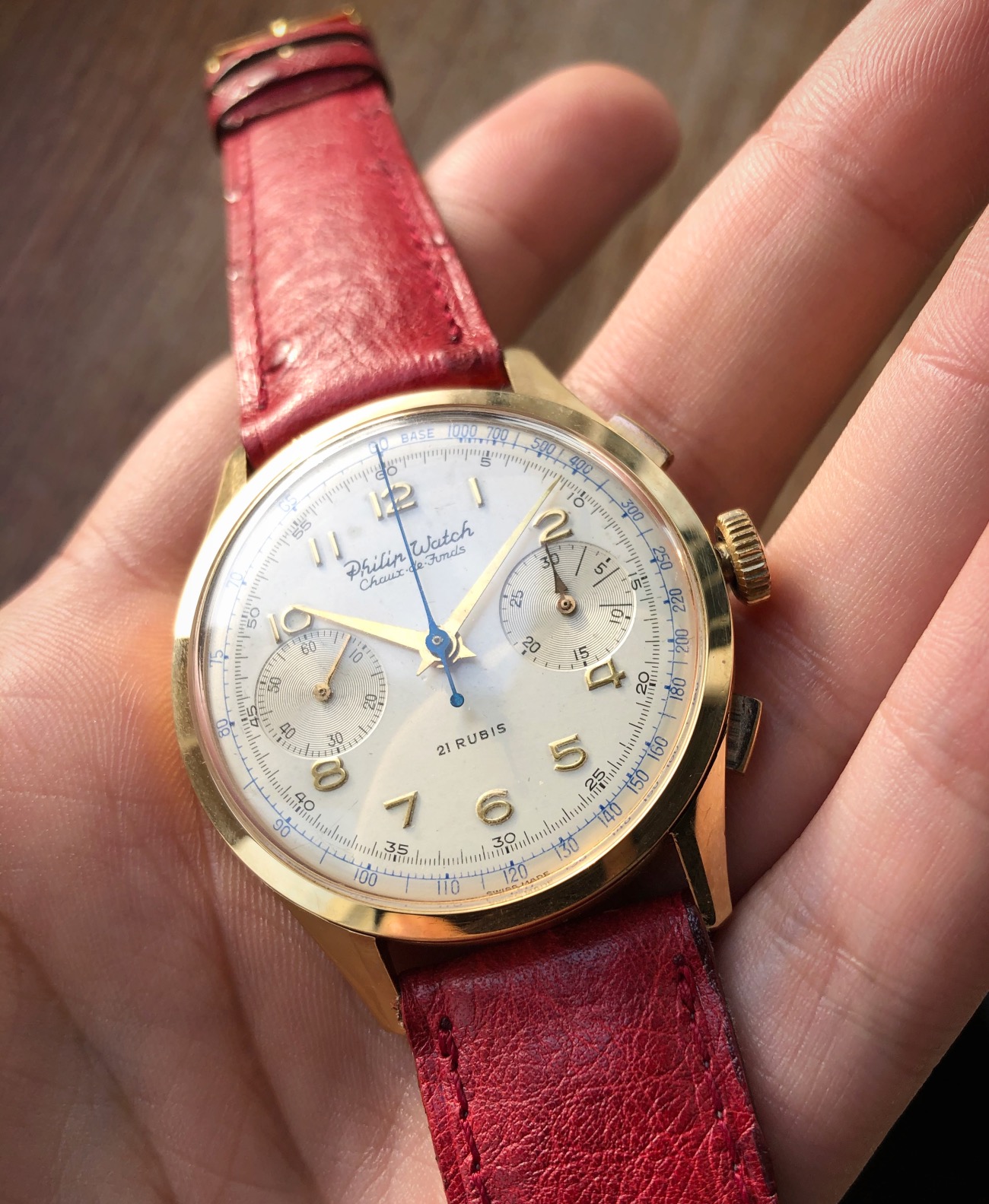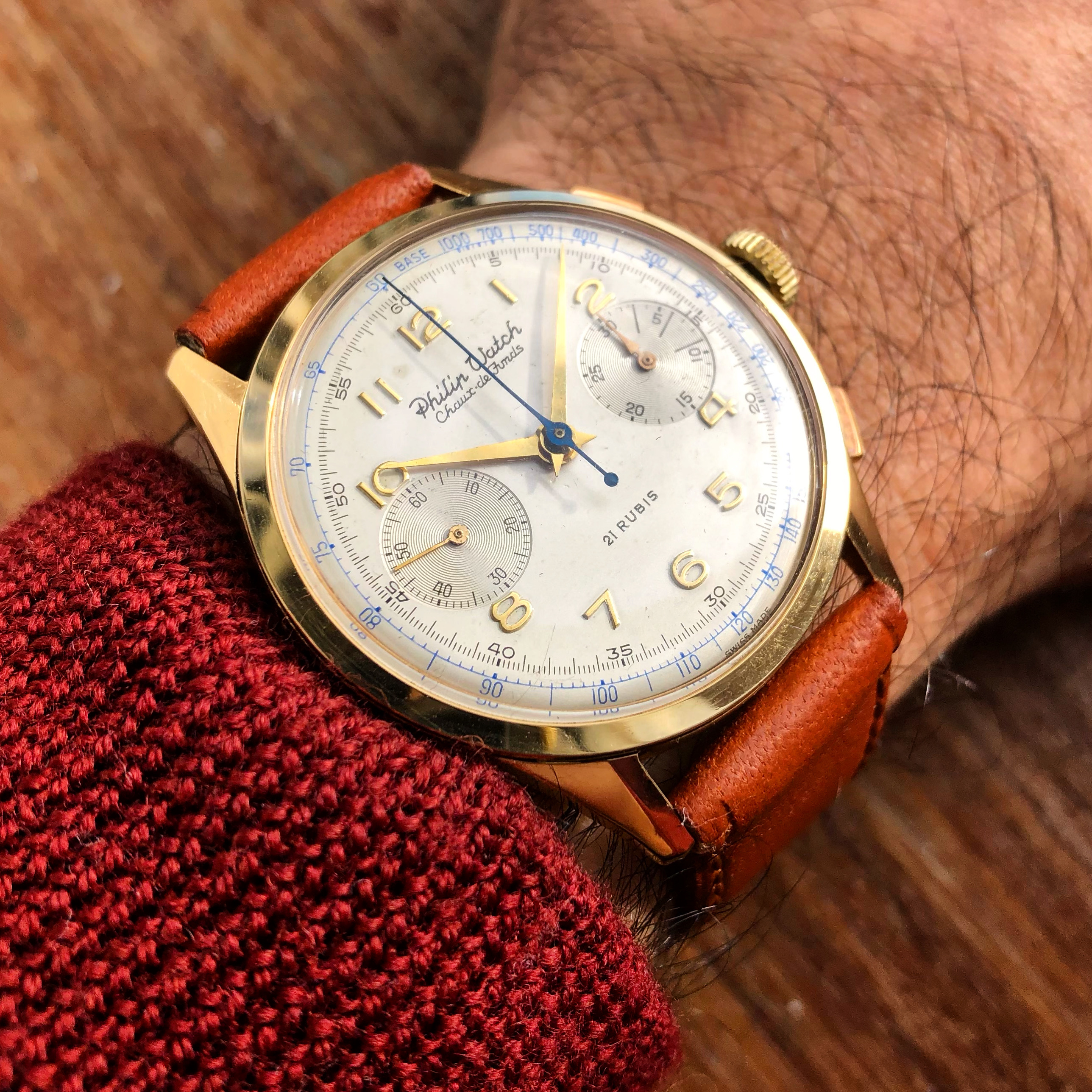 For sale from my collection this very appealing vintage chronograph, from 50s approx, by Philip Watch.