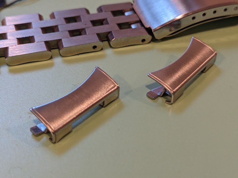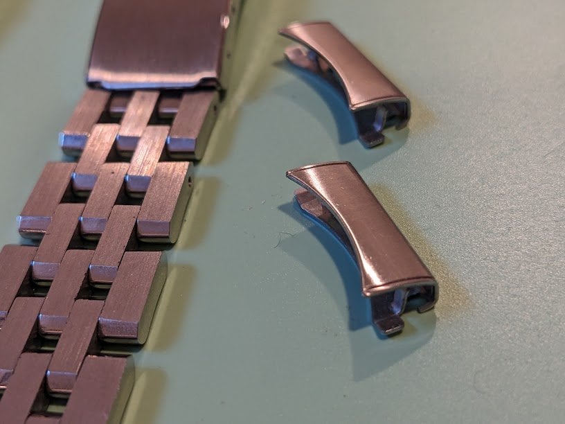 ·Pair of vintage Maruman bracelets, nearly identical, 19mm end links are slightly different. Used these for photos on my KSK but went back to a leather strap. Bought to create a vintage bracelet for an 8"+ wrist. Willing to split the pair if two buyers are interested. Additional photos and/or references upon request.