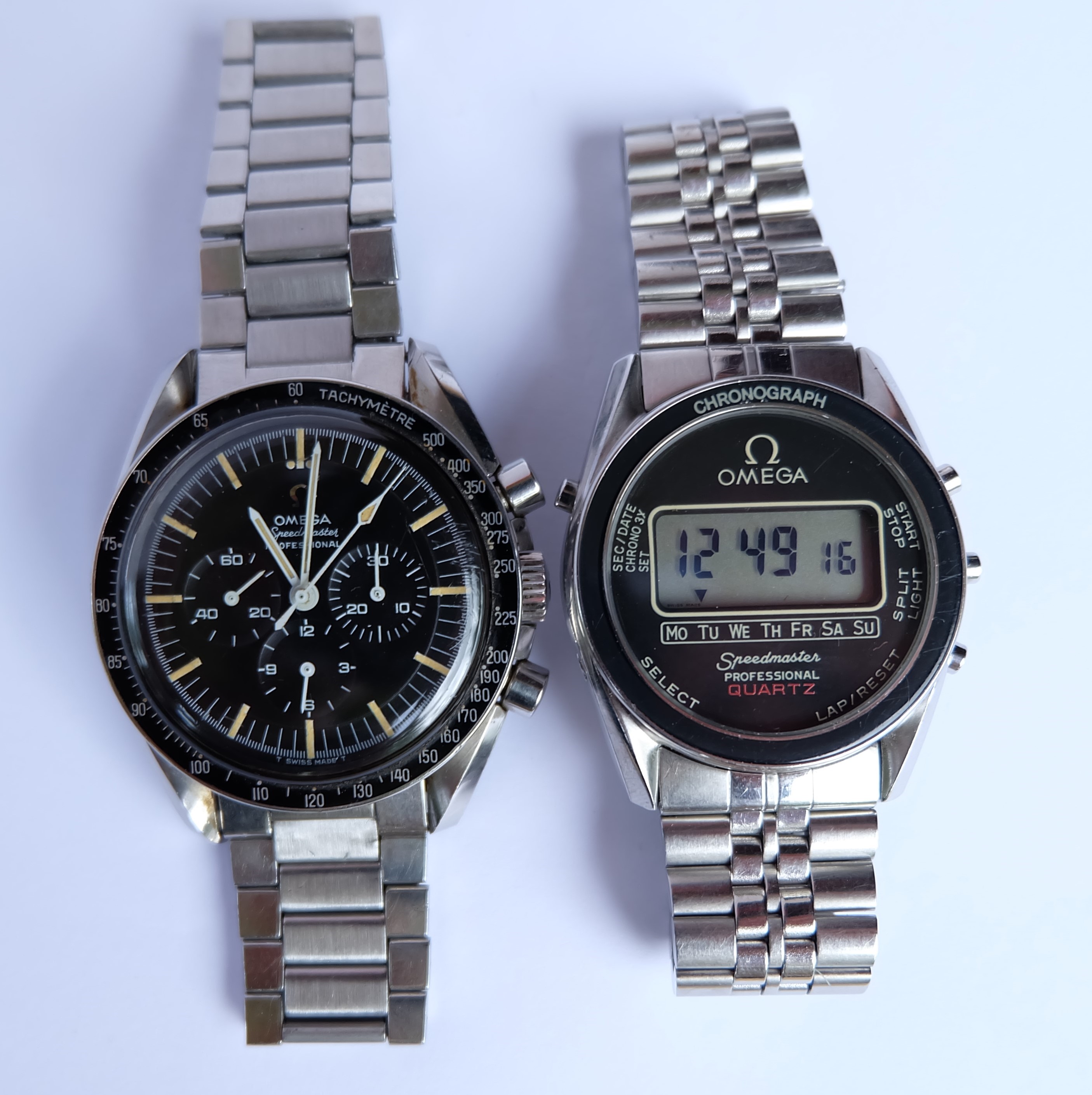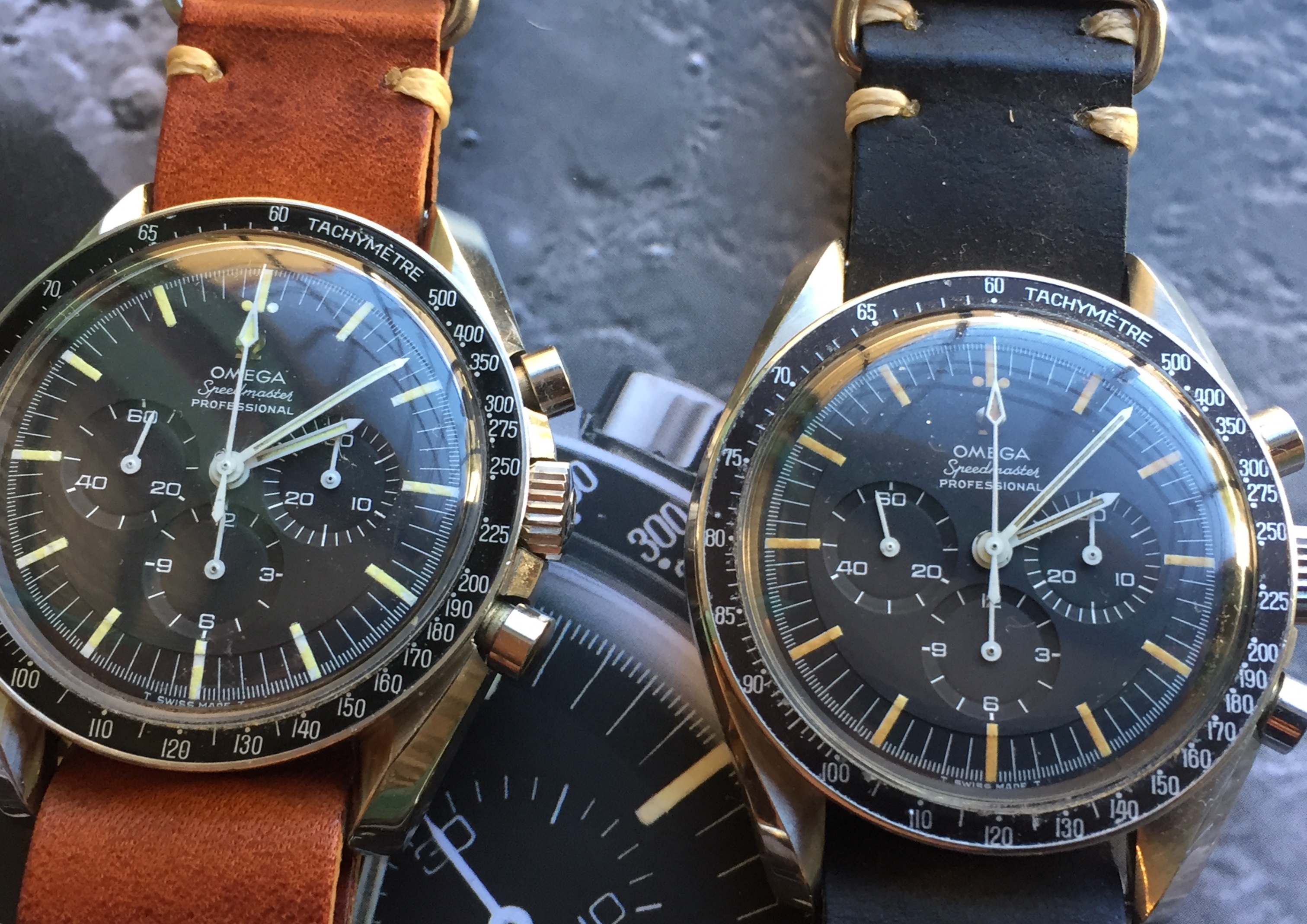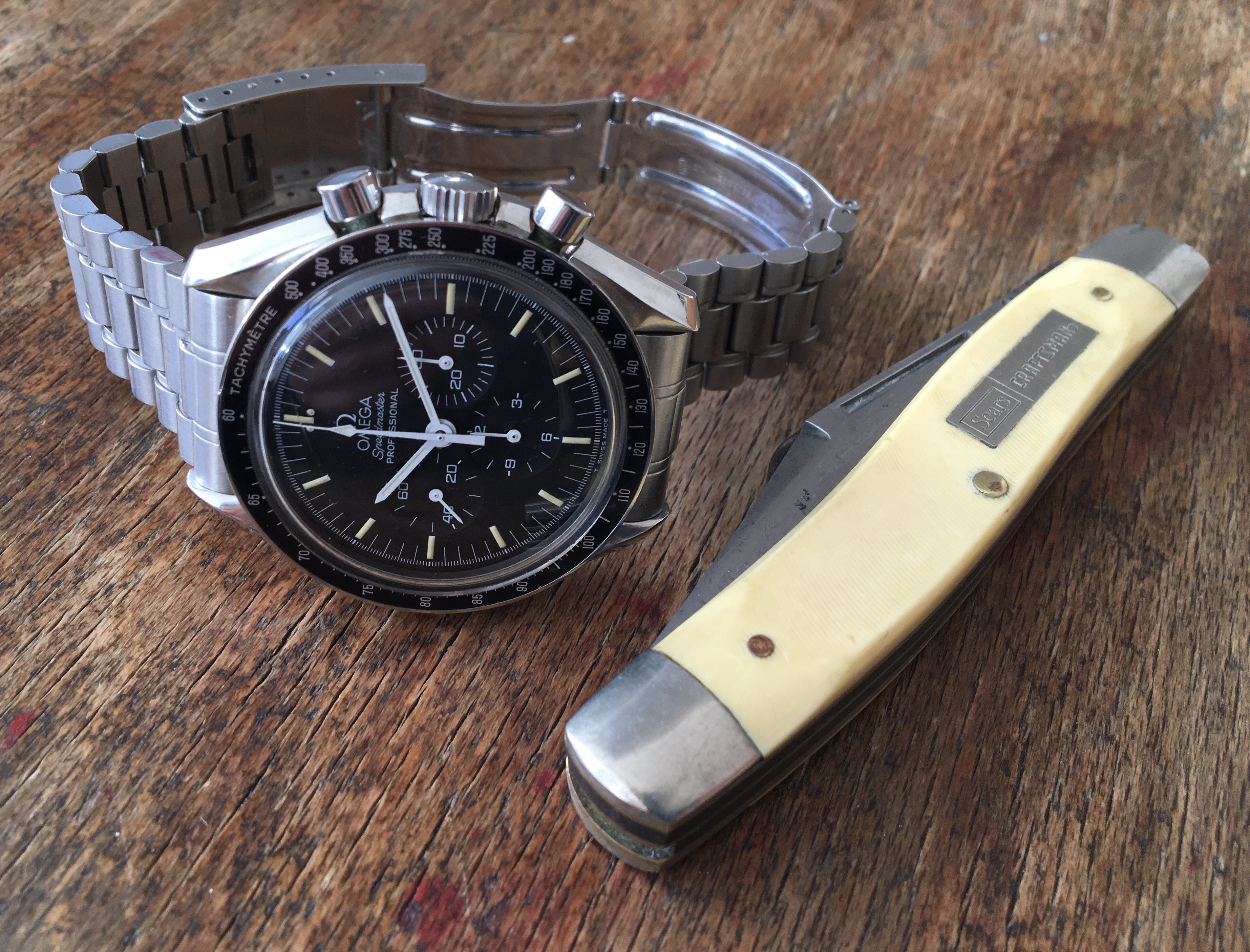 Sears craftsman pocket knife from 1977 - for handles and Omega Speedmaster Professional - for chronograph brake (inside).