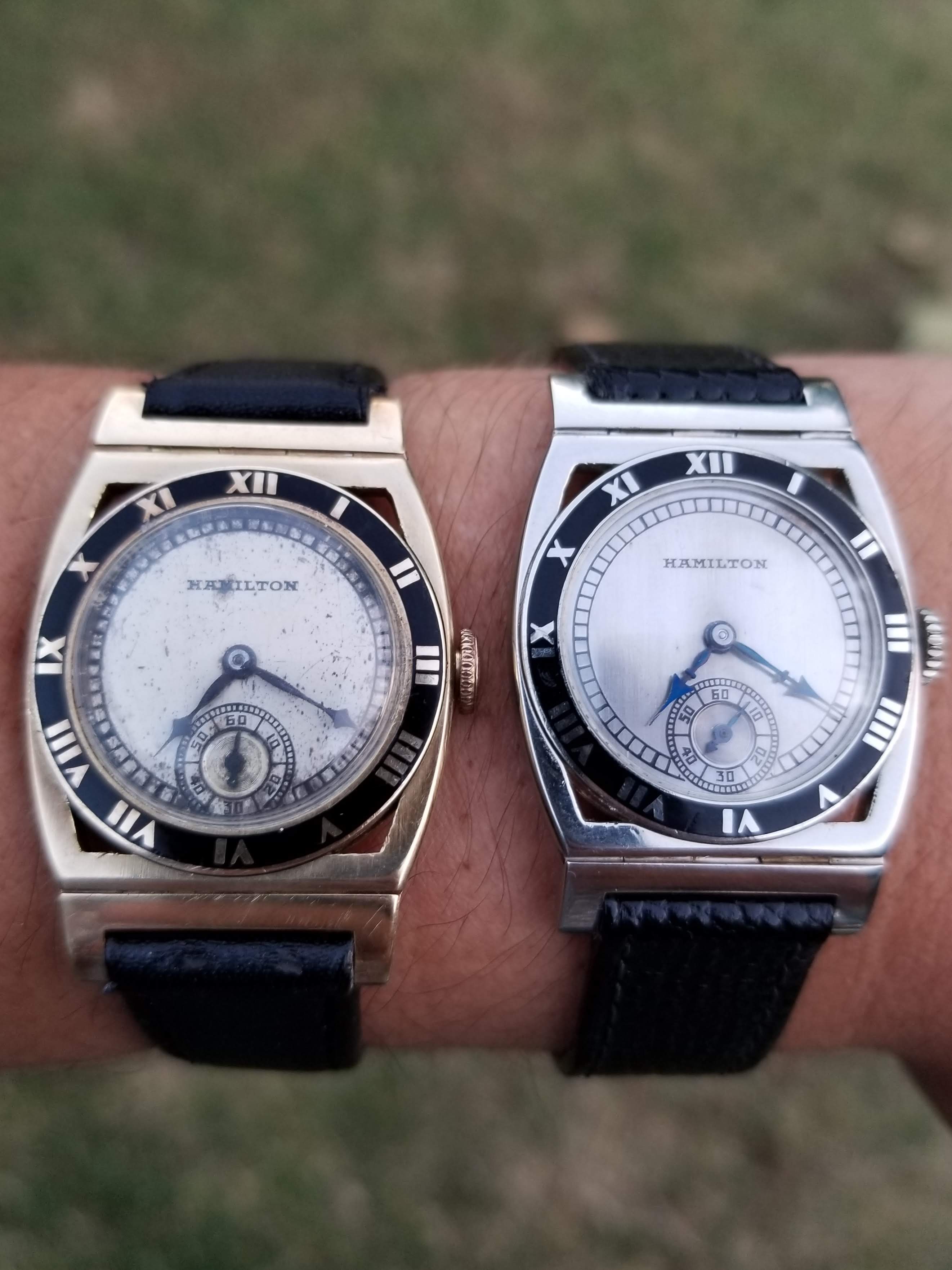 A pair of Louis Brandt, grade CCR, 19-jewel railroad chronometers, railroad approved in Canada. One is a private label for the early 20th century jeweller A Logan, in Greenwood, British Columbia, located about 8 miles north of the Washington border, and in the early 20th century, a major centre for copper mining. The other, the same model, dial marked Louis Brandt et freres (why did spell correct spell it ferrets ?). Louis Brandt founded the company that became the Omega Watch Co.