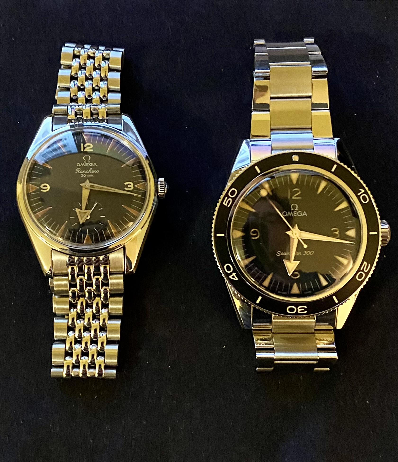 Posts 9,741 Likes 54,500 gbesq ·Mar 19, 2023 How about a pair of broad arrows? Grandfather 1958 CK 2990 Ranchero on the left and Grandson 2023 Seamaster 300 Heritage on the right.