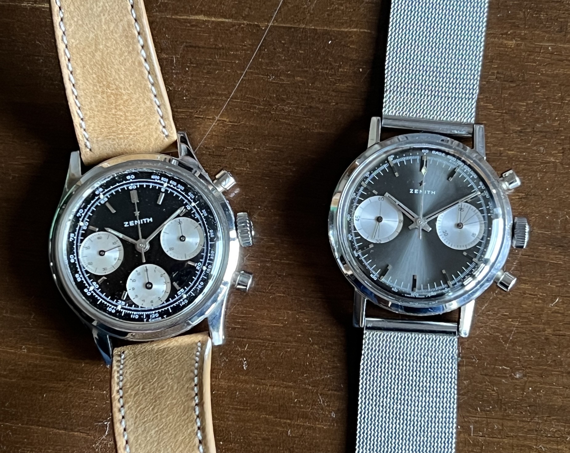 Posts 24,266 Likes 54,041 Dan S ·Feb 15, 2023 Sort of a pair, 2640 and 2639. White and black, center-seconds and sub-seconds, no-lume and lume, white and yellow furniture. Edited: Feb 15, 2023