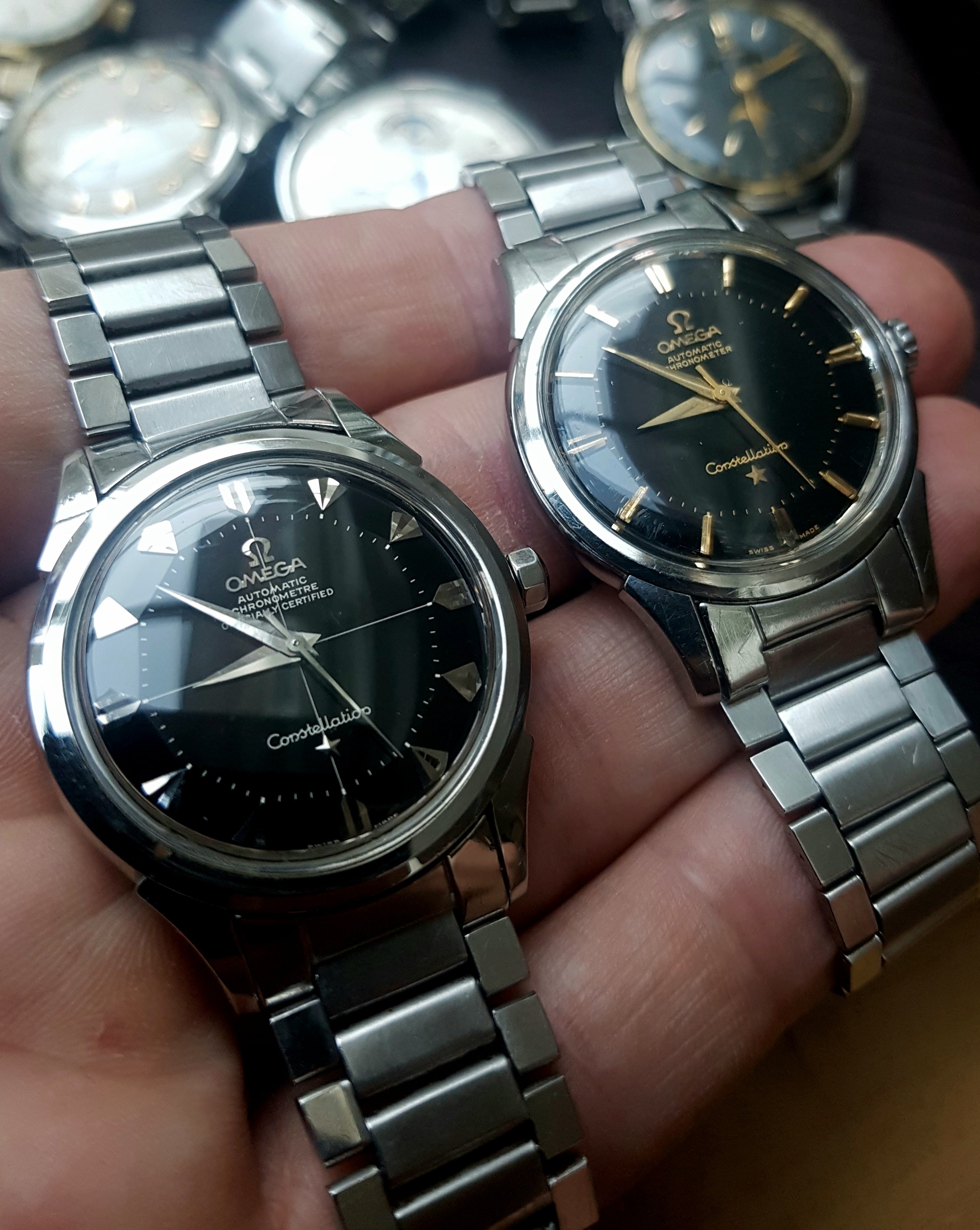 Posts 7,904 Likes 35,857 cristos71 ·Jul 23, 2020 Pair of black, glossy dialed steel Connies on flat link bracelets