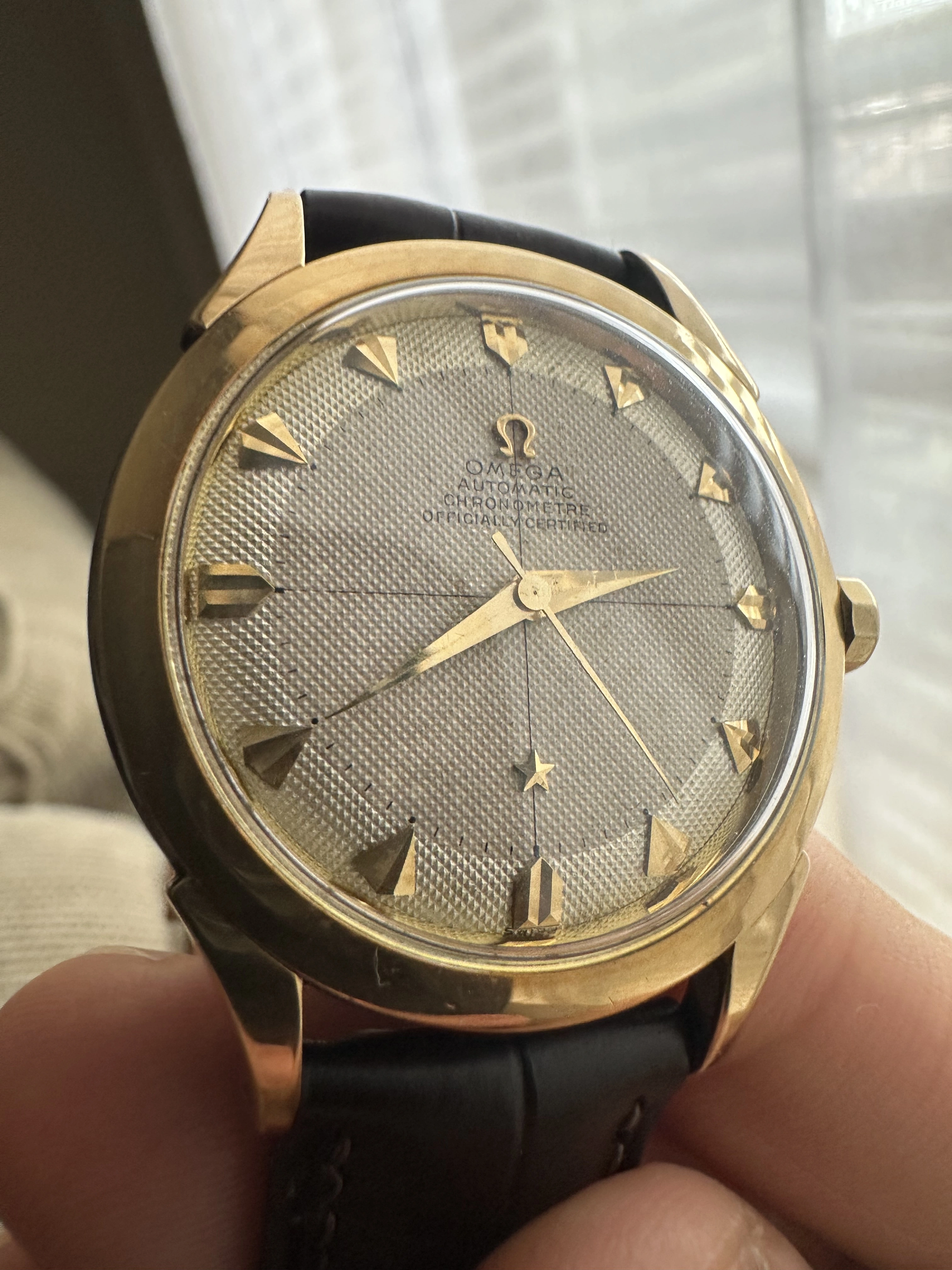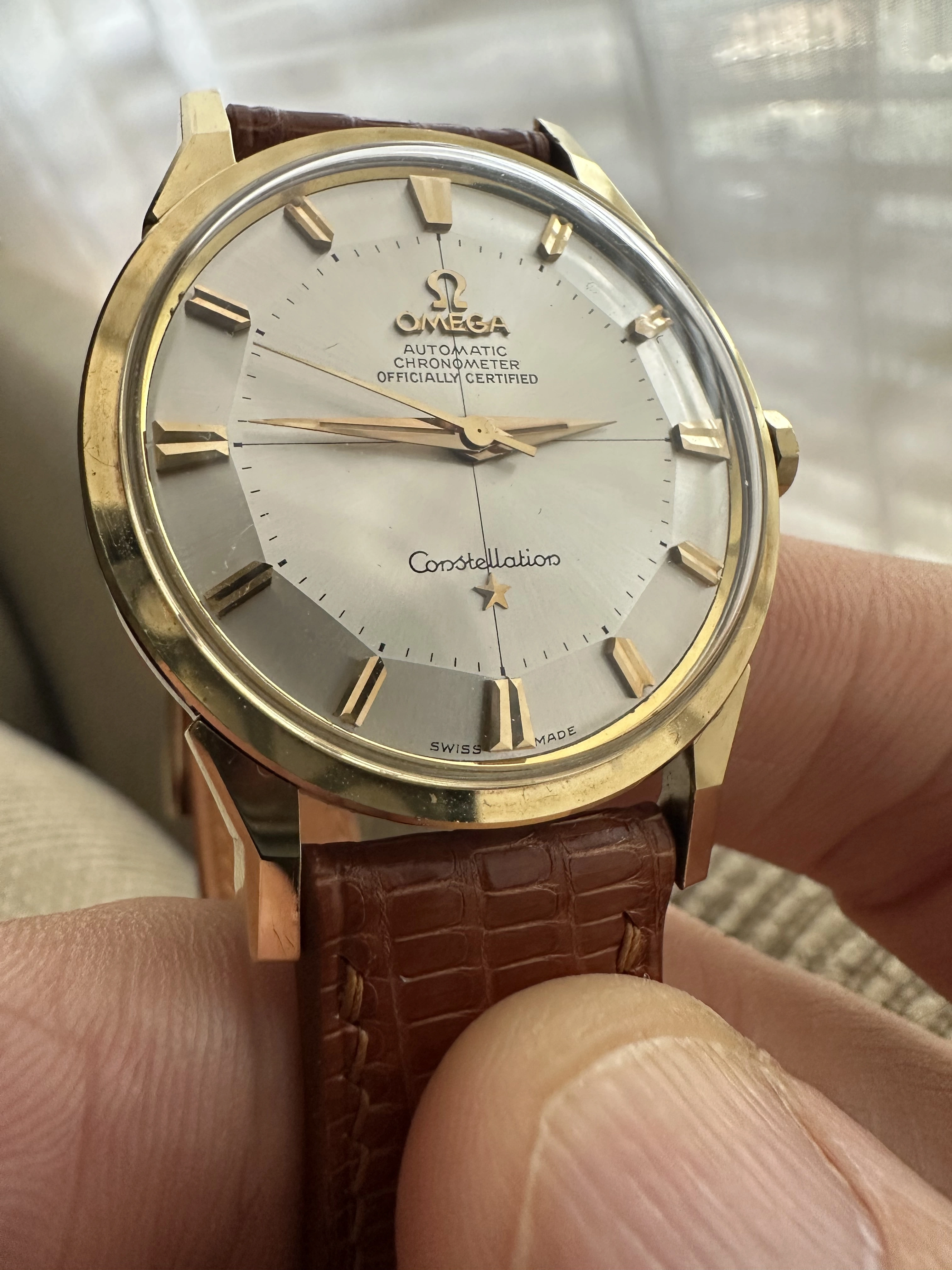 - dial origonality or is it a re-dial? the vertical line does not seem to cut the Omega logo in the middle but slighly further on the left side.