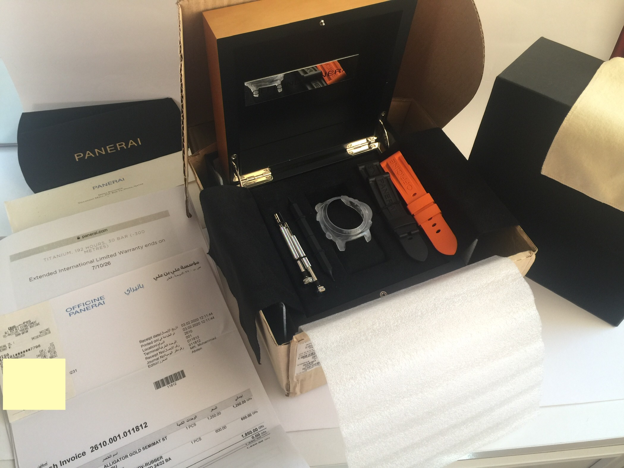 I have a used PAM 464 in Titanium. Selling for only £4,150 or best offer. Watch is from 2016 and has a long Panerai transferable factory warranty until 2026. It comes complete with outer box, wooden box, watch cushion, bezel cover, plastic tag, screw driver, x3 excellent condition Panerai straps (worth around £400), warranty book and 2026 extended warranty documents. Being a much loved Panerai, there are some small hairlines and small dings but nothing too noticeable. The watch has been kept in my tough, watertight, dust-proof, pressure equalised PELI 1450 watch case (not inc) in a temperature controlled room and opened once a month to give the movement a full wind.