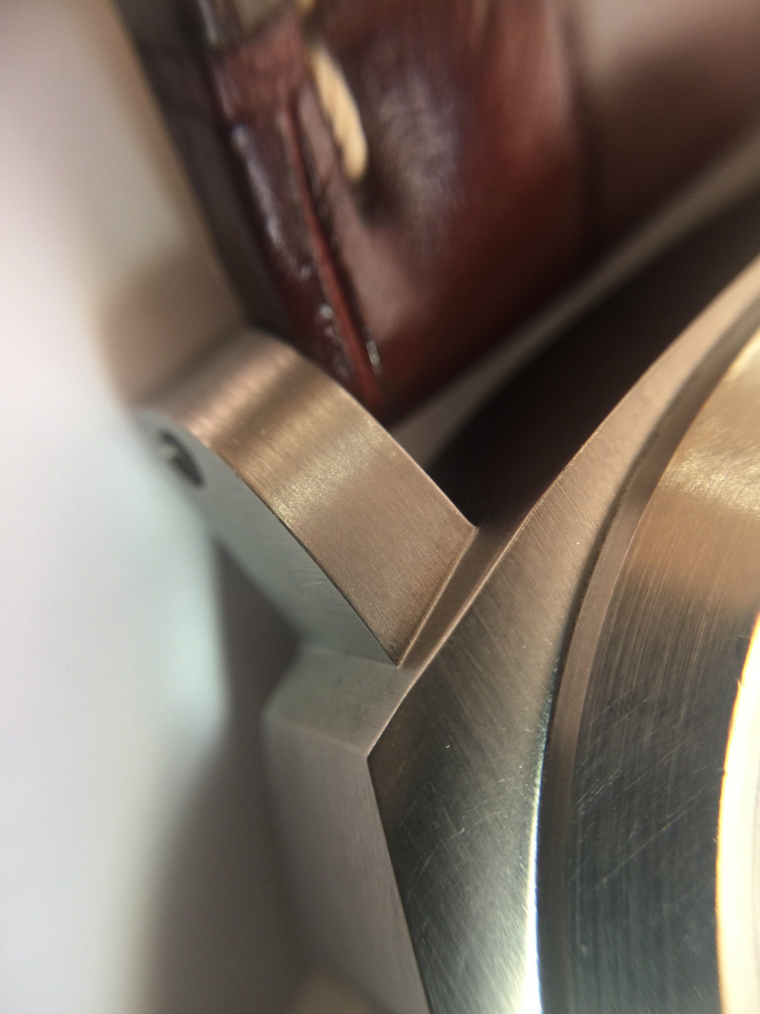 The watch is super comfy to wear, Light, strong and hypoallergenic being made from brushed Titanium. Has a gorgeous tobacco colour dial which goes from dark brown to black in certain lights. The ‘Sausage’ dial is extremely legible. Having the 8 day power reserve from the P.5000 in house movement, you can ‘set, forget’ and wear this watch with ease and comfort.