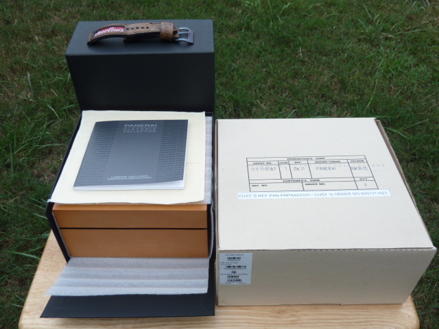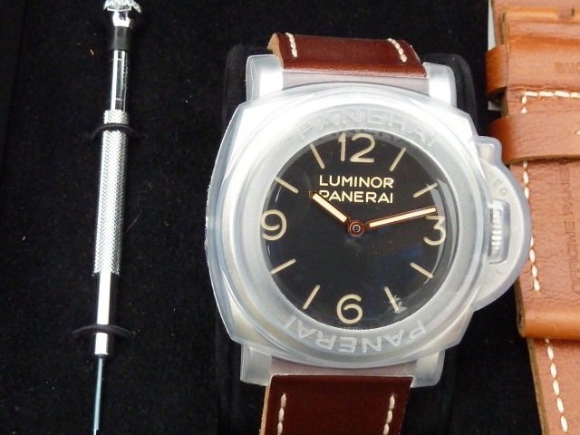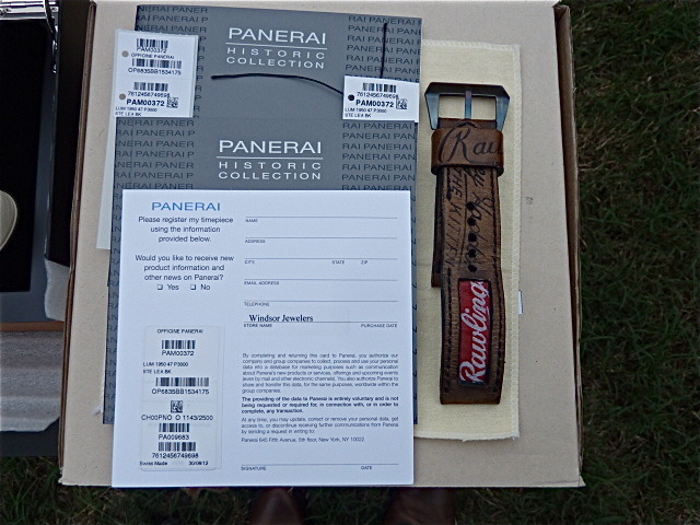 Hi Friends, for your consideration is a beautiful crispy Panerai 372 in minty condition. I purchased this watch from my local AD and was so proud of it. However, I purchased a 448 soon after, which is a limited edition California Dial Radomir, and that has received most of the Panerai wrist time. I am now in pursuit of a Patek. The 372 did not get worn much, and I put the box and all paperwork up the day after I brought it home. I am the original purchaser of the watch new, and have kept it in new condition. It looks like I purchased it yesterday.