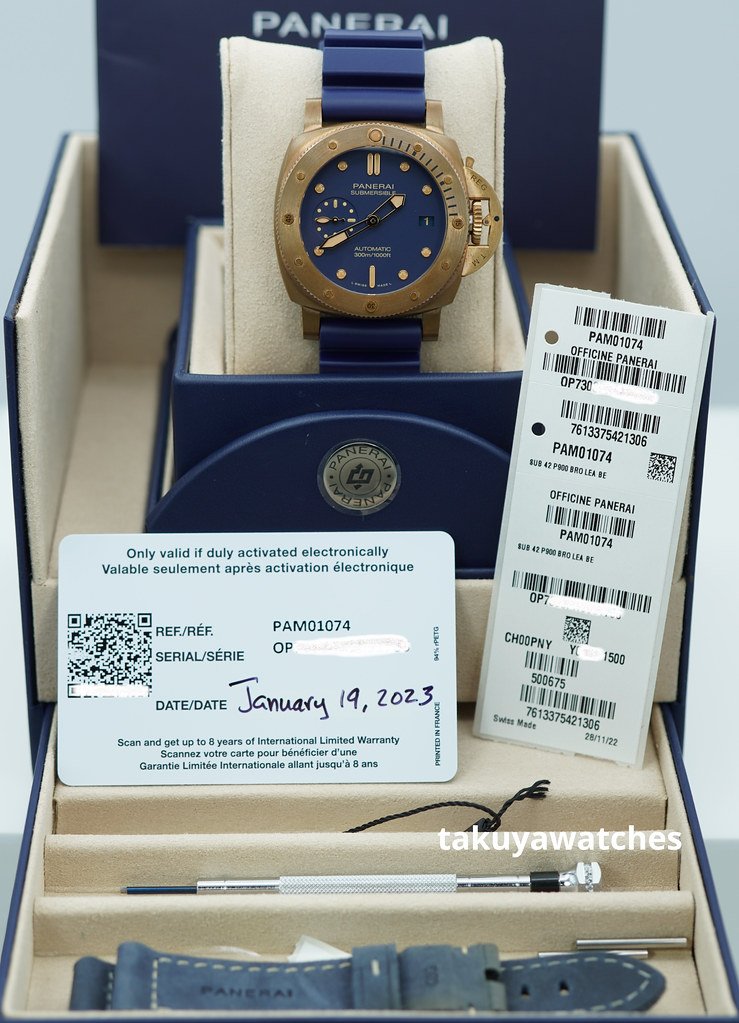 ·Panerai PAM 1074 SUBMERSIBLE BRONZO BLU ABISSO 42MM 2023 WARRANTY FULL SET