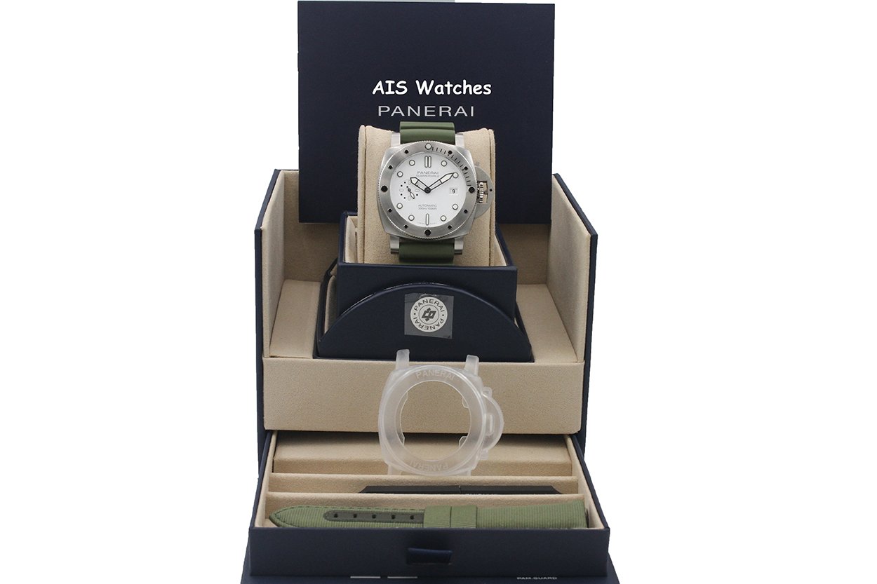 Up for sale is a Panerai PAM01226 Submersible QuarantaQuattro Bianco White Dial 44MM Box & Papers. The timepiece is in excellent condition.
