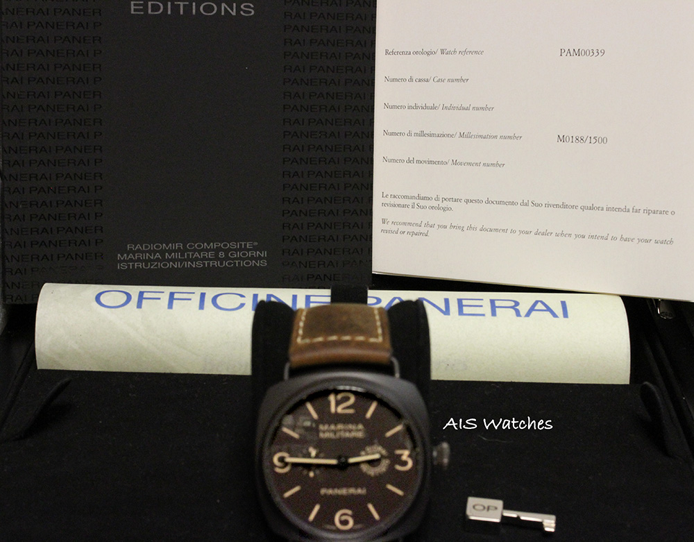 Up for sale is a Panerai PAM339 Radiomir Composite 8 Days Marina Militare 47mm LIMITED EDITION. Watch is in good condition and was worn in rotations with other timepieces also strap seems to be in good condition with very little wear. Limited production watch - 188/1500