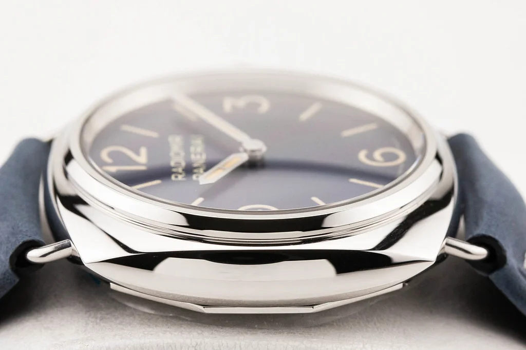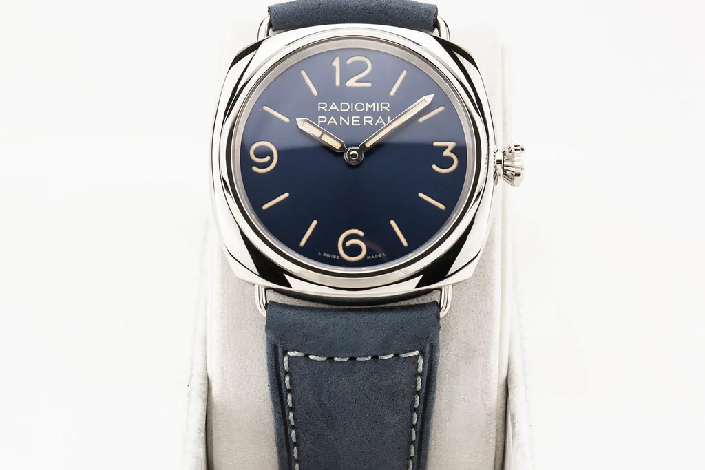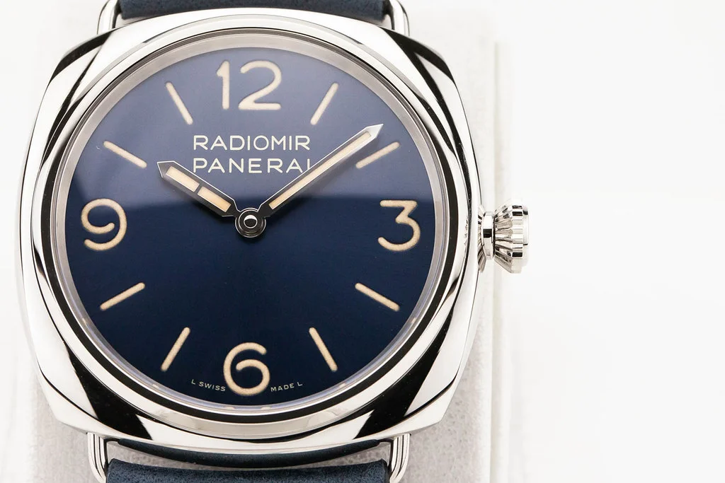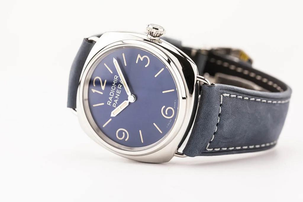 ·Up for sale is an unworn condition Panerai Radiomir Officine 45mm Blue Dial on Blue Calf Leather Strap, reference # PAM01383. It comes complete with all boxes, papers, booklet, hang tag, bezel guard and Panerai Warranty Card dated February 2026.