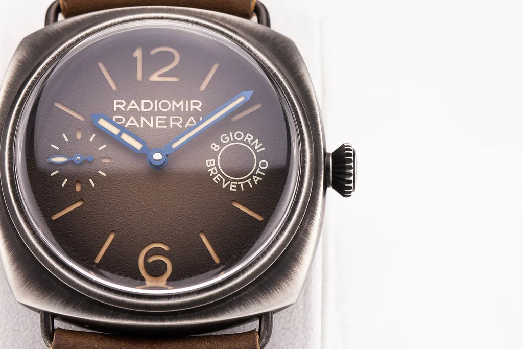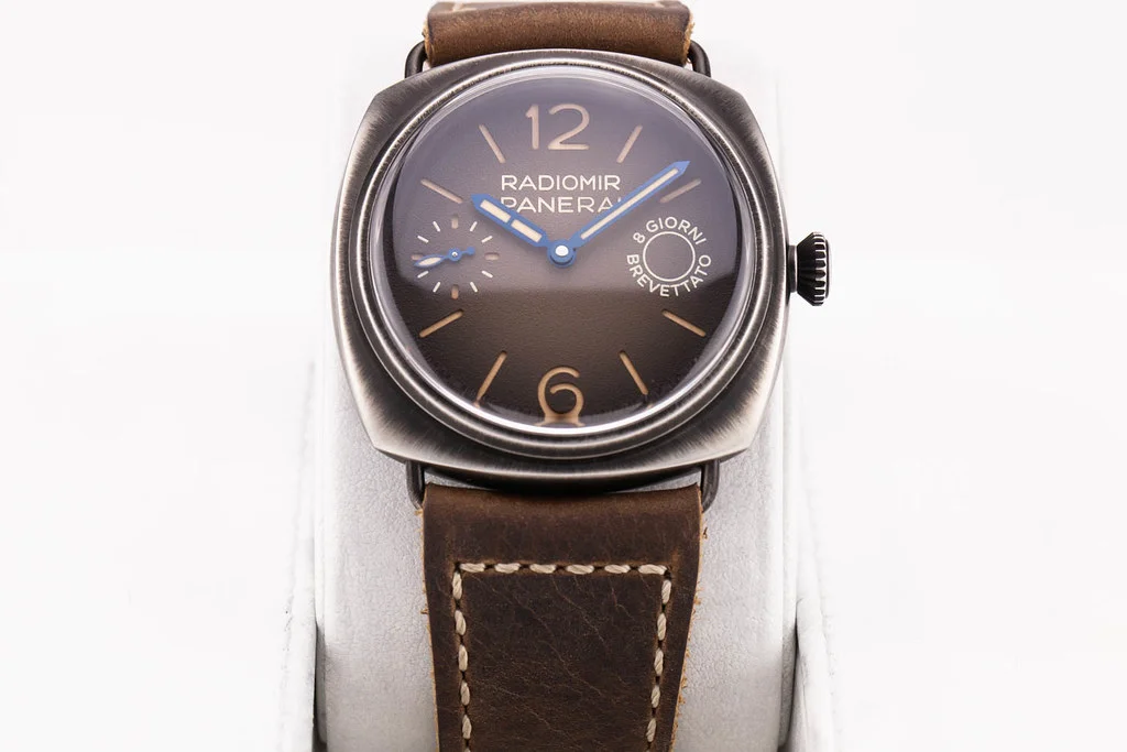 ·Up for sale is a Panerai Radiomir Otto Giorni 45mm Brown Dial on Leather Strap, reference # PAM01347. A technically "Preowned" trade in from one of our clients, but in new / unworn condition. It comes with all boxes, papers, booklets, bezel guard, and Panerai Warranty Card dated December 2024.