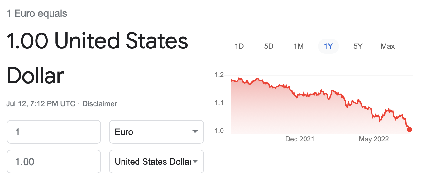 Thanks for starting this thread. I meant to start one earlier today. It is supposedly not great for our economy to have a dollar that is strong against the Euro, but I'm fine importing and not exporting.
