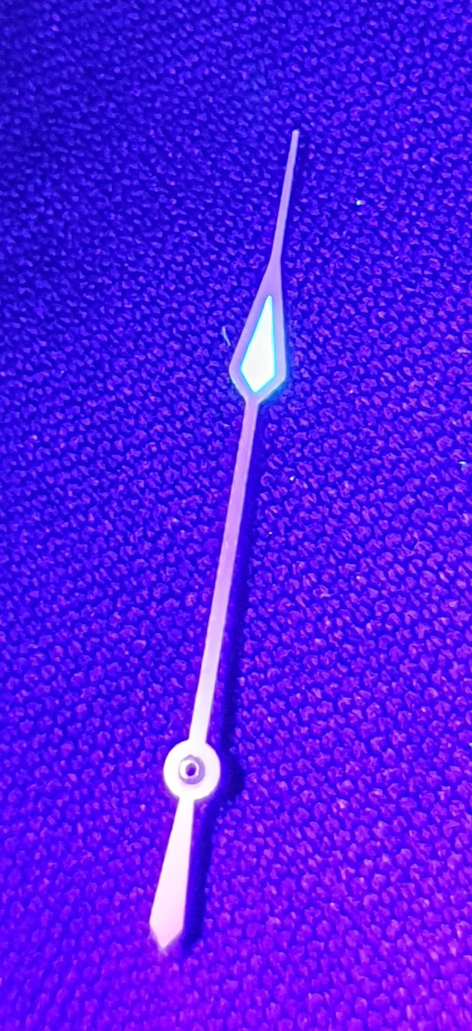 It's clearly Tritium (reacts to UV and fades as expected.) and as there where different shapes/lenghts (discussed here on OF ,if you`re interested) throughout the decades it was used, it's impossible to tell. I think it won't make a visual difference to a longer tip once in a Speedmaster.