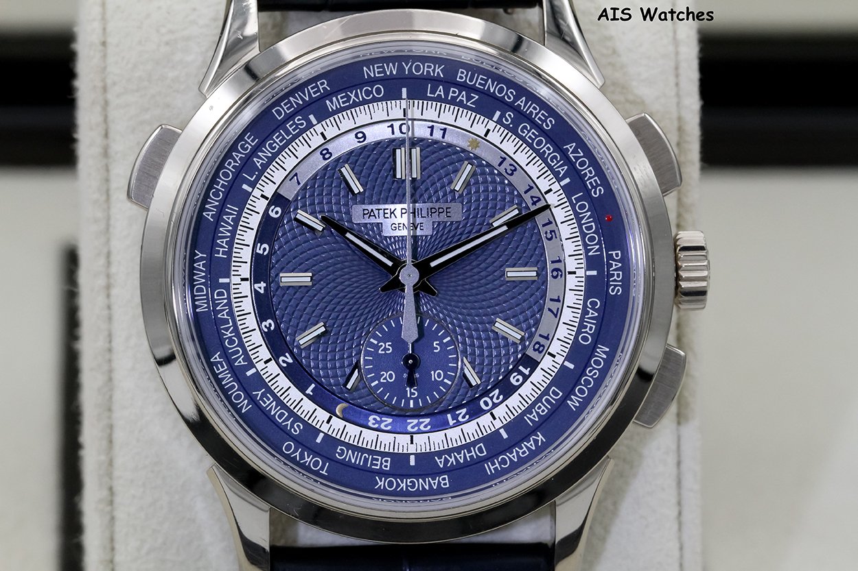 ** Patek Philippe 5930G-010 World Time Chronograph White Gold Blue Dial 39.50MM